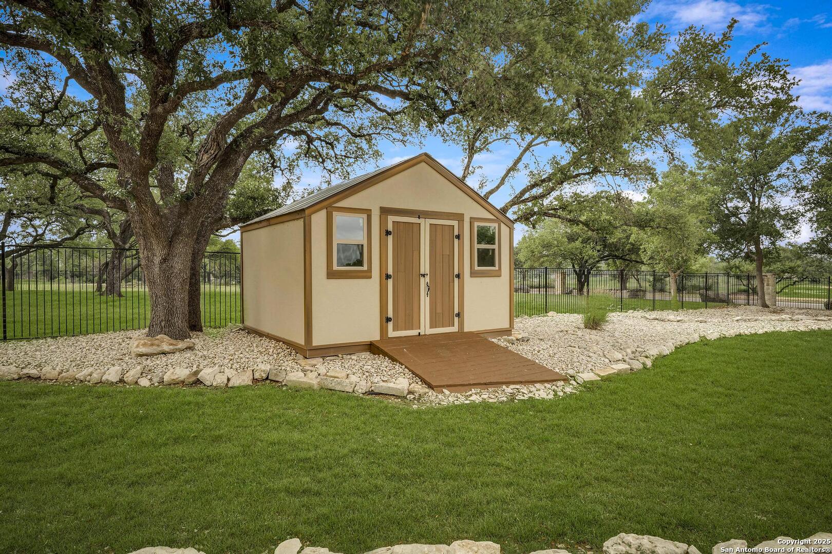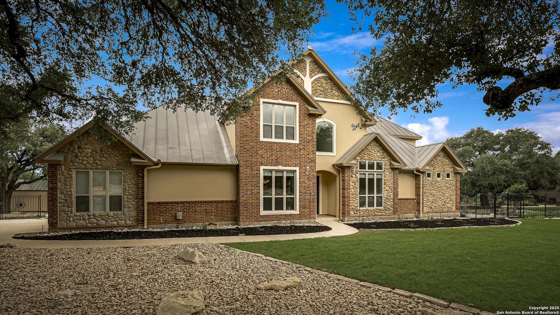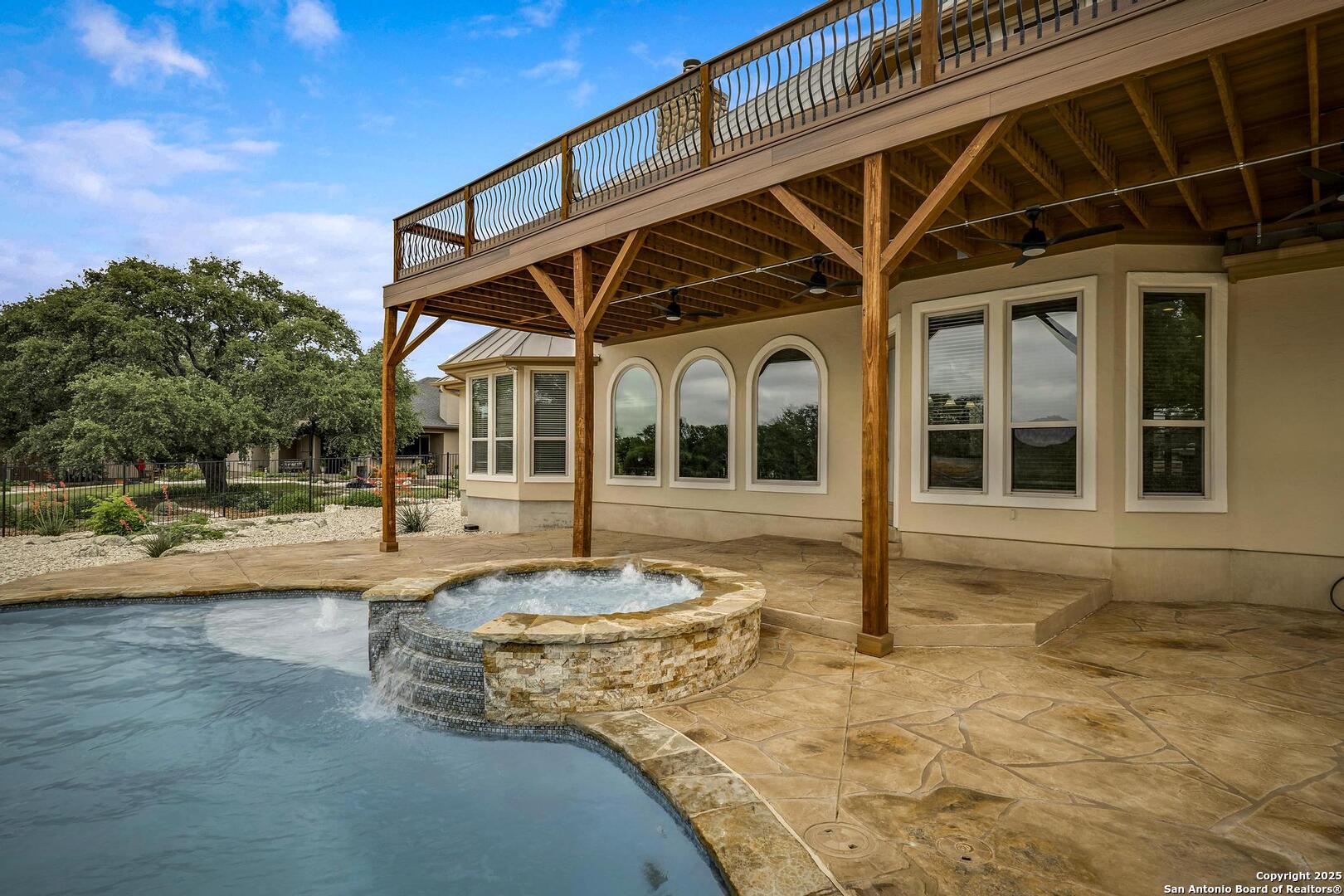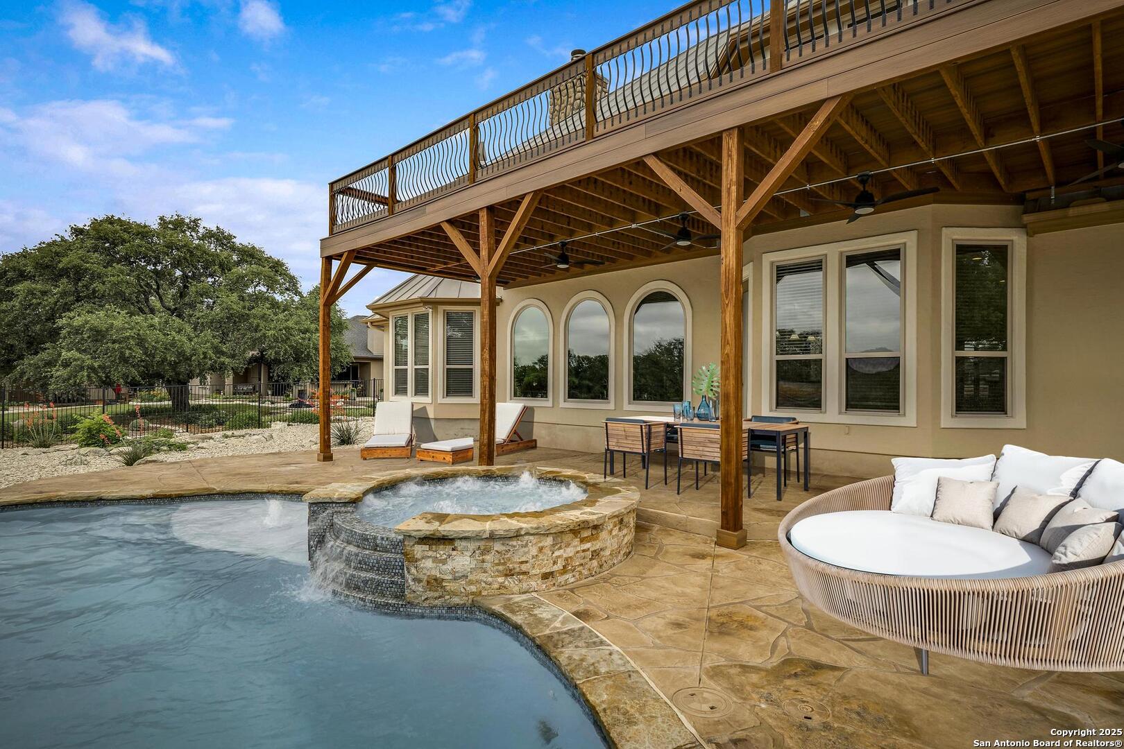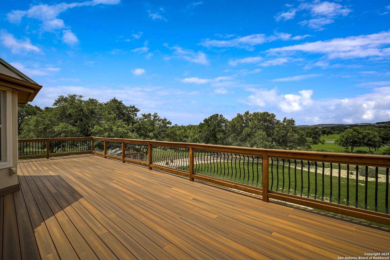 peaceful 1) free from disturbance; tranquil 2) 419 Redland Drive. ------- 419 Redland Drive most definitely defines peaceful. Relaxation from the city bustle sets in as you meander through the streets of River Crossing. Security, serenity and seclusion best describe this unique golf course community. Resort style living in the rustic beauty of the Texas Hill Country. The private River Crossing Club offers its members an exceptional golf experience and activities for the entire family. The River Crossing Club offers members dining and social events, a beautiful resort style pool, complimentary group exercise classes, and a well-appointed fitness center. Additional neighborhood amenities include tennis, basketball, hiking as well as a fun park/playground for the kids. Enjoy the private access resident river park. Spend your summer days along The Guadalupe River fishing, floating and grilling. No city property taxes are a plus. ------- Majestic century oak trees welcome one home to this peaceful 1.04 corner acre lot. Built by Tradition Custom Homes. Constructed with the highest quality materials, masterful engineering, highest efficiencies and beautiful appointments throughout. Hand scraped oak floors and plenty of natural light, low profile picture windows and views of the backyard greet you upon entry. This 4 bedroom open floor plan boasts of a beautiful great room adorned by a high ceiling foyer. The spacious fireplace is perfect for those somewhat chilly nights. The dining room offers plenty of space for family and friends. Beautiful outdoor views from the study. From the master bedroom step into the ensuite bath to enjoy an amazing walk-in shower, double vanities and his/her closets. Upstairs you will discover an additional living area, guest suite and large secondary bedrooms. Watch your favorite movies and sports events in the oversized theater room. The views from the recently built upper deck are amazing. Looking out towards the picturesque waterfront fairway. Wide hallways, solid doors, ample closet space and timeless flooring are carried throughout the house. Possible elevator shaft located in front foyer. Buyer to confirm. ------- Mountain river stone is carried through to the Chef's Kitchen. Boasting granite countertops, a double island cook area, custom cabinets and top of the line stainless steel appliances. The oversized garage provides ample space for 3 vehicles, secondary refrigerators, fitness area and storage. Step out from the breakfast room onto the updated covered patio area where grilling and chilling is a must. Enjoy the soft sounds of the waterfalls spilling into the recently installed swimming pool. The spacious backyard allows for plenty of creative ideas such as a cabana, children's playscape, garden or workshop. The large shed allows plenty of room for storage. Recently added upgrades, updates and features include the patio, pool, hot tub, upper deck system, fencing, shed, landscape, paint (exterior and interior) and overhead garage doors. ------- Only a short drive to the historic towns of Gruene and New Braunfels. Hop on nearby HWY 281 to San Antonio and the Highland Lakes areas. IH-35 is an easy commute to San Marcos, Wimberley and Austin. Plenty of shopping, restaurants, hospitals, entertainment, the Hill Country Wine Trail, the Guadalupe River and Canyon Lake (the cleanest, clearest, coldest water in Texas). Seclusion, privacy and just plain better living await you at 419 Redland Drive.