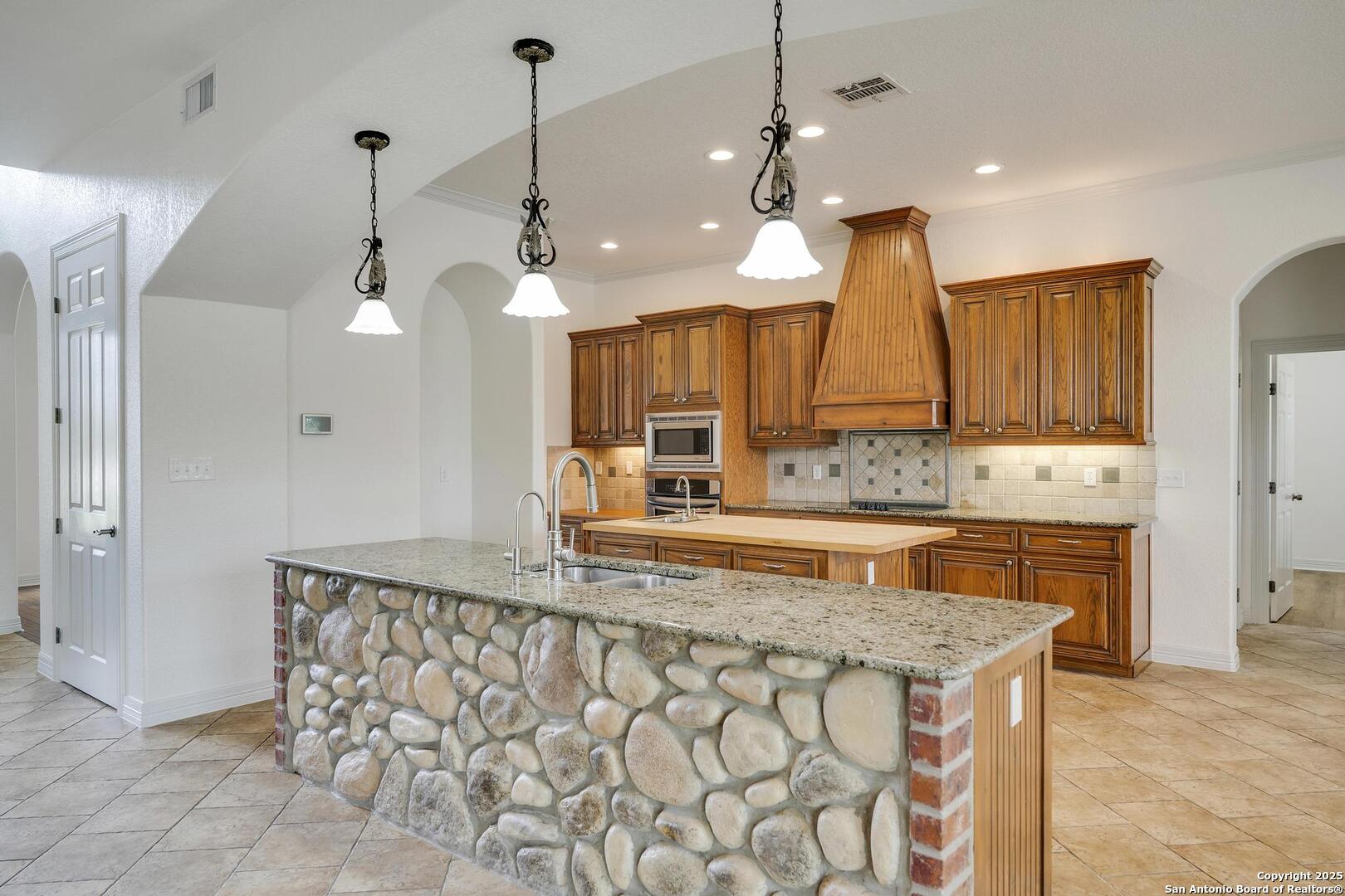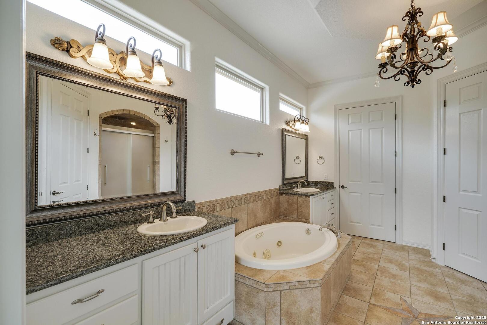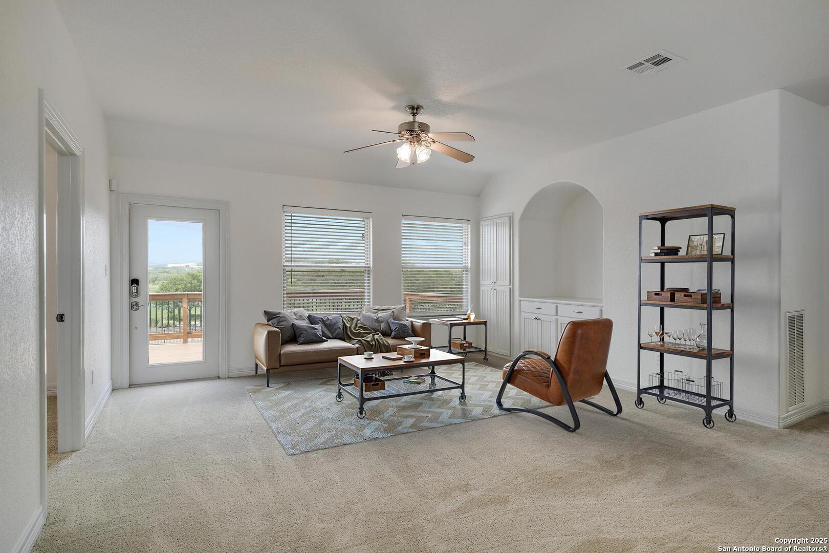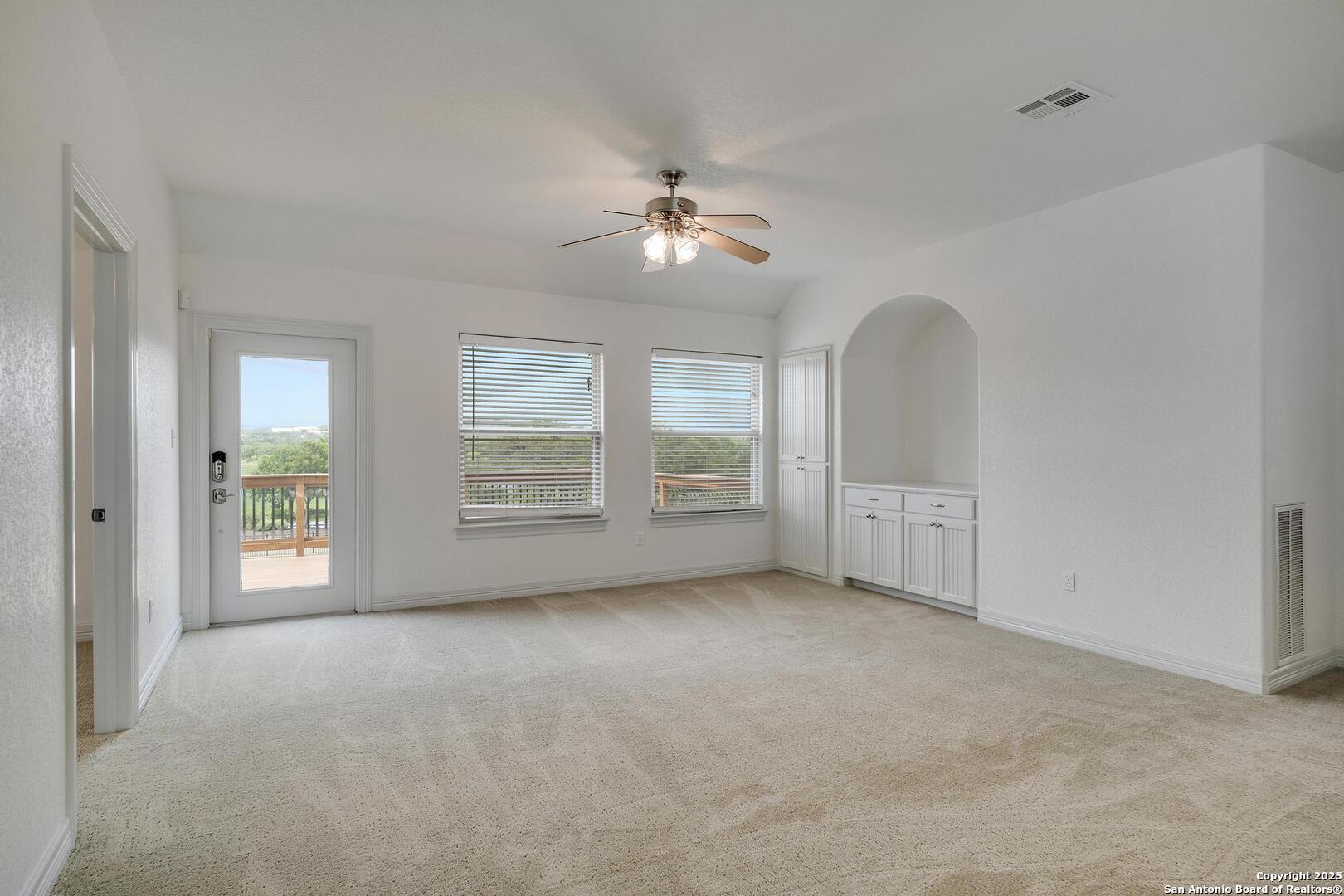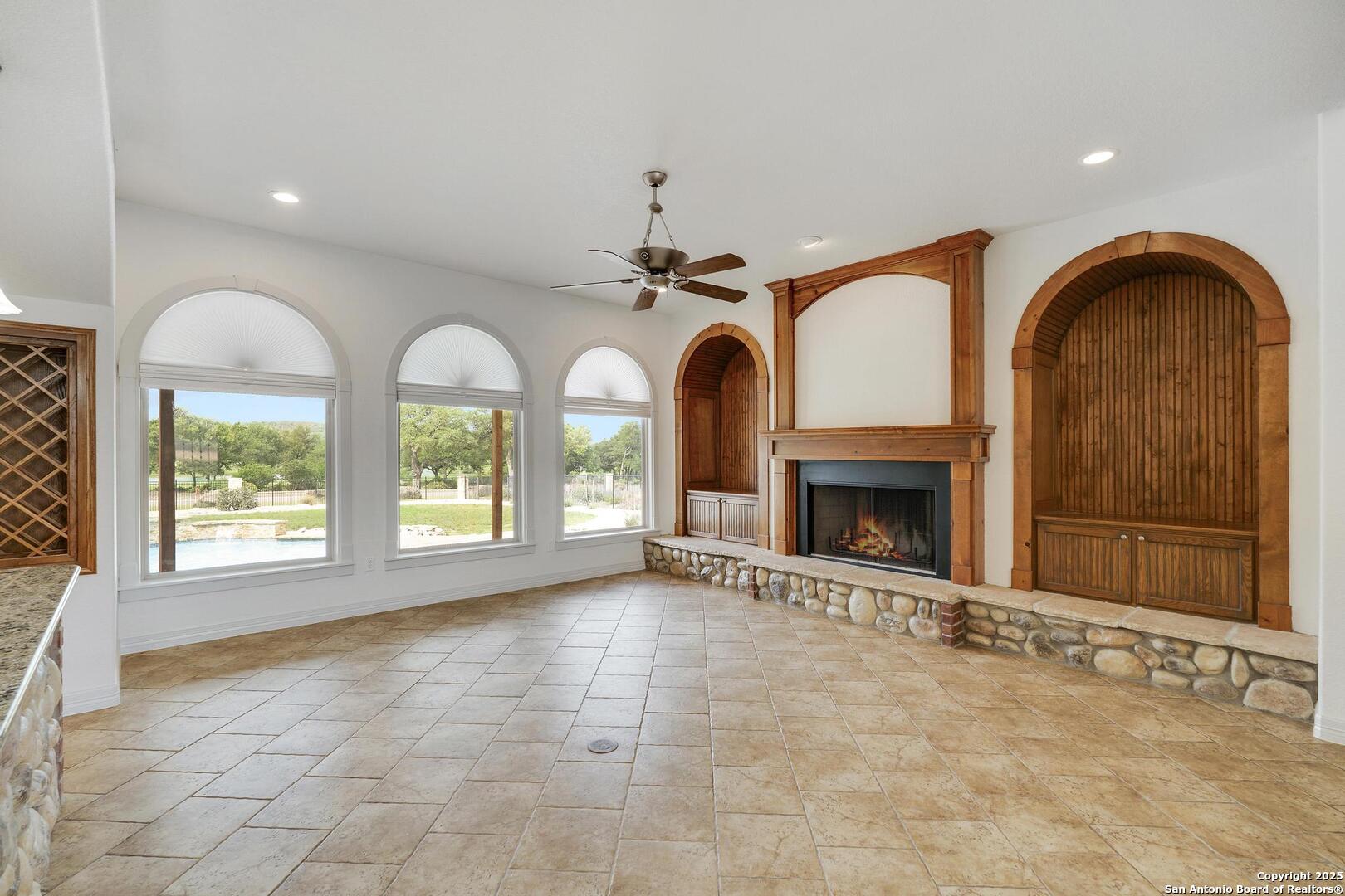 peaceful 1) free from disturbance; tranquil 2) 419 Redland Drive. ------- 419 Redland Drive most definitely defines peaceful. Relaxation from the city bustle sets in as you meander through the streets of River Crossing. Security, serenity and seclusion best describe this unique golf course community. Resort style living in the rustic beauty of the Texas Hill Country. The private River Crossing Club offers its members an exceptional golf experience and activities for the entire family. The River Crossing Club offers members dining and social events, a beautiful resort style pool, complimentary group exercise classes, and a well-appointed fitness center. Additional neighborhood amenities include tennis, basketball, hiking as well as a fun park/playground for the kids. Enjoy the private access resident river park. Spend your summer days along The Guadalupe River fishing, floating and grilling. No city property taxes are a plus. ------- Majestic century oak trees welcome one home to this peaceful 1.04 corner acre lot. Built by Tradition Custom Homes. Constructed with the highest quality materials, masterful engineering, highest efficiencies and beautiful appointments throughout. Hand scraped oak floors and plenty of natural light, low profile picture windows and views of the backyard greet you upon entry. This 4 bedroom open floor plan boasts of a beautiful great room adorned by a high ceiling foyer. The spacious fireplace is perfect for those somewhat chilly nights. The dining room offers plenty of space for family and friends. Beautiful outdoor views from the study. From the master bedroom step into the ensuite bath to enjoy an amazing walk-in shower, double vanities and his/her closets. Upstairs you will discover an additional living area, guest suite and large secondary bedrooms. Watch your favorite movies and sports events in the oversized theater room. The views from the recently built upper deck are amazing. Looking out towards the picturesque waterfront fairway. Wide hallways, solid doors, ample closet space and timeless flooring are carried throughout the house. Possible elevator shaft located in front foyer. Buyer to confirm. ------- Mountain river stone is carried through to the Chef's Kitchen. Boasting granite countertops, a double island cook area, custom cabinets and top of the line stainless steel appliances. The oversized garage provides ample space for 3 vehicles, secondary refrigerators, fitness area and storage. Step out from the breakfast room onto the updated covered patio area where grilling and chilling is a must. Enjoy the soft sounds of the waterfalls spilling into the recently installed swimming pool. The spacious backyard allows for plenty of creative ideas such as a cabana, children's playscape, garden or workshop. The large shed allows plenty of room for storage. Recently added upgrades, updates and features include the patio, pool, hot tub, upper deck system, fencing, shed, landscape, paint (exterior and interior) and overhead garage doors. ------- Only a short drive to the historic towns of Gruene and New Braunfels. Hop on nearby HWY 281 to San Antonio and the Highland Lakes areas. IH-35 is an easy commute to San Marcos, Wimberley and Austin. Plenty of shopping, restaurants, hospitals, entertainment, the Hill Country Wine Trail, the Guadalupe River and Canyon Lake (the cleanest, clearest, coldest water in Texas). Seclusion, privacy and just plain better living await you at 419 Redland Drive.