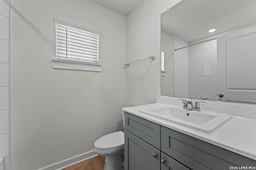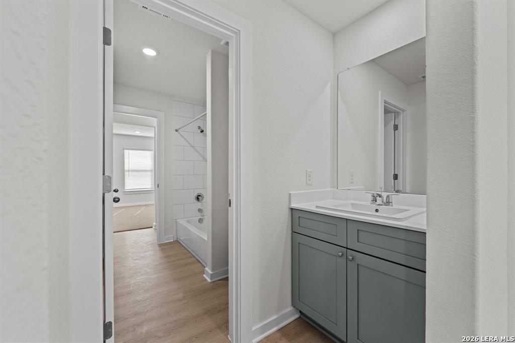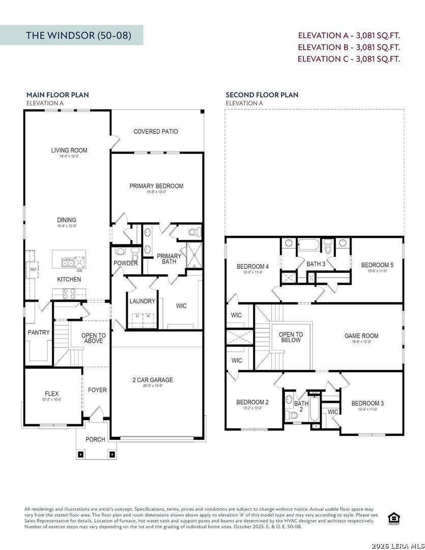 The Windsor A, Homesite 50' is a spacious two-story home offering 3,081 sq. ft. of versatile living space designed for all families. The main floor features a sleek kitchen with a walk-in pantry, a large dining area, and an open living room that leads to a covered patio-ideal for entertaining. A private primary suite is tucked away downstairs with dual vanities, a soaking tub, and a large walk-in closet. Upstairs, a central game room anchors four secondary bedrooms, each with their own walk-in closet for maximum storage. With three full bathrooms, a powder room, and a first-floor flex space perfect for a home office, this layout delivers both comfort and flexibility. A two-car garage, high ceilings, and "open to below" design add an elevated touch to everyday living.