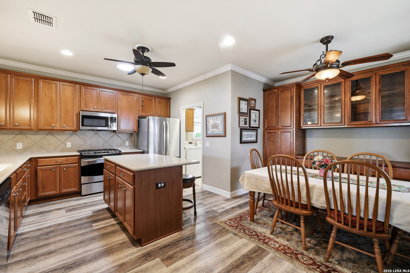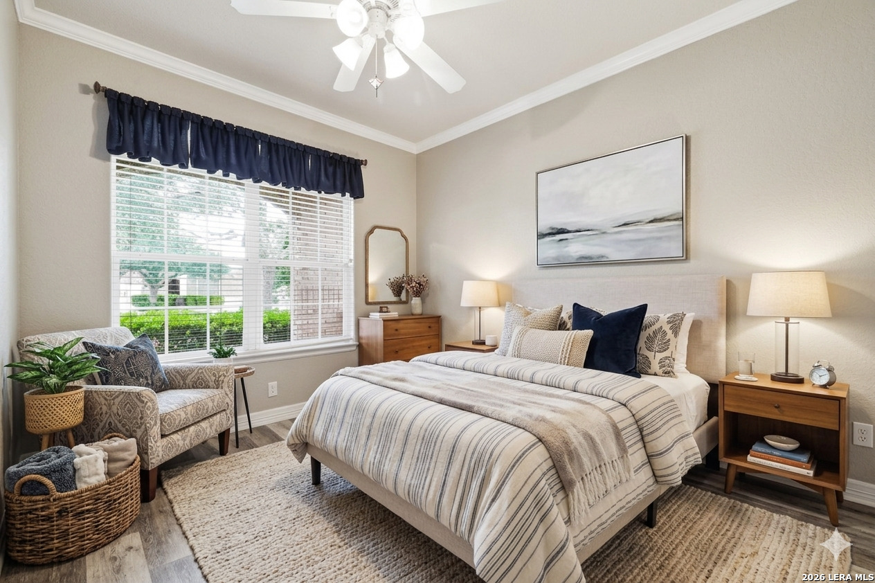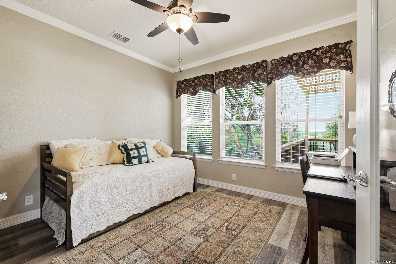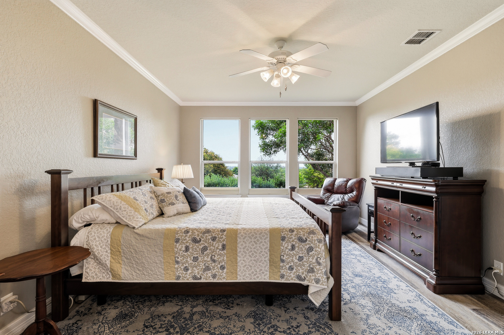 Welcome to 4202 Black Rock in San Antonio's premier 55+ community, Hill Country Retreat, where thoughtful upgrades and resort-style living come together beautifully. This beautifully maintained 2-bedroom, 2-bath home with a private study offers a spacious open-concept layout designed for both everyday comfort and effortless entertaining. The heart of the home is the well-appointed kitchen featuring Corian countertops, stainless steel appliances, a large island with ample storage, and cabinet pullouts throughout for ease of access. What truly sets this home apart is the extensive list of recent improvements and high-value upgrades. Enjoy luxury vinyl plank flooring throughout the main living areas, bedrooms, and flex space, along with crown molding and upgraded baseboards that add a refined finish. Step outside to an exceptional outdoor living space featuring a massive 19x19 Ipe wood deck and an upgraded pergola with adjustable louvers, offering the perfect blend of shade and sunlight. The screened-in patio, heavy-duty sliders, and beautiful landscaping with brick edging and mature trees create a private, serene retreat ideal for year-round enjoyment. Major system updates provide peace of mind, including a Carrier 16 SEER HVAC system (2024), roof replacement with ridge vents (2021), water heater (2024), and water softener system updates (2024). Additional features like WiFi-enabled sprinkler system, skylight tunnels for natural light, added cabinetry, and storm doors enhance both functionality and efficiency. Situated on a desirable corner lot with scenic views, this home offers both space and privacy within one of San Antonio's most sought-after active adult communities. Residents of Hill Country Retreat enjoy a 28,000 sq. ft. amenity center, indoor/outdoor pools, fitness center, walking trails, social clubs, and a vibrant lifestyle calendar. This is the perfect blend of low-maintenance living, thoughtful upgrades, and community lifestyle-all in a prime location close to shopping, dining, and medical facilities.