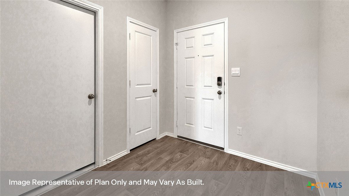 MOVE IN READY! OVERSIZE LOT! Step into the Denton at Bollinger, our new community in Maxwell, Texas. This one-story home is perfect for small families looking for extra space. Inside this 1,574 square foot home, you will find 3 bedrooms, 2 bathrooms and a 2-car garage. Our homes in Bollinger feature our modern farmhouse exteriors. Coming into the house from the covered front porch, you’ll find a foyer and hallway that takes you to the heart of the house, the living space. The open concept design of kitchen, dining room and family room allows for easy entertaining and everyday living. The L-shaped kitchen features an island with undermount sink, granite countertops, 4" backsplash, a pantry closet, 36” upper cabinets, and stainless-steel appliances, including a gas range. The primary bedroom is off the dining room and has its own attached bathroom. Enjoy the walk-in shower, cultured marble vanity with dual sinks, and separate door to the toilet for privacy. A huge walk-in closet with generous shelving is connected to the bathroom. You will have plenty of space in this closet for your accessories or prized possessions. The secondary bedrooms are off the foyer at the front of the home. In the hall between the bedrooms is the secondary bathroom, which includes a shower/tub combination. Each bedroom includes a closet with shelving. The utility room is tucked away between the foyer and kitchen, convenient to all bedrooms once the clothes are cleaned. The Denton includes vinyl flooring throughout the common areas of the home, and carpet in the bedrooms. A covered back patio is also included in the Denton plan. All our new homes feature Bermuda sod, an irrigation system in the front and back yard, and a 6’ privacy fence around the back yard. This home comes with our America’s Smart Home base package, which includes the Front Door Bell Deadbolt Lock, Home Hub, Thermostat, and Deako Smart Switches.