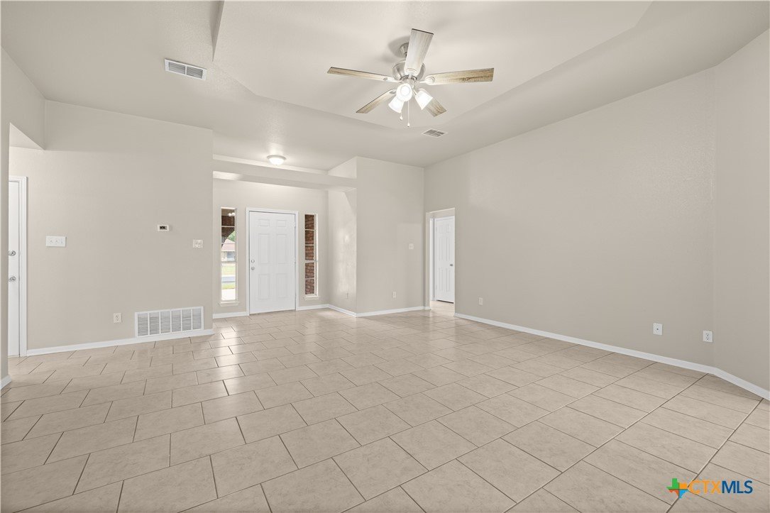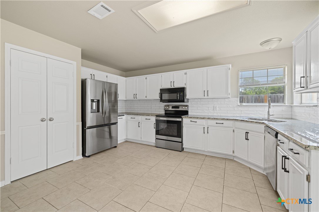 Welcome to 4216 Frontier Drive in Killeen, Texas—a beautifully refreshed 3-bedroom, 2-bath home that combines comfort, style, and functionality with thoughtful updates throughout. From the moment you arrive, you’ll notice the fresh exterior paint, mature trees, and inviting curb appeal that set the tone for what’s inside. Step into a bright and welcoming interior featuring fresh paint, updated light fixtures, and durable ceramic tile flooring that flows seamlessly throughout the home. The spacious living room is anchored by a stunning wood-burning fireplace, creating the perfect space to relax or entertain. The kitchen is truly the heart of the home—generously sized and designed for both everyday living and hosting. It features granite countertops, stainless steel appliances, ample cabinet space, and a convenient pantry, all laid out in a way that maximizes both function and flow. The primary suite offers a private retreat with a well-appointed ensuite bathroom that includes separate vanities, a garden tub, a separate walk-in shower, and a spacious walk-in closet. The secondary bedrooms are well-sized and share a thoughtfully designed full bathroom. Major system updates provide peace of mind, including a roof replaced in April 2026 with impact-resistant architectural shingles, HVAC outdoor unit replaced in 2020, air handler replaced in 2022, and a water heater replaced in 2020. Step outside and enjoy the best of Texas living with a large covered front porch and an expansive covered patio—perfect for entertaining, relaxing, or enjoying the shade under mature trees. Additional features like gutters and the home’s functional layout make this property as practical as it is beautiful. This home offers the perfect blend of updates, space, and charm—ready for its next owner to move in and enjoy.