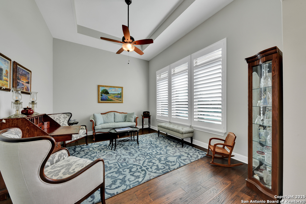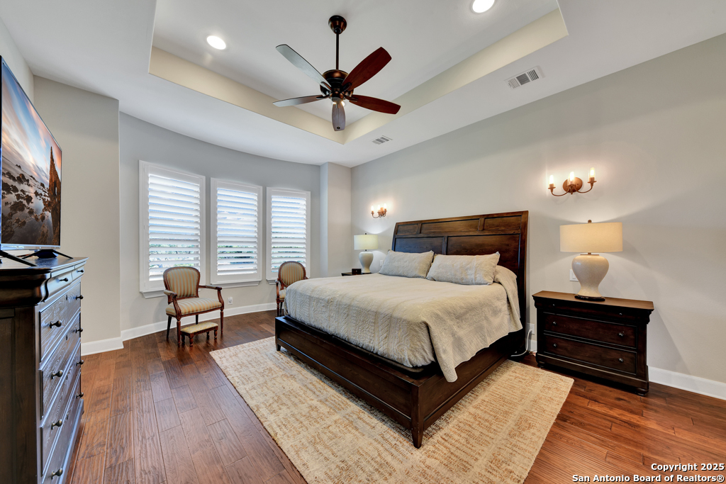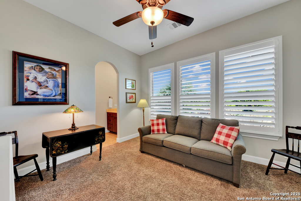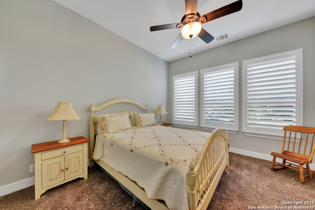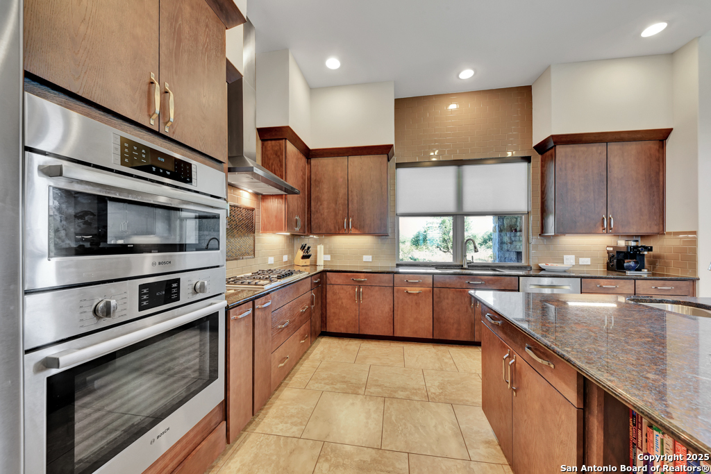 Welcome into the guard gated community of Copper Ridge to see this one story Weston Dean custom build. This open concept home with 3 bedrooms, 2 and a half bath, flex space, and formal dining create a layout to be desired and large windows throughout offer abundant natural light. Take in the special details like plantation shutters on all windows, grand stone fireplace in living area along with surround sound for great entertainment. Enjoy cooking on a quiet evening in your large kitchen with prep sink, custom cabinetry, Bosch appliances, and oversized island or host others in your adjacent dining room. At the end of the day, retreat to the owner's suite with beautiful bay window and adjoining bathroom that features dual vanities, dual closets, separate garden tub and doorless walk in shower with dual shower heads. Out back the covered patio offers plenty of space for dining al fresco next to your outdoor kitchen and the gas fireplace can really set the scene. Follow the stone path out into the backyard to find yourself a great additional space for conversation and a potential future home for fun firepit hangout. Come and see it for yourself.