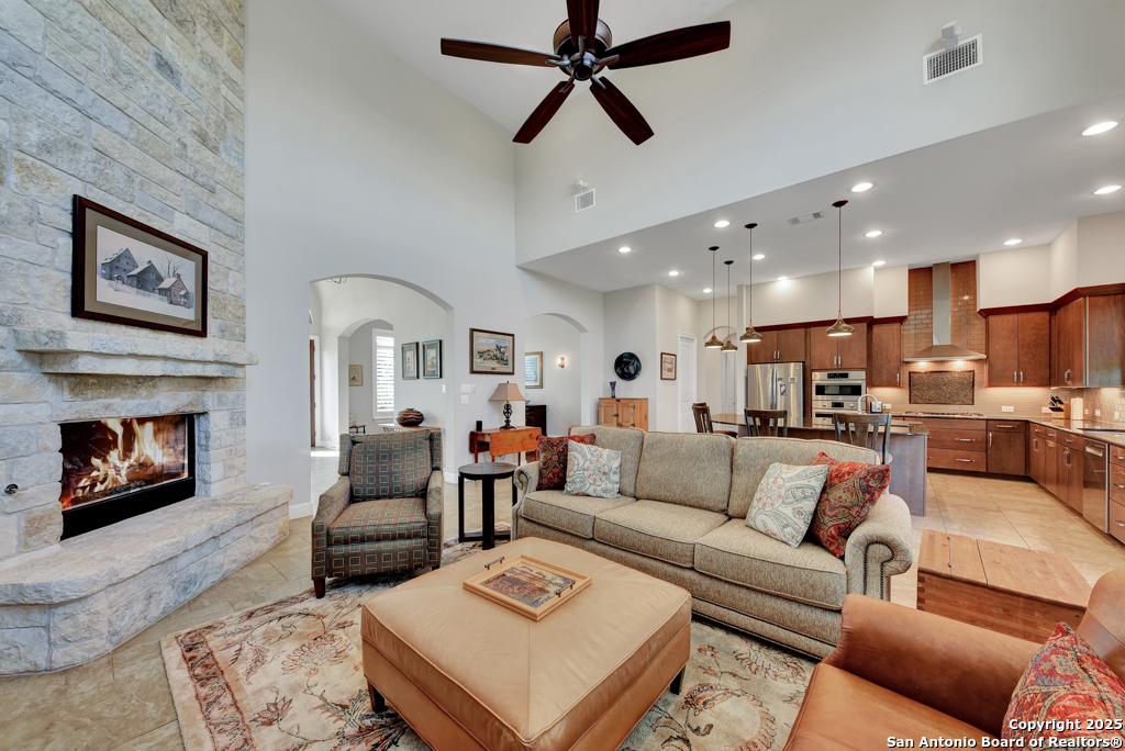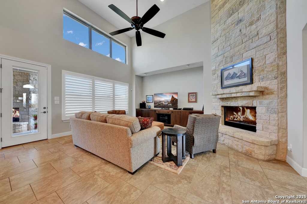FireplaceTwo, Living Room, Gas Logs Included, Gas, Stone/Rock/Brick, Glass/Enclosed Screen, Other