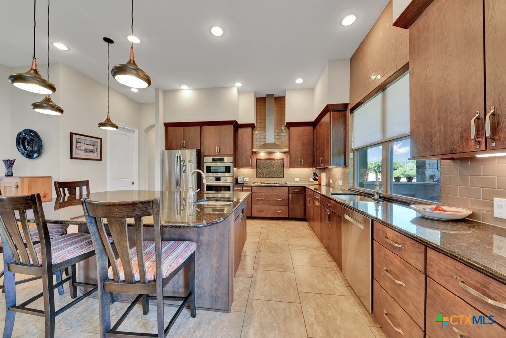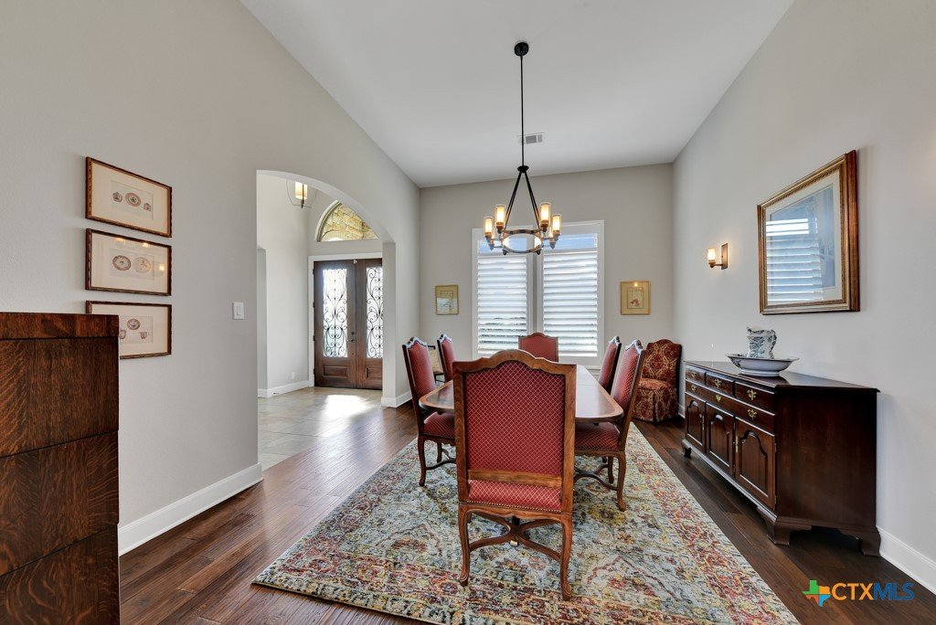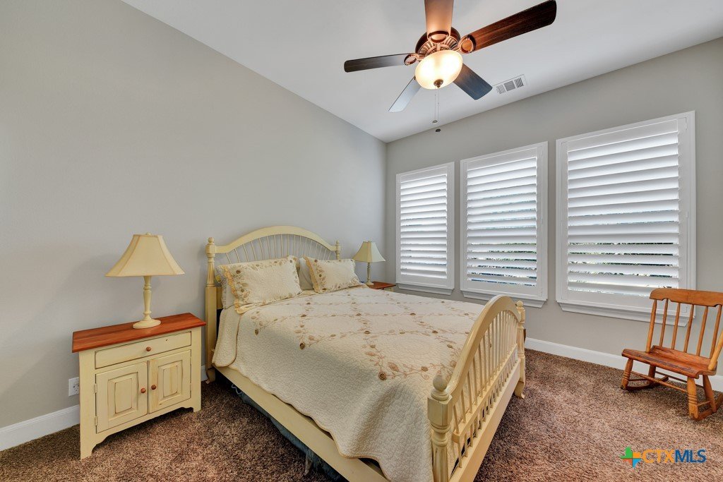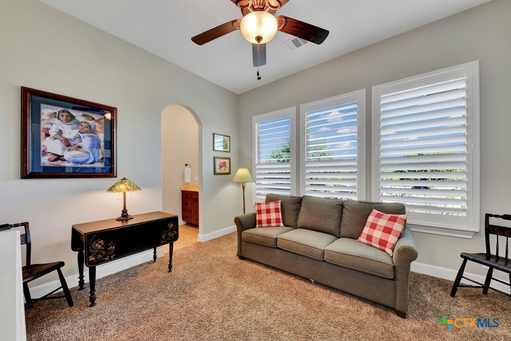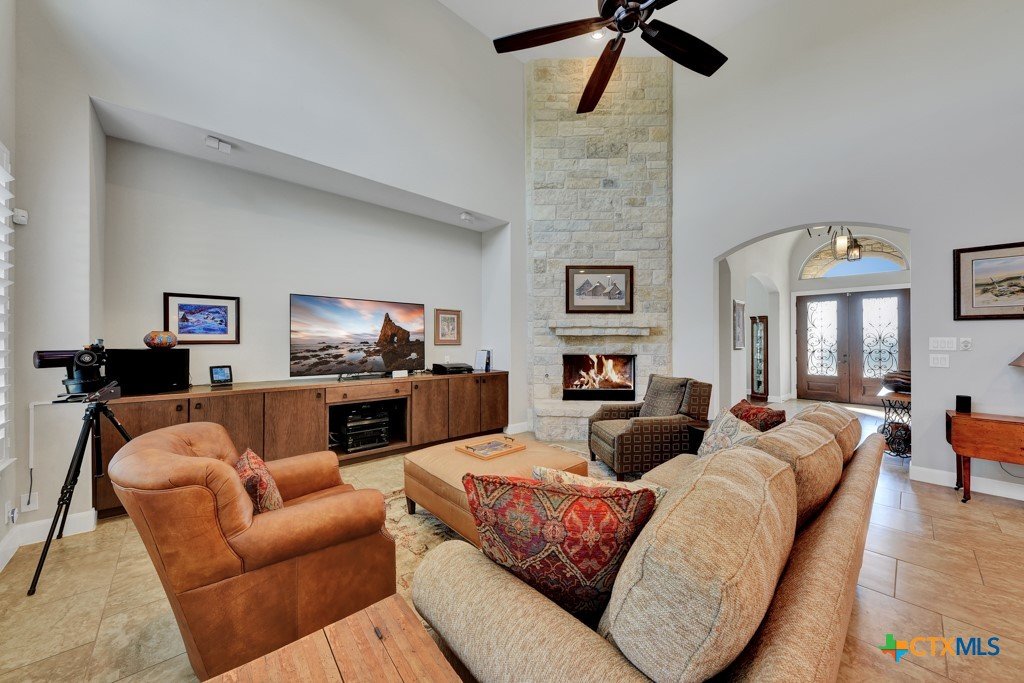 Welcome into the guard gated community of Copper Ridge to see this one story Weston Dean custom build. This open concept home with 3 bedrooms, 2 and a half bath, flex space, and formal dining create a layout to be desired and large windows throughout offer abundant natural light. Take in the special details like plantation shutters on all windows, grand stone fireplace in living area along with surround sound for great entertainment. Enjoy cooking on a quiet evening in your large kitchen with prep sink, custom cabinetry, Bosch appliances, and oversized island or host others in your adjacent dining room. At the end of the day, retreat to the owner's suite with beautiful bay window and adjoining bathroom that features dual vanities, dual closets, separate garden tub and doorless walk in shower with dual shower heads. Out back the covered patio offers plenty of space for dining al fresco next to your outdoor kitchen and the gas fireplace can really set the scene. Follow the stone path out into the backyard to find yourself a great additional space for conversation and a potential future home for fun firepit hangout. Come and see it for yourself.