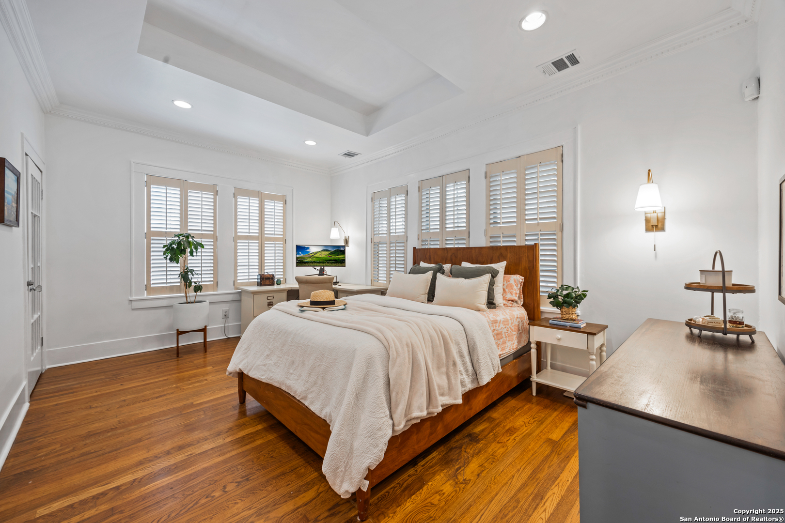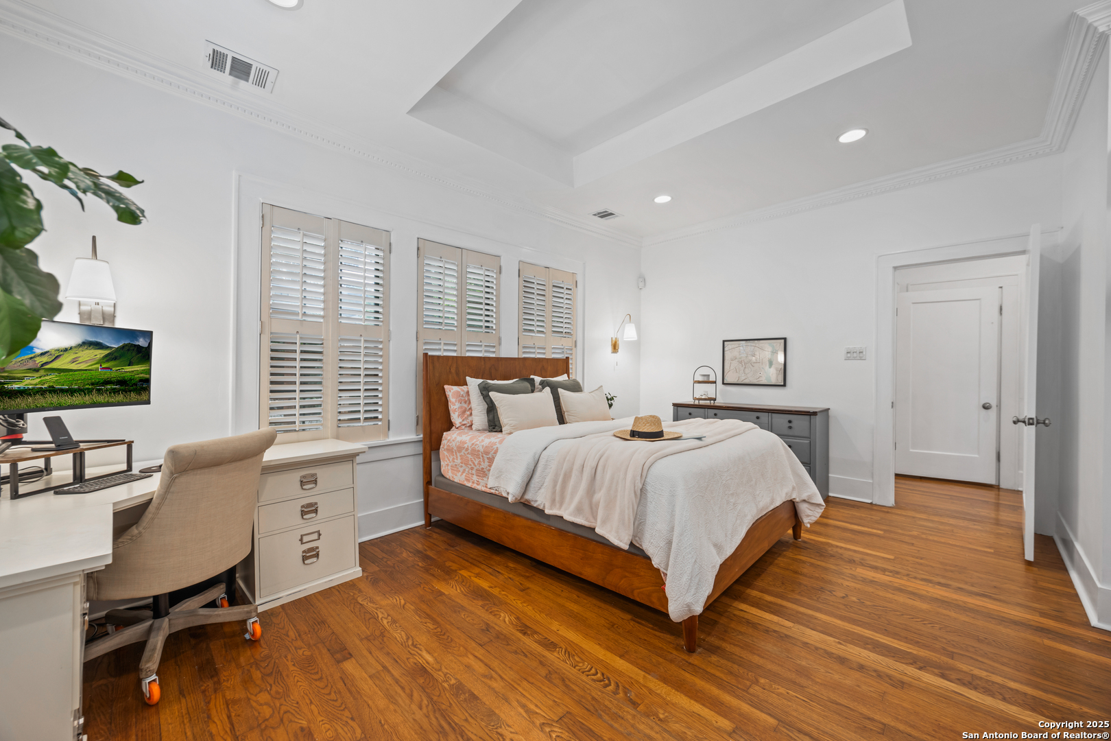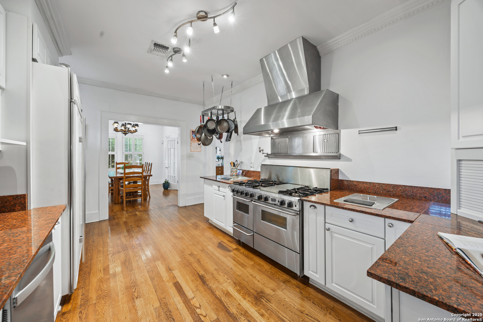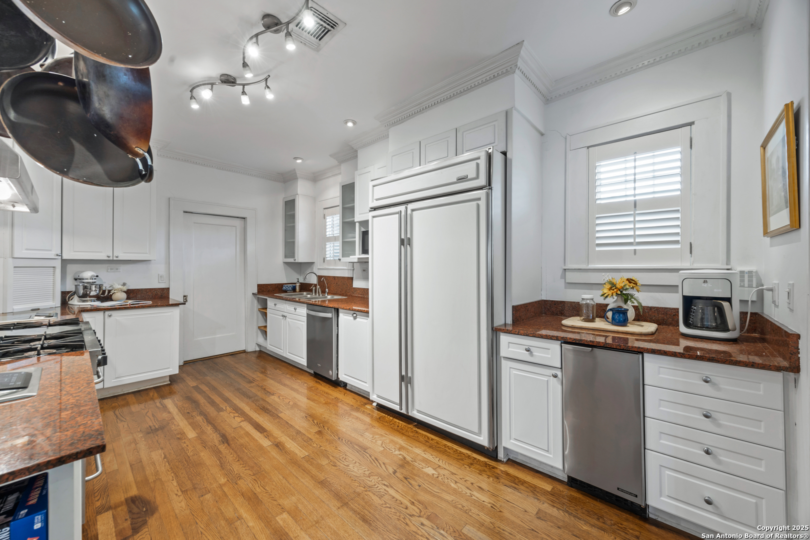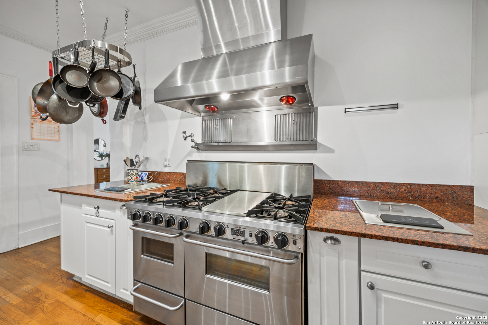 Charming 1928 Craftsman Bungalow with Modern Upgrades! This beautifully maintained home features original oak hardwood floors and a cozy family room with a classic brick fireplace. Enjoy a chef-inspired kitchen complete with 30 feet of granite countertops, Sub-Zero refrigerator/freezer, Hoshizaki ice maker, and a professional-grade 6-burner and pot filler. The luxurious custom bathroom boasts Italian tile, Kohler fixtures, heated floors, and a heated towel rack. Don't miss the massive walk-in master closet! Elegant crown molding and shutters add timeless charm. The private backyard offers lush landscaping and multiple patios, perfect for entertaining. Notable improvements made within the past several years include updated electrical and plumbing systems, insulation, a newer water heater, and a water softener system.