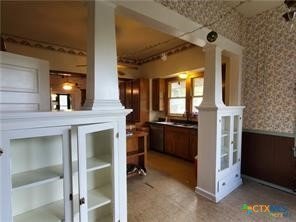 Priced to sell!! Welcome to this charming and unique turn-of-the-century home, nestled on a beautiful .35-acre lot adorned with mature trees and a sprawling backyard, perfect for family activities and entertaining under the Texas sky! As you approach, the inviting front porch and bench swing beckon you to sit back and take in the breathtaking sunrises and sunsets that grace this picturesque property. Step inside to discover a treasure trove of timeless original hardwood flooring and trim, just waiting to be restored to their former glory with a little tender loving care. The oversized kitchen steals the spotlight with its two expansive islands, offering ample countertop space for culinary creations. A built-in corner storage cabinet and glass-front storage in the breakfast area add both charm and functionality, while pocket doors lead to the formal dining area and French doors open to the front living area, creating a seamless flow for entertaining guests or simply enjoying everyday living. Abundant windows throughout flood the home with natural light and refreshing ventilation, creating a bright and airy ambiance that invites you to relax and unwind. With plenty of storage space and generously sized rooms, this home offers ample room for the whole family to spread out and make lasting memories. Conveniently located between Austin, Houston, San Antonio, and Victoria, this home offers easy access to major cities while retaining the tranquility of small-town living. Don't miss the opportunity to witness the potential of this remarkable property - it's truly a must-see gem waiting to shine like a diamond once again! Schedule your showing today and envision the endless possibilities that await in this enchanting home.