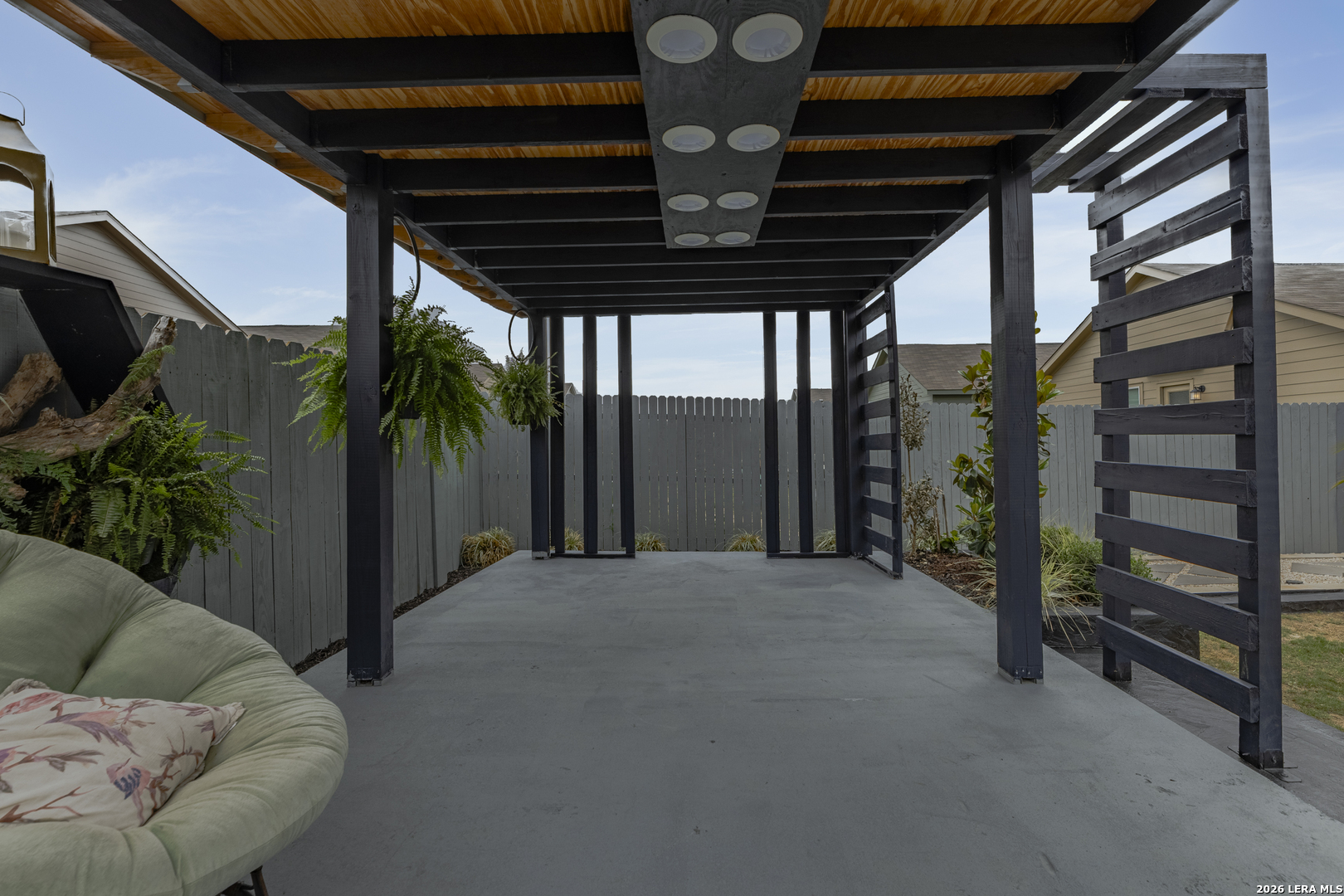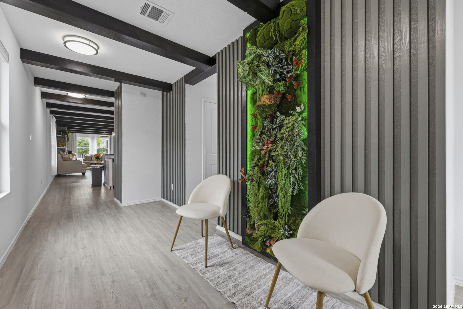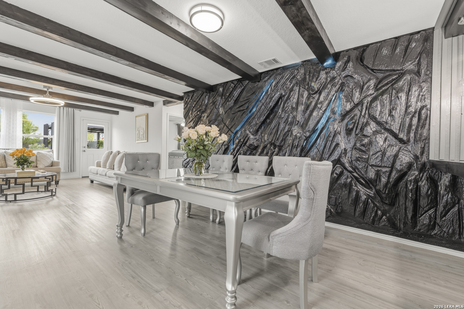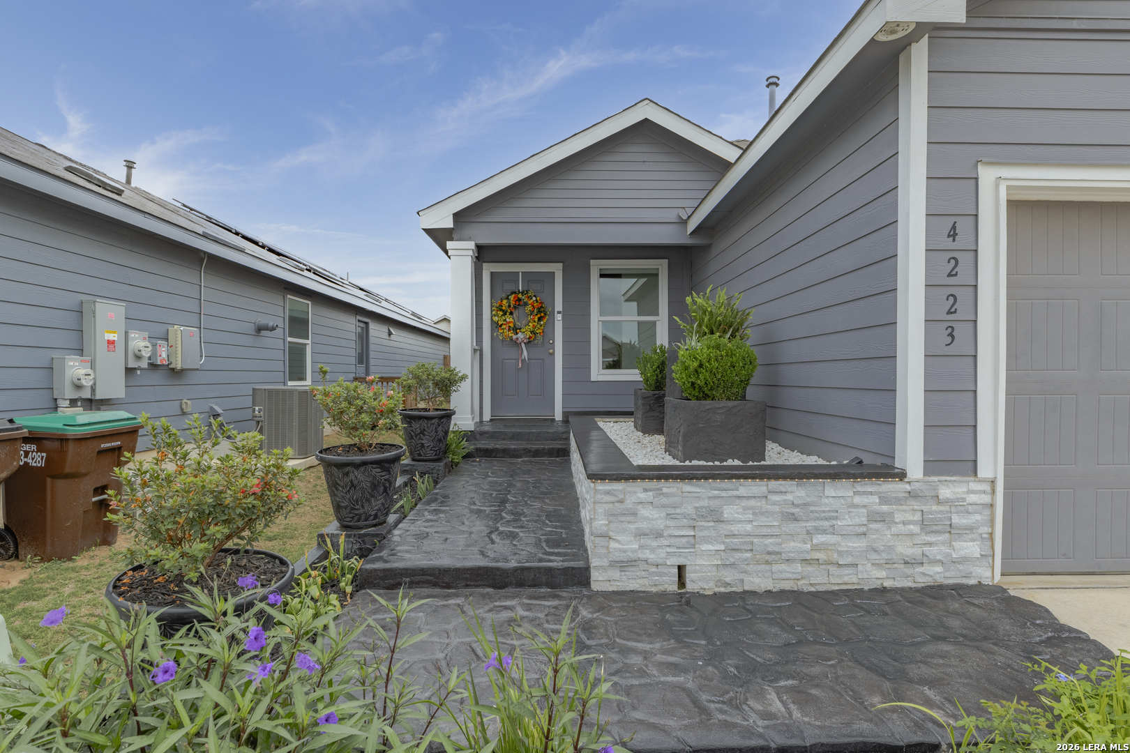 OPEN HOUSE THIS SUNDAY 4/26 FROM 12-4PM. This striking, re-imagined 4-bedroom, 2-bath home with a 2-car garage offers 1,606 square feet of beautifully updated living space and standout design you do not see every day. From the moment you arrive, the custom landscaping, modern hardscaping, and bold exterior styling create unforgettable curb appeal. Inside, the home is filled with designer touches, including dramatic exposed beams, sleek contemporary lighting, custom accent walls, and an open-concept layout that feels both stylish and inviting. The living area is a true showpiece with a stunning fireplace feature wall and seamless flow into the dining and kitchen spaces. The kitchen shines with granite countertops, stainless steel appliances, crisp white cabinetry, and a breakfast bar perfect for everyday living and entertaining. The spacious primary suite offers a relaxing retreat, while the secondary bedrooms provide flexibility for guests, hobbies, or a home office. All TV's remain except in the secondary bedroom at the end of the hallway. Throughout the home, thoughtful updates and unique finishes give each space character and a polished, custom feel. Step outside to enjoy an incredible backyard setup featuring a one-of-a-kind covered patio structure with modern lines and plenty of room to lounge, entertain, or unwind. The outdoor spaces have been carefully designed to extend the home's style beyond the interior, making this property as impressive outside as it is inside. Located in a neighborhood with fantastic amenities, residents enjoy access to a large community pool and playground for even more recreation and fun. This is not your typical builder-grade home-thoughtful upgrades, custom finishes, and standout design choices have transformed it into a space that feels elevated, stylish, and truly one of a kind.