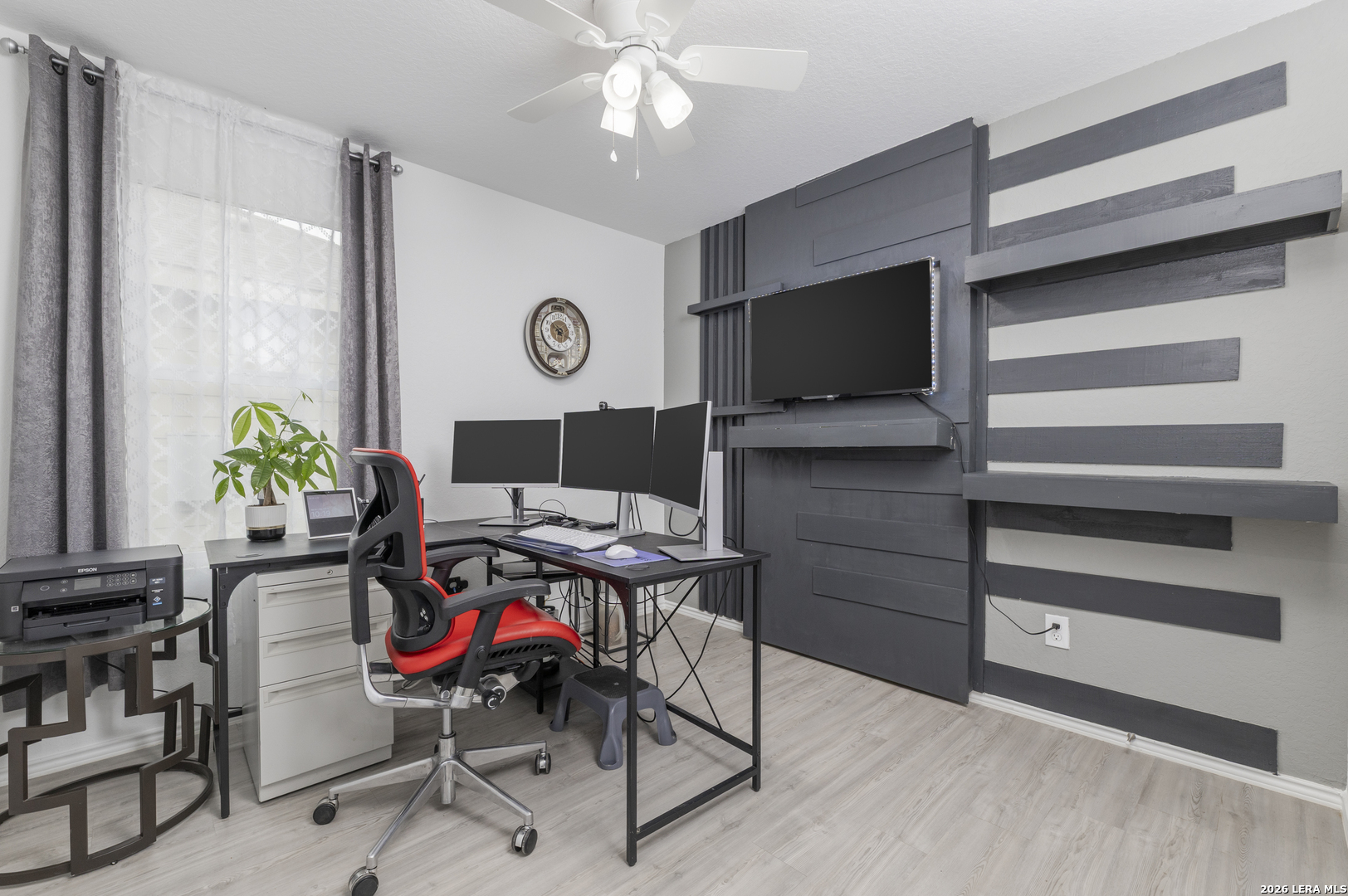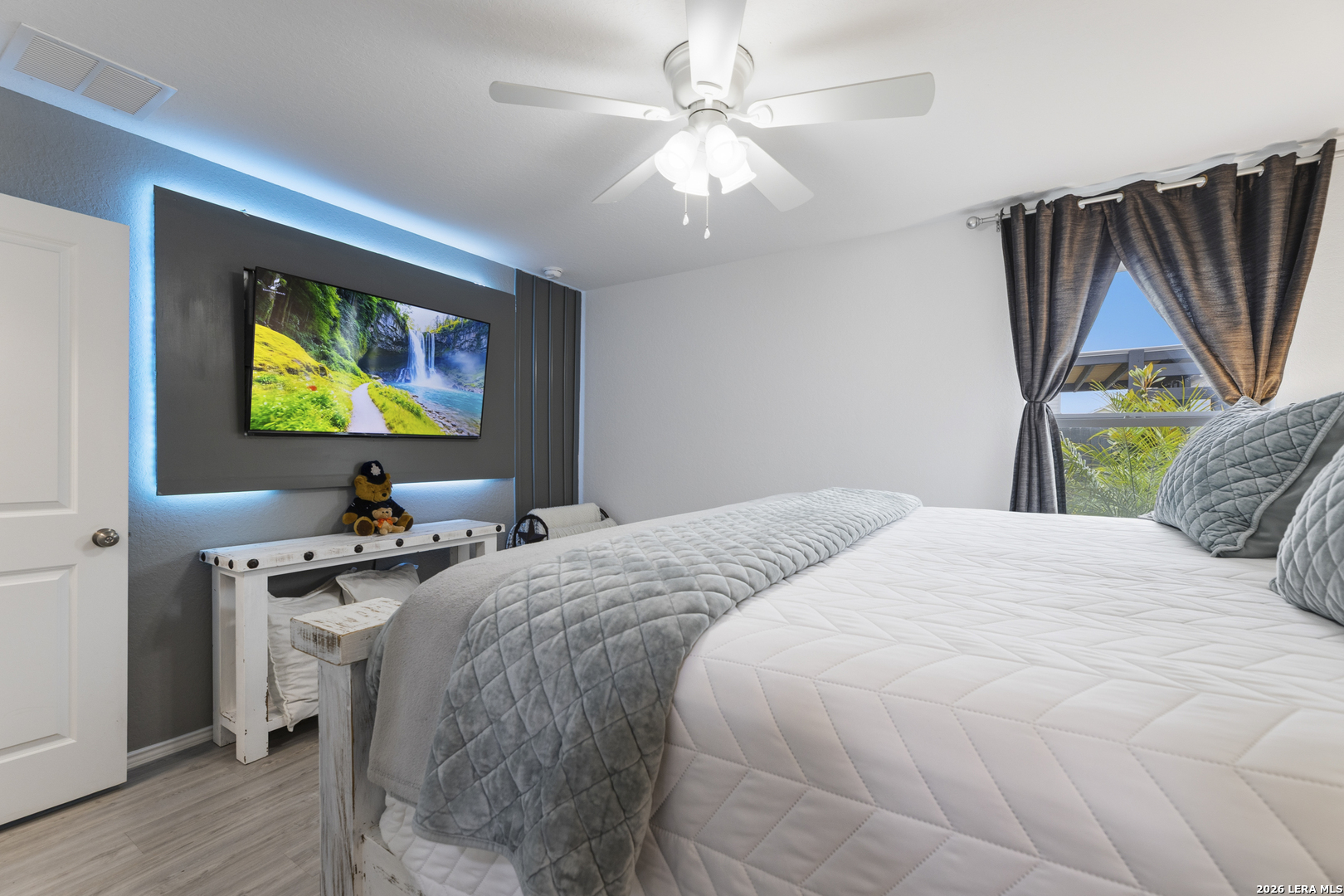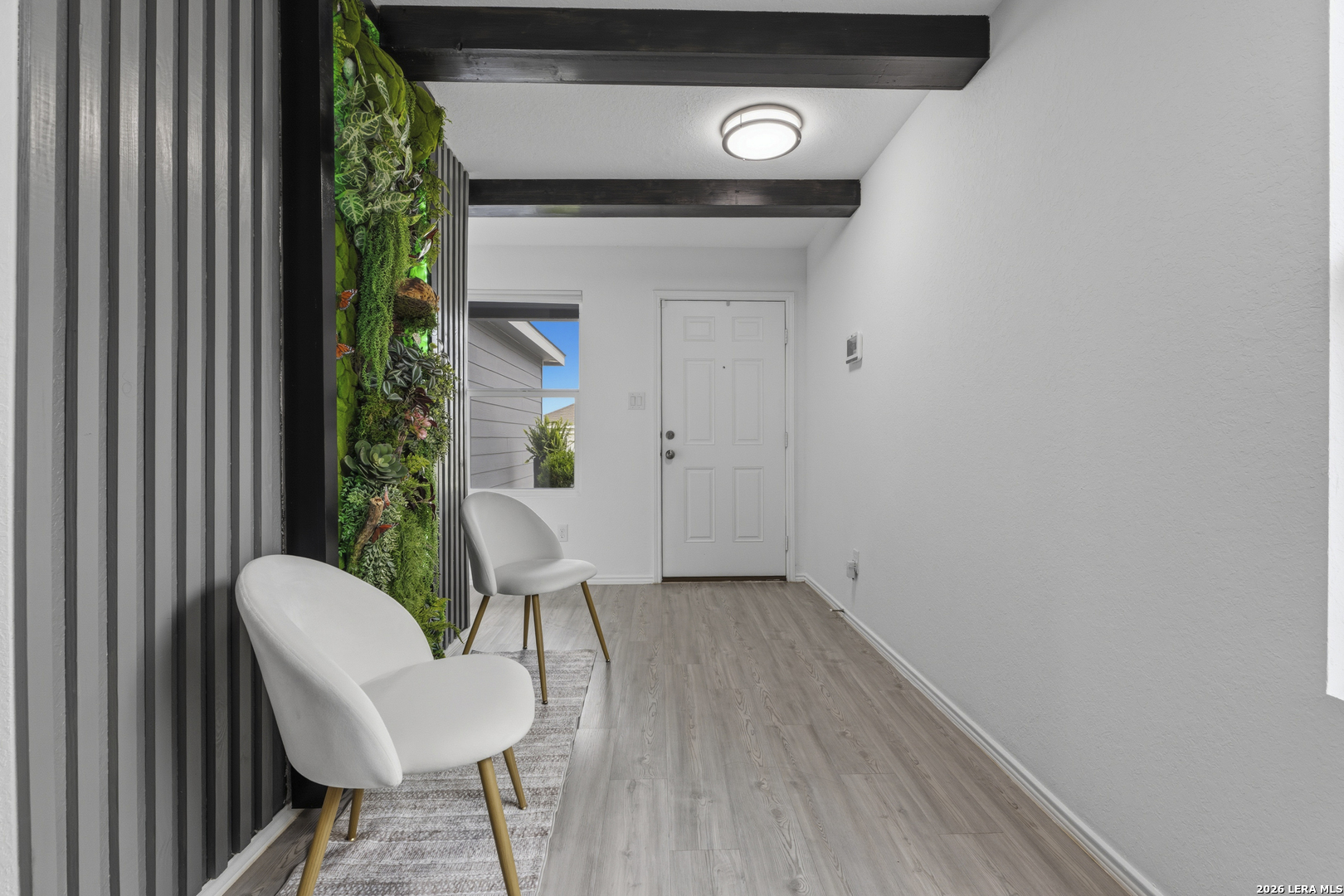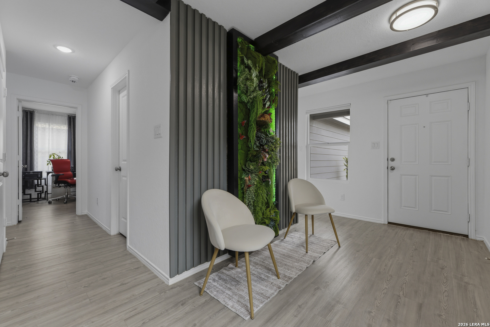 OPEN HOUSE THIS SUNDAY 4/26 FROM 12-4PM. This striking, re-imagined 4-bedroom, 2-bath home with a 2-car garage offers 1,606 square feet of beautifully updated living space and standout design you do not see every day. From the moment you arrive, the custom landscaping, modern hardscaping, and bold exterior styling create unforgettable curb appeal. Inside, the home is filled with designer touches, including dramatic exposed beams, sleek contemporary lighting, custom accent walls, and an open-concept layout that feels both stylish and inviting. The living area is a true showpiece with a stunning fireplace feature wall and seamless flow into the dining and kitchen spaces. The kitchen shines with granite countertops, stainless steel appliances, crisp white cabinetry, and a breakfast bar perfect for everyday living and entertaining. The spacious primary suite offers a relaxing retreat, while the secondary bedrooms provide flexibility for guests, hobbies, or a home office. All TV's remain except in the secondary bedroom at the end of the hallway. Throughout the home, thoughtful updates and unique finishes give each space character and a polished, custom feel. Step outside to enjoy an incredible backyard setup featuring a one-of-a-kind covered patio structure with modern lines and plenty of room to lounge, entertain, or unwind. The outdoor spaces have been carefully designed to extend the home's style beyond the interior, making this property as impressive outside as it is inside. Located in a neighborhood with fantastic amenities, residents enjoy access to a large community pool and playground for even more recreation and fun. This is not your typical builder-grade home-thoughtful upgrades, custom finishes, and standout design choices have transformed it into a space that feels elevated, stylish, and truly one of a kind.