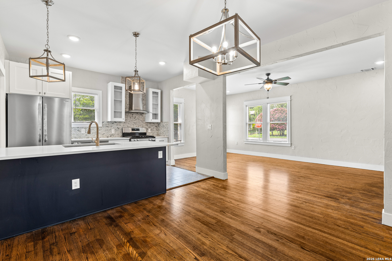 Step into this rare, one-of-a-kind gem in historic Monticello, where classic Spanish charm meets modern elegance. This beautifully renovated 5-bedroom, 4-bathroom Contemporary Spanish-style home blends timeless character with today's most sought-after updates-offering the perfect balance of sophistication, warmth, and everyday functionality. The light-filled, open-concept layout welcomes you with thoughtful design and refined finishes throughout. The chef's kitchen serves as the centerpiece of the home, featuring custom cabinetry, sleek quartz countertops, stainless steel appliances, and seamless flow into the dining and living areas-ideal for both relaxed family meals and effortless entertaining. Designed with flexibility in mind, the home offers two spacious primary suites. The main-level primary retreat provides a peaceful escape with a spa-like en-suite bath complete with an oversized walk-in shower, dual vanity, elegant tile, and a custom walk-in closet. Also on the first floor is an additional bedroom-perfect for guests, a nursery, or home office-along with a full bath. Upstairs, a stunning chandelier highlights the staircase leading to a charming reading balcony, perfect for quiet mornings or evening relaxation. The second level also features a spacious game room with a built-in bar and sink-ideal for movie nights, game days, and entertaining. Three additional bedrooms are located upstairs, including the second primary suite with its own luxurious en-suite bath featuring a walk-in shower, double vanity, and custom walk-in closet. The remaining bedrooms showcase beautiful character with original wood ceilings, and a full bath completes the upper level. With multiple living areas, versatile bedroom options, and spaces designed for both everyday living and entertaining, this Monticello home offers a unique opportunity to own a thoughtfully updated property in one of the area's most beloved neighborhoods. Schedule your private showing today and experience Monticello charm for yourself.