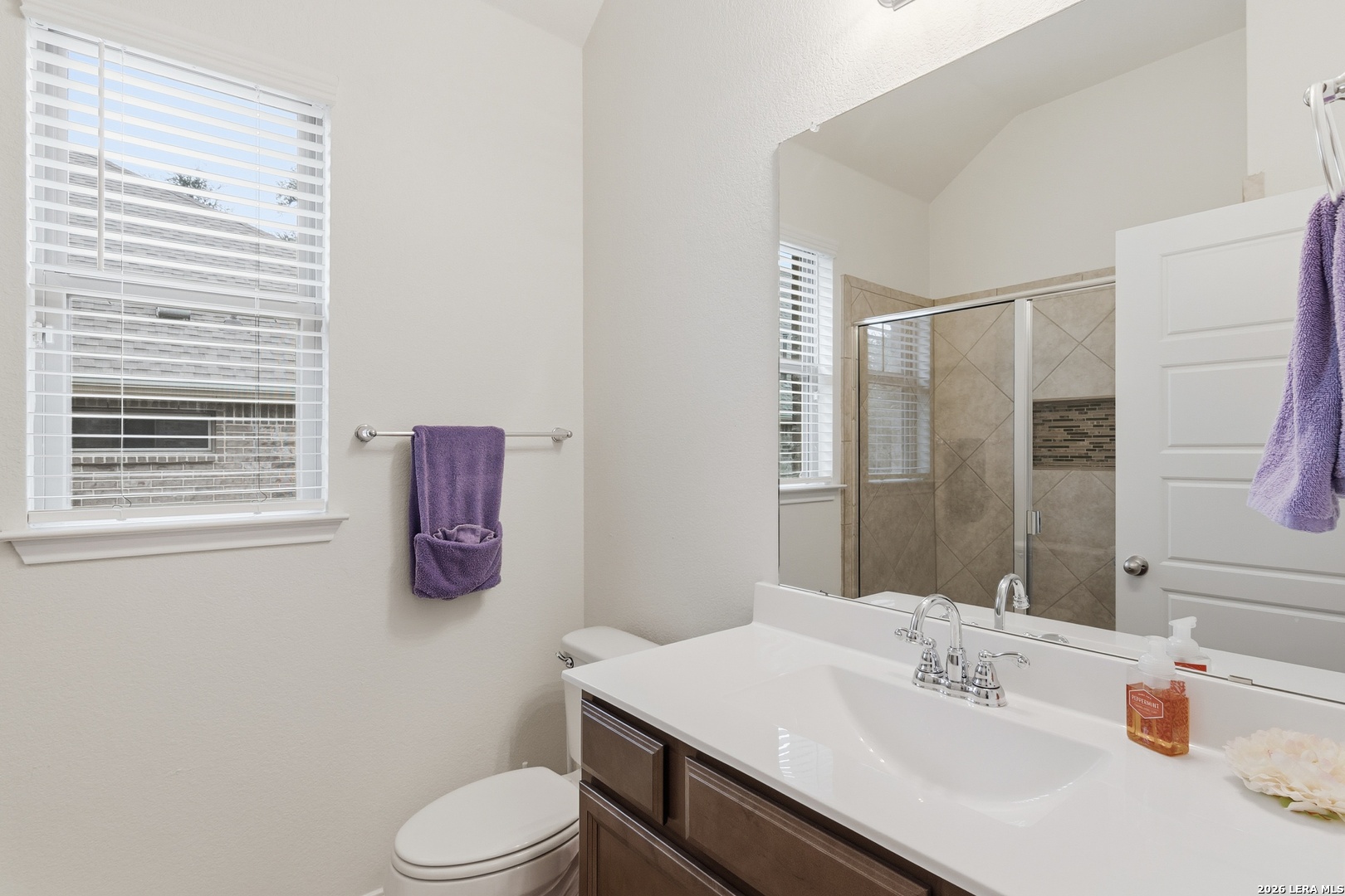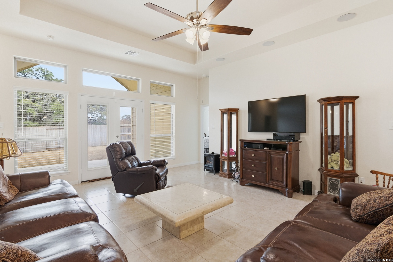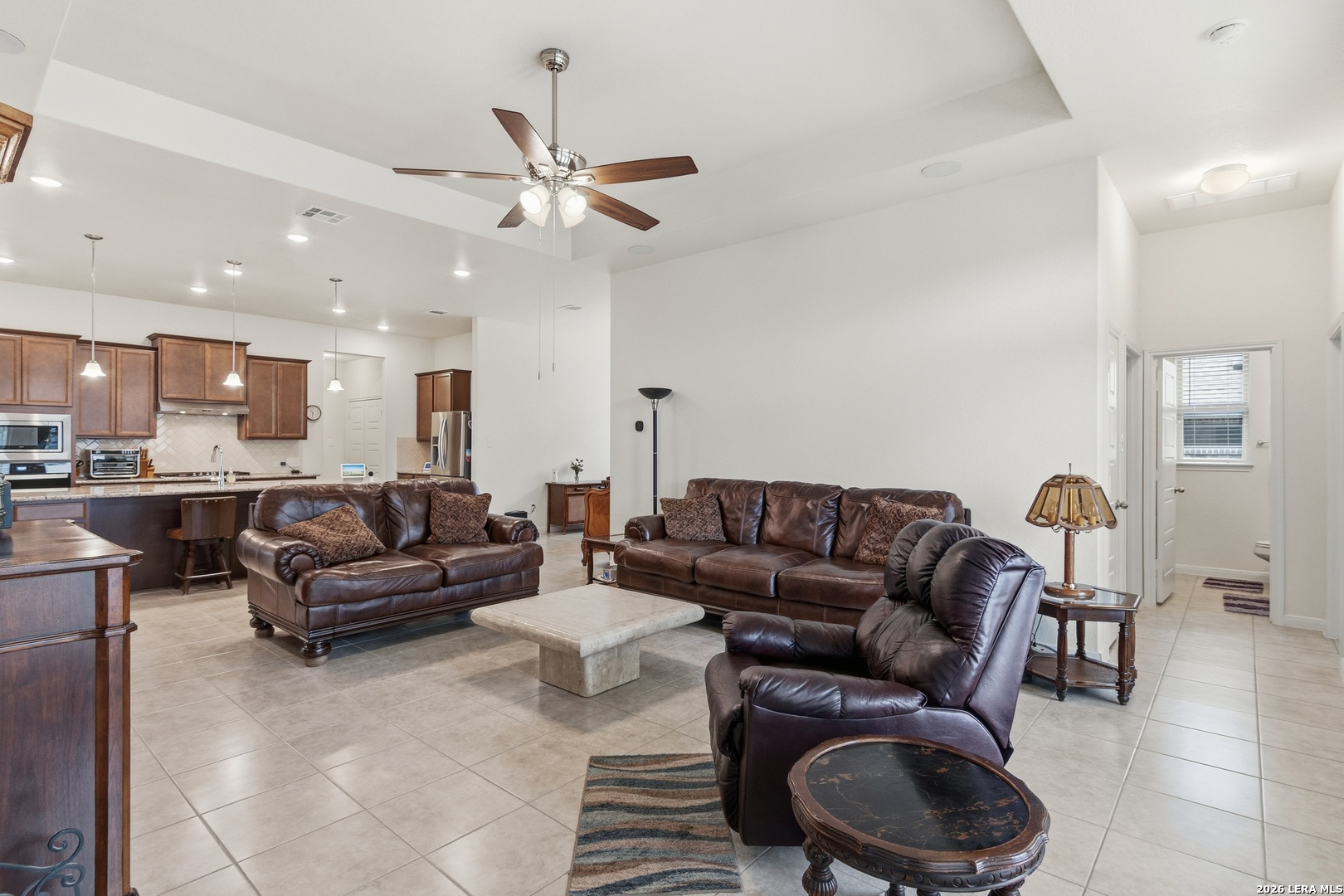 Welcome to 425 Foxbrook in Cibolo, where thoughtful upgrades, flexible living space, and privacy come together in one beautifully designed home. This spacious 4-bedroom, 3 full bath layout also includes a dedicated office and additional flex space, giving you room to work, host, or unwind exactly how you choose. From the moment you arrive, you'll notice the upgraded front door setting the tone. Inside, upgraded doors lead into both the private study and the flex space, adding an elevated feel throughout. The open-concept kitchen is built for both everyday living and entertaining, featuring built-in appliances, a 5-burner gas cooktop, pullout shelves and drawers beneath and beside the cooktop for smart storage, and even a dedicated garbage drawer. The laundry room includes added shelving for extra organization. The living area flows seamlessly to the extended covered rear patio through double doors, creating true indoor-outdoor living. The patio is wired for TV, includes outdoor speakers, and is pre-plumbed with rough gas connections in case you'd like to add an outdoor kitchen in the future. With no rear neighbors, you'll enjoy added privacy, and the lot size offers plenty of space to accommodate a small pool if desired. Additional upgrades include a surround sound system, added ceiling fans throughout, upgraded carpet padding for extra comfort, and a waterline loop already in place for a future water softener. Located in the Foxbrook community in Cibolo, residents enjoy neighborhood amenities that includes a community pool, playground, walking trails, and convenient access to nearby schools, shopping, and dining. With easy access to I-35 and close proximity to Schertz and New Braunfels, this home offers both comfort and convenience.