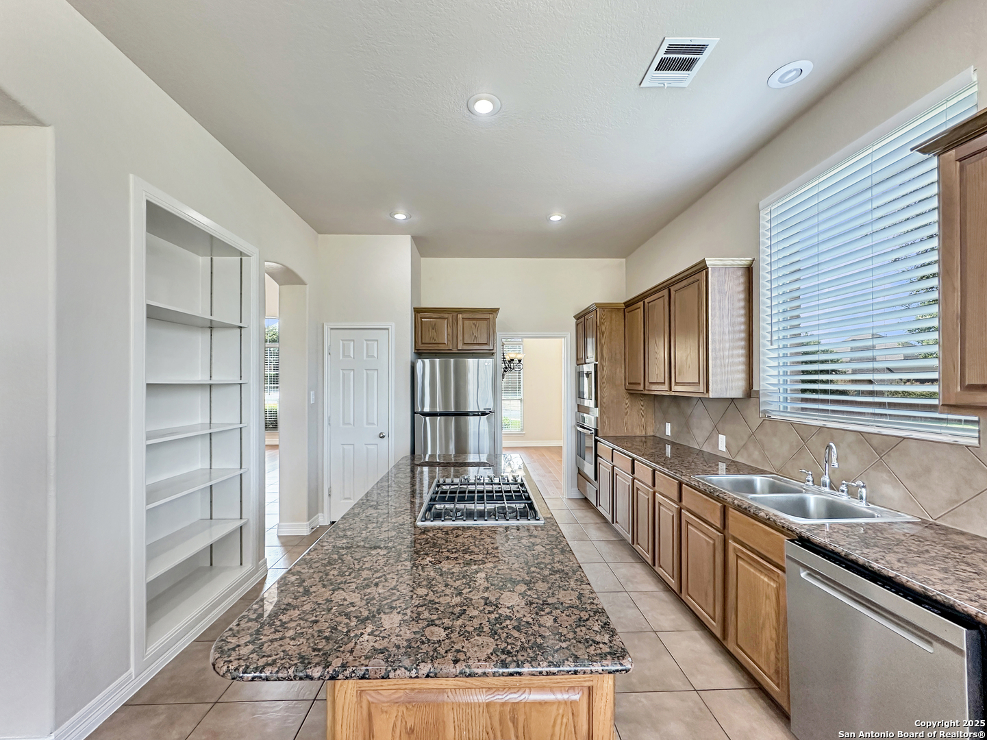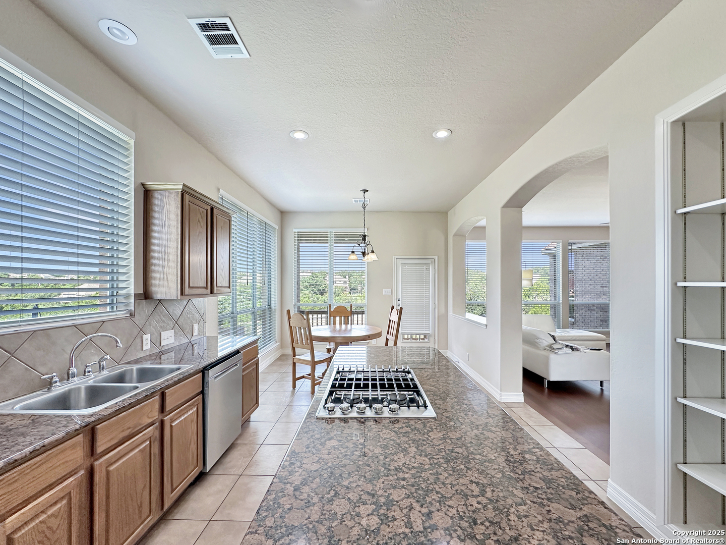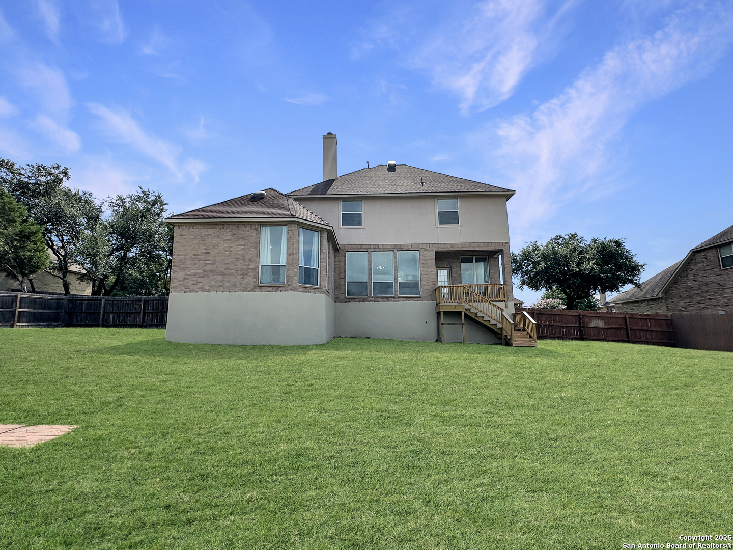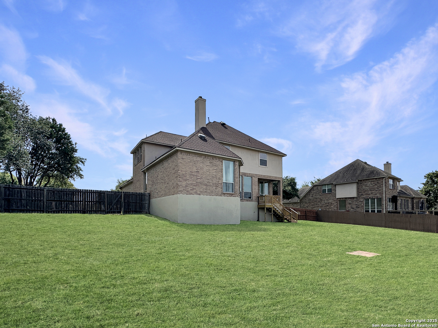 Welcome to 43 Gazelle Field in the gated enclave of Mesa Grande located in Stone Oak! This Highland-built home features nearly 3,100 SF, 4 bedrooms, 2.5 bathrooms, a spacious family room, a separate dining room, living room, a large kitchen that opens perfectly to the family room, a main floor primary bedroom w/ a double vanity, walk-in shower, soaking tub and large walk-in shower on a large .35 acre lot! The kitchen features granite countertops, a built-in stainless steel oven and microwave, a gas cooktop and a great breakfast nook that overlooks the views from the backyard. The second level offers three generous bedrooms, a full bathroom, as well as a private game room ideal for movies, crafting or a large office. The large lot offers ample space on both sides, as well as a huge backyard with more than enough room for a pool, sports court, etc. The lot is also slightly elevated, which offers long range views from the back of the home. The home also offers a newer heavy composition roof, a newer water softener, water heater and wood floors! The 3 car tandem garage is also a great feature, while the exterior is 4 sides masonry with an attractive combination of brick, stone and stucco. Mesa Grande is a great community within Stone Oak and features a large swimming pool, park and playground and is located within just a few minutes to excellent schools, shopping, dining and medical facilities. Priced well below the assessed value, come take a look at 43 Gazelle Field and put it on your short list!