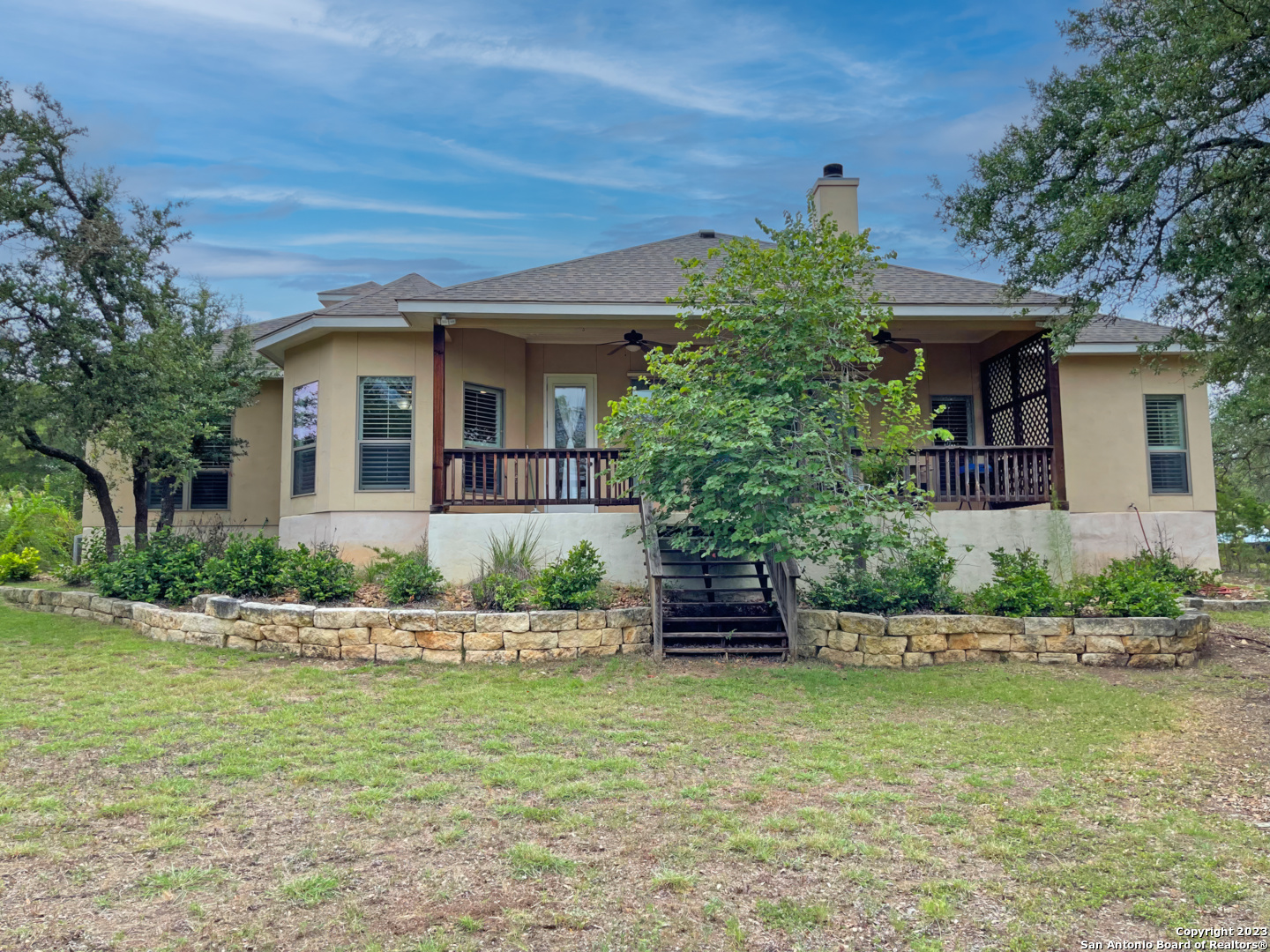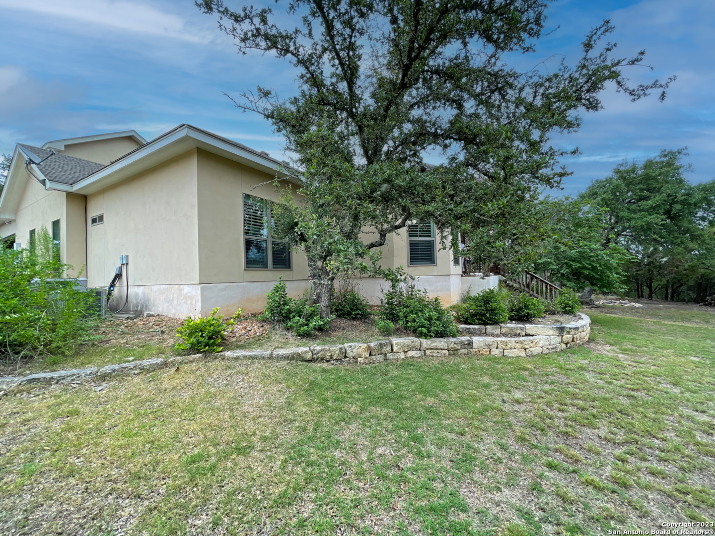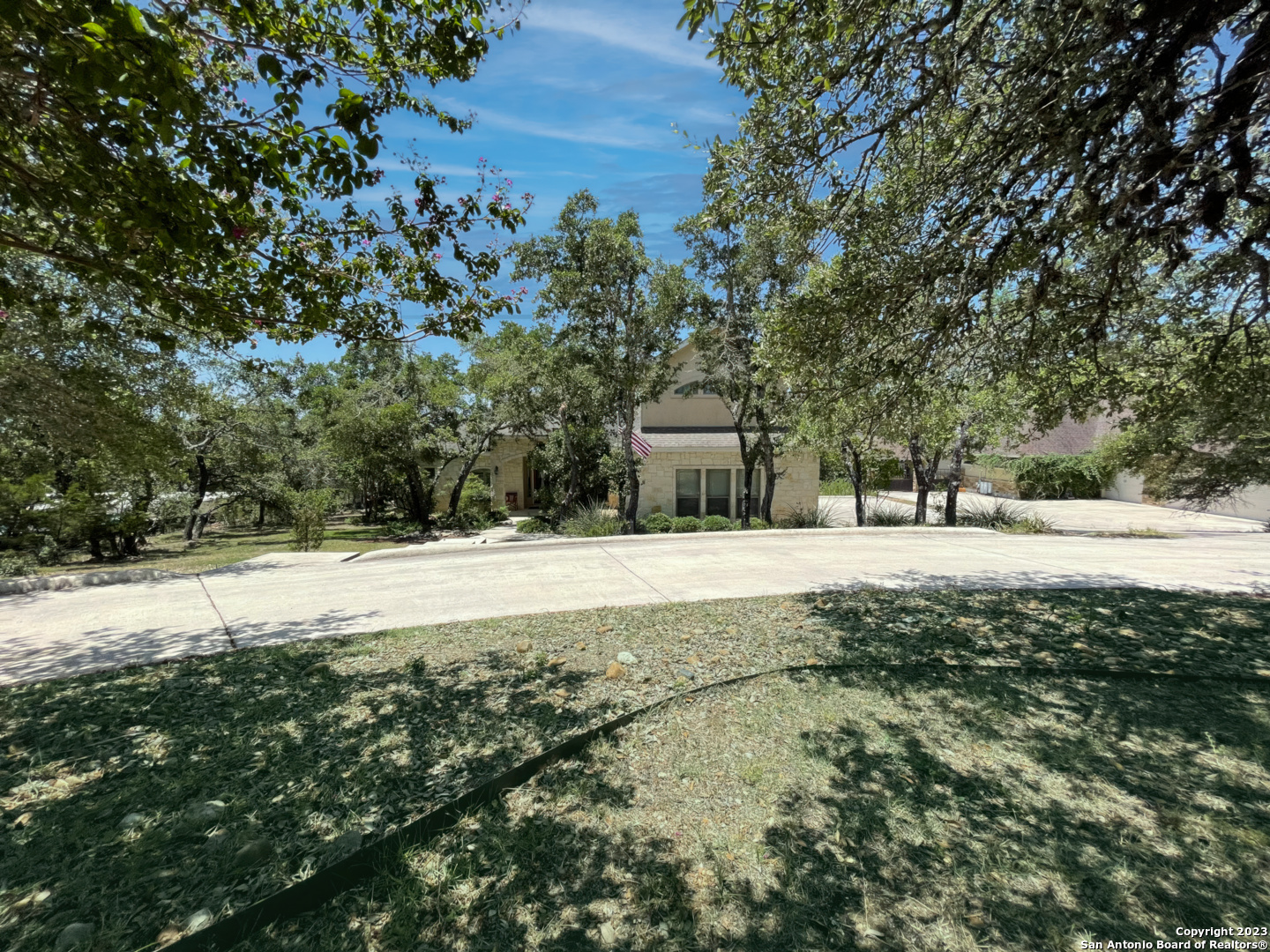 This is a beautiful Texas Hill Country home in the much sought-after 'River Crossing' neighborhood. The home comprises three bedrooms and 2.5 bathrooms. Located off the entry (with its barrel ceiling) is a study or second living with French doors. Opposite is the formal dining area with a circular coffered ceiling that highlights the beautiful chandelier. Arches are a highlight throughout, as well as plantation shutters on most of the windows. The large family room features a 13' ceiling and has a floor-to-ceiling stone fireplace with built-ins on both sides. Along the back of the home, a wall of tall windows looks over the rear of the property. The kitchen features granite countertops, an electric cooktop, stainless steel appliances, and a breakfast nook. One side of this home is all about the master suite. Master bathroom with granite countertop, walk-in shower, and whirlpool tub. Spacious master bedroom with his and hers closets. The other side of the home features two bedrooms with a 'Jack and Jill' bathroom. A half bathroom and the laundry room leading to the garage complete the first level. Upstairs is a spacious bonus room - ideal for entertaining or hobbies. The front features a circular driveway. A large covered porch runs across the back of the house. The backyard is 2-tiered-one flat level immediately behind the house, then down to a second flat level. The lot has many mature oak trees.