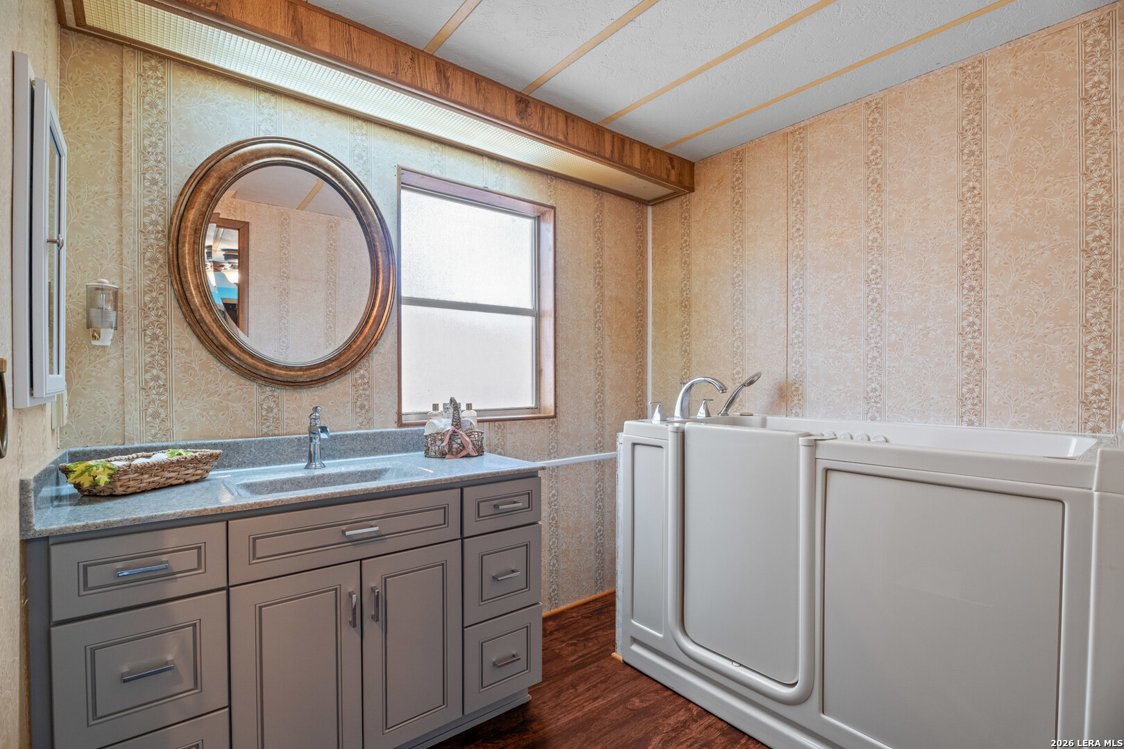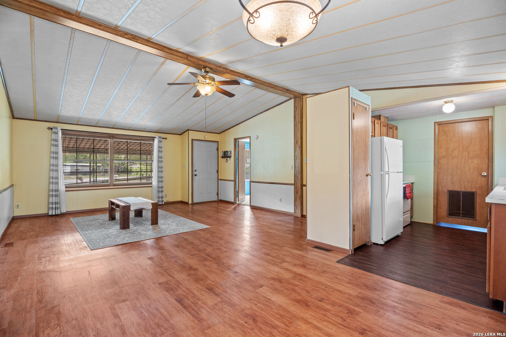 Charming Double-Wide Palm Harbor Home on Nearly Half an Acre Nestled in a quiet cul-de-sac, this double-wide Palm Harbor home sits on a spacious 0.47-acre lot, making it an ideal starter home or investment opportunity. Featuring two bedrooms and two bathrooms, this property offers comfort, privacy, and functionality. The large open living room flows seamlessly into the dining and breakfast area, creating an inviting space for everyday living and entertaining. From the breakfast area, large sliding glass doors lead to an expansive backyard, perfect for outdoor gatherings, gardening, or simply enjoying the open space. The kitchen is quaint yet highly functional, with an easy layout and plenty of cabinet space for storage. A walk-in utility room with built-in shelving adds extra convenience. Both bedrooms are generously sized and feature their own private bathrooms, providing added comfort and flexibility. With its peaceful setting, ample lot size, and thoughtful layout, this home is full of potential.