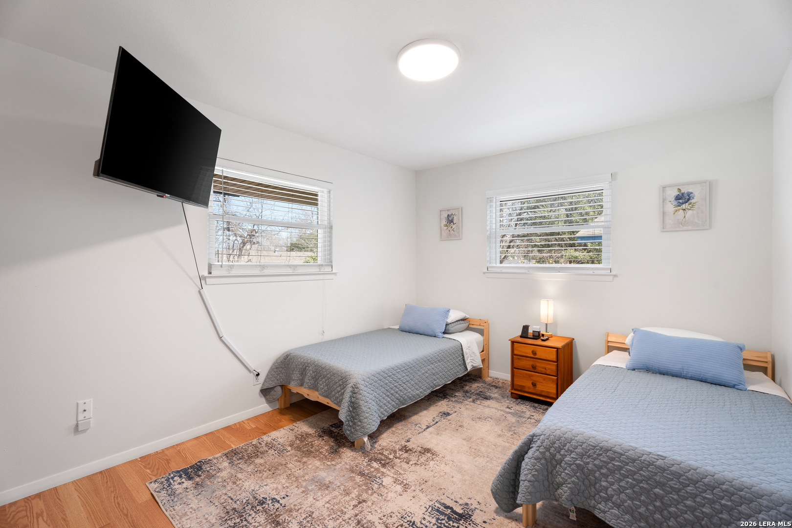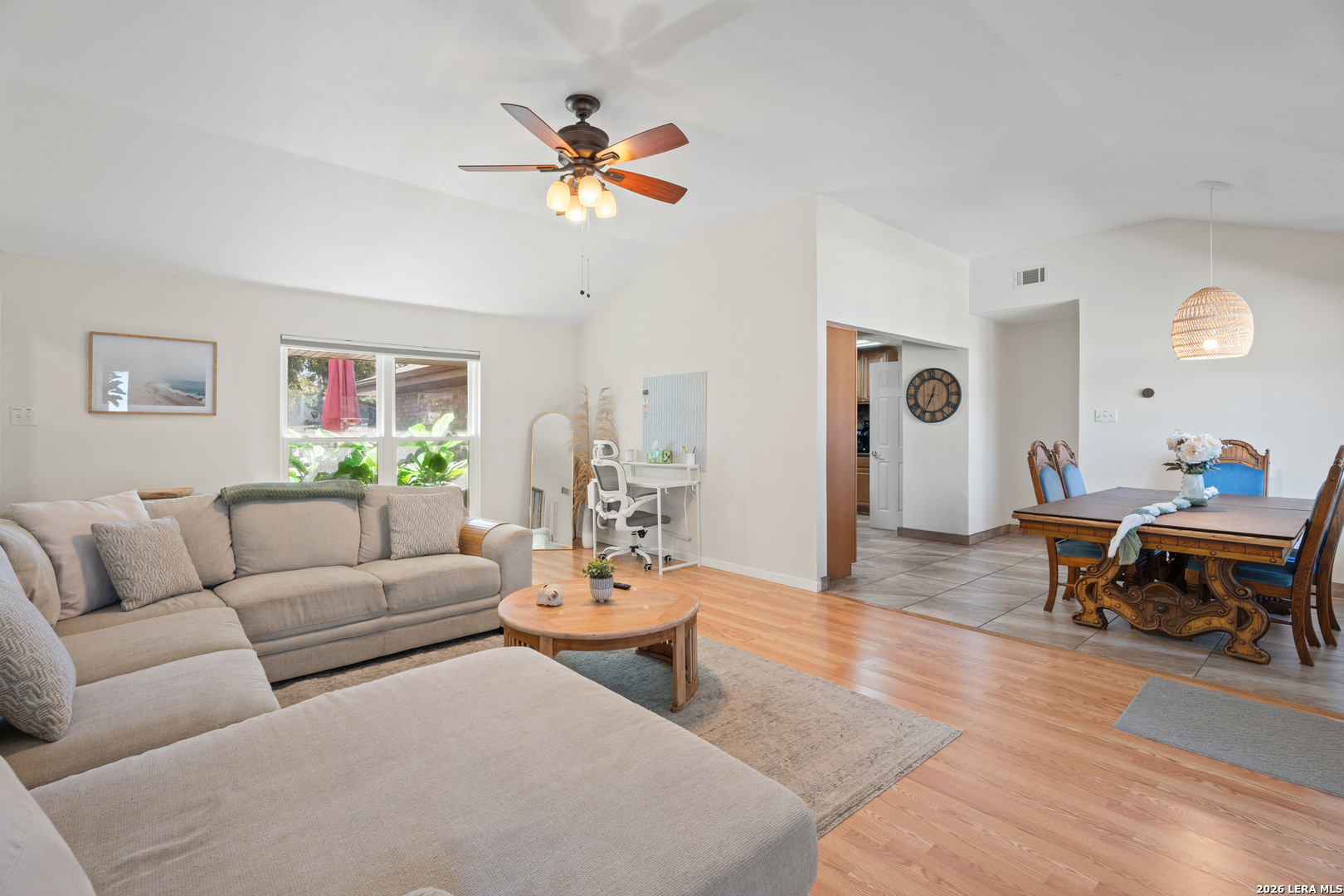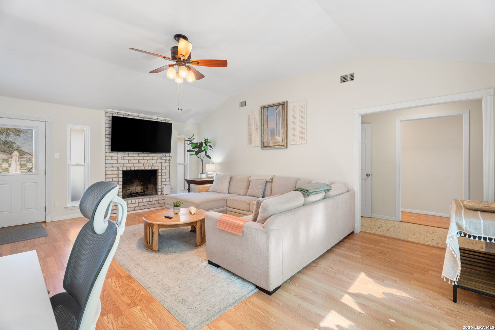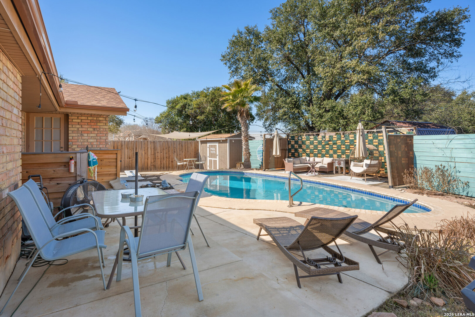 This charming 3-bedroom, 2-bathroom ranch-style home offers a perfect blend of comfort and style, featuring a sparkling pool with a brand new heater and abundant natural light in every room. The home is entirely carpet-free, with the living room boasting a cozy brick wood-burning fireplace. The spacious kitchen offers plenty of cabinet and countertop space, ideal for cooking and entertaining. Each room is generously sized and equipped with ceiling fans for added comfort. The backyard is a true oasis, with a covered patio, a refreshing pool, and ample green space for entertaining and relaxation.