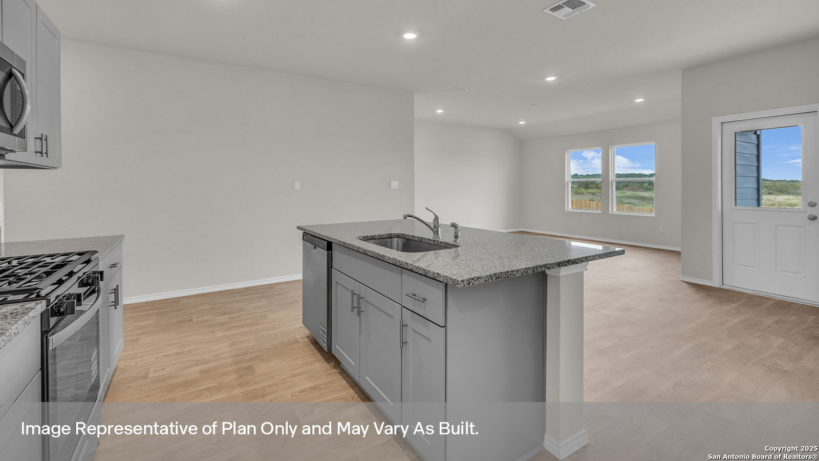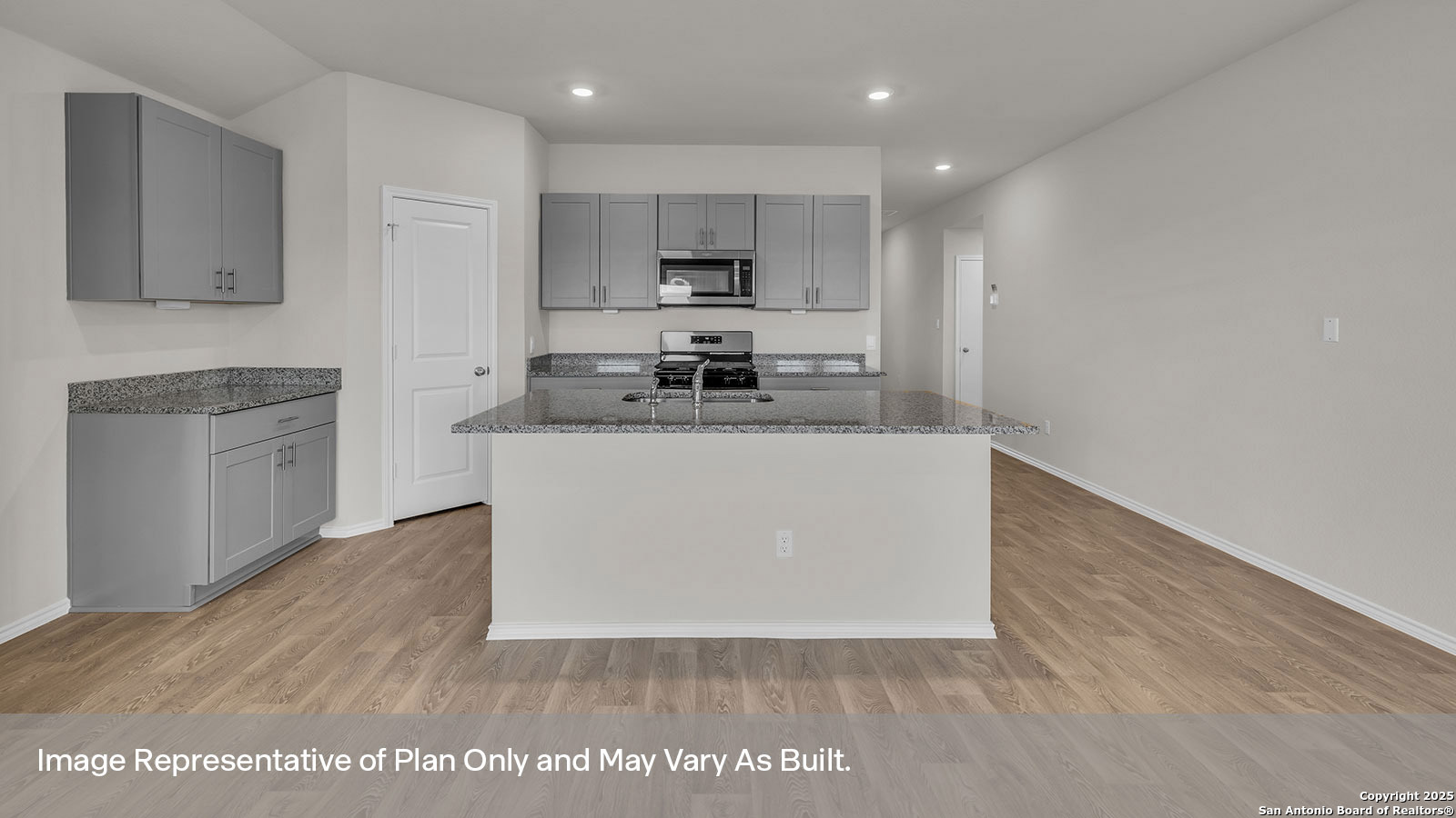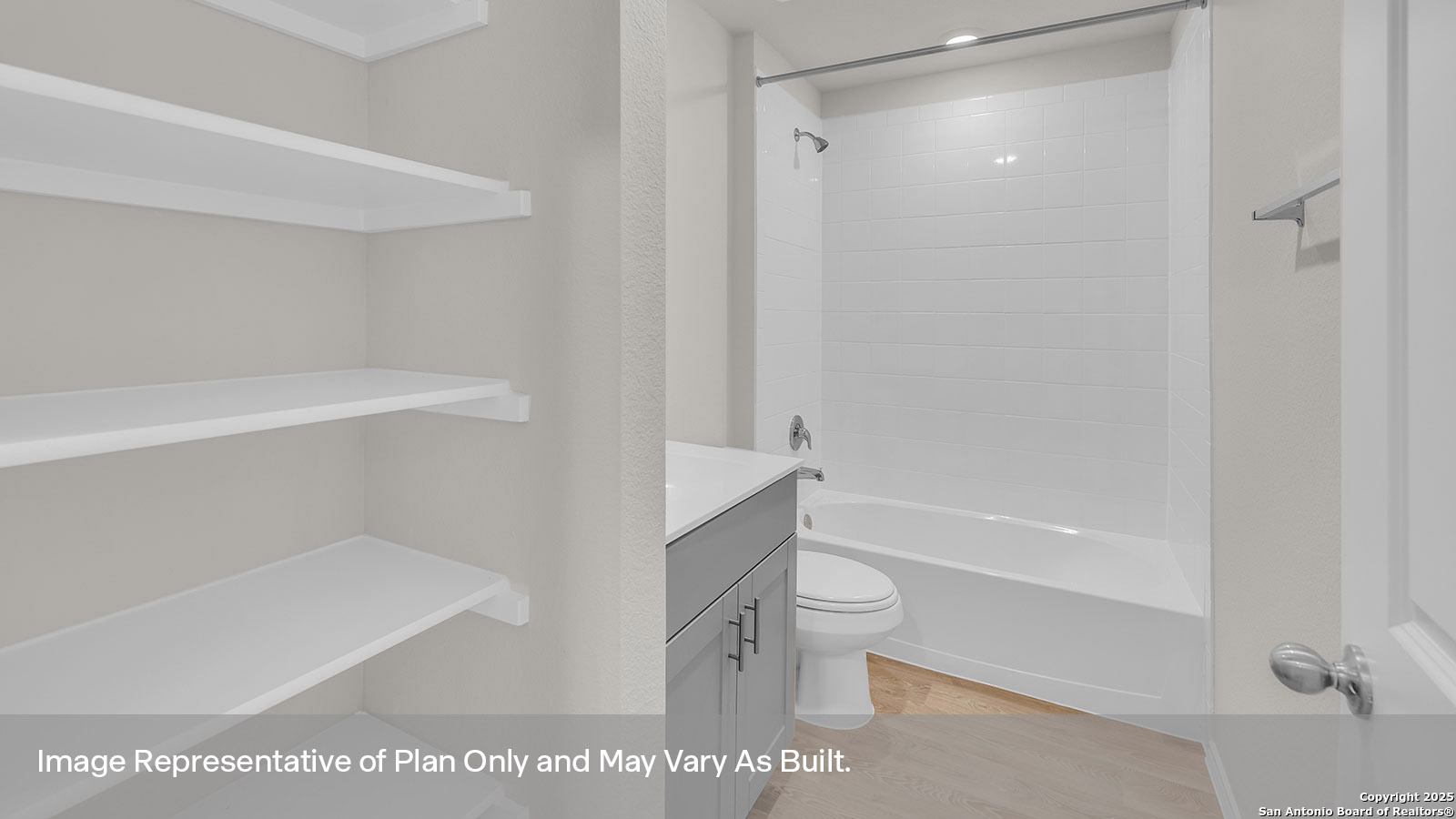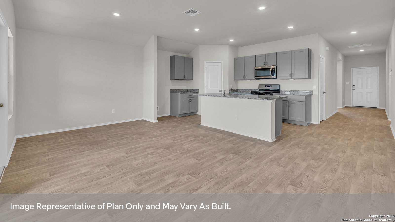 MOVE IN READY! The Irvine is one of our one-story floorplans offered at Bollinger in Maxwell, Texas. This 4-bedroom, 2-bathroom home includes a 2-car garage within its 1,796 square feet of comfortable living space. Our homes in Bollinger feature our modern farmhouse exteriors. Step into this home from the covered entryway and make your way down the hall to the main living space. The open kitchen looks out to your dining area and family room, allowing for conversations to easily flow from all spaces. The L-shaped kitchen features an island with undermount sink, granite countertops, 4" backsplash, a pantry closet, 36" upper cabinets, and stainless-steel appliances, including a gas range. Off the family room is the primary bedroom, with its own private bathroom. This relaxing bathroom space features a walk-in shower, cultured marble vanity with dual sinks, and separate door to the toilet for privacy. A walk-in closet with generous shelving is connected to the bathroom. At the front of the house, you will find bedroom 2 and 3, with the secondary bathroom conveniently located between the rooms. Bathroom 2 includes a shower/tub combination and open shelving for extra storage or decor. Across the foyer and down a short hall is the utility room and bedroom 4. Whether you use these rooms as an office, child's room or guest room, there is plenty of space for work, sleep and play. The Irvine includes vinyl flooring throughout the common areas of the home, and carpet in the bedrooms. A covered back patio is also included in the Irvine plan. All our new homes feature Bermuda sod, an irrigation system in the front and back yard, and a 6' privacy fence around the back yard. This home comes with our America's Smart Home base package, which includes Front Door Bell Deadbolt Lock, Home Hub, Thermostat, and Deako Smart Switches.