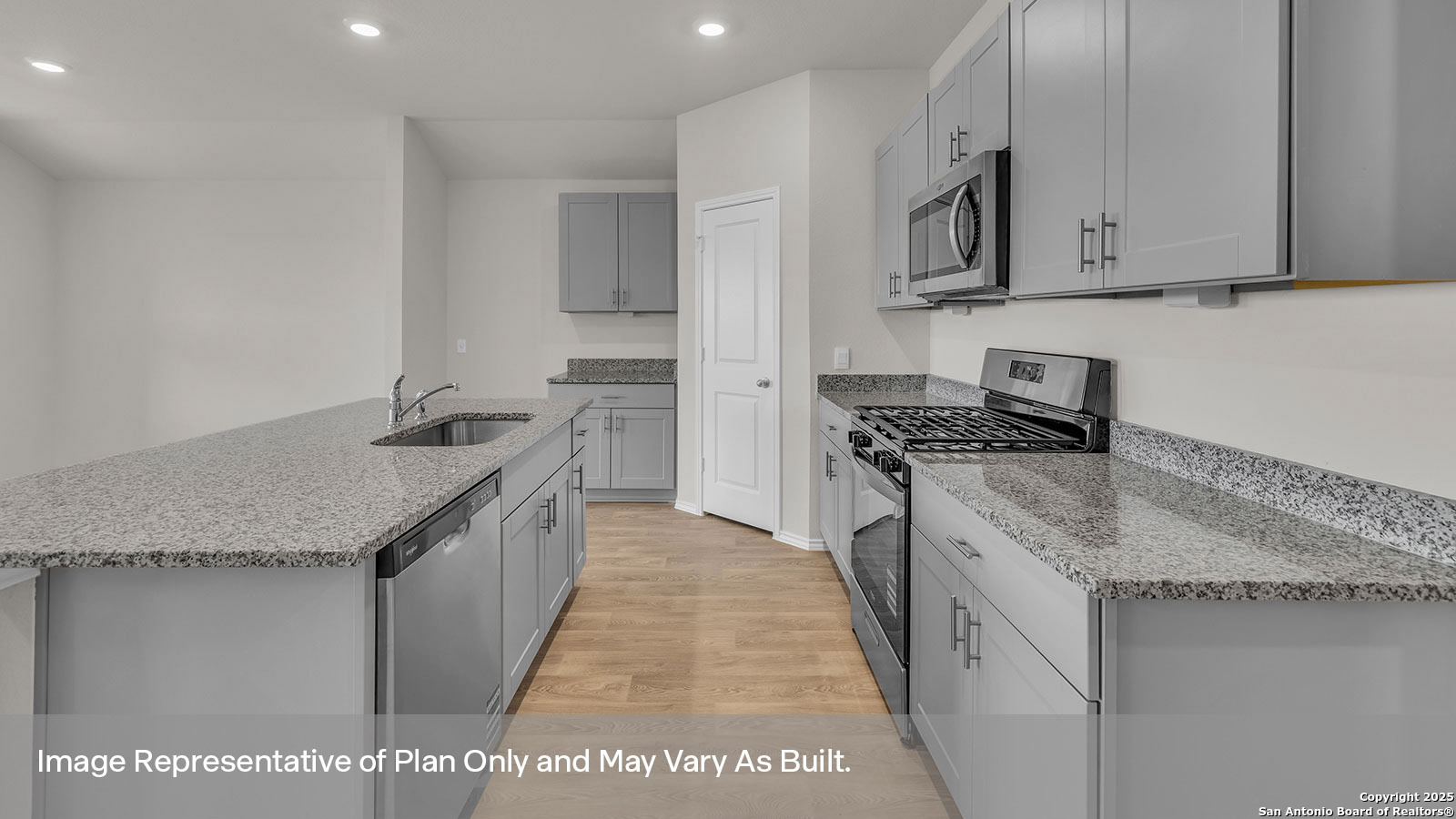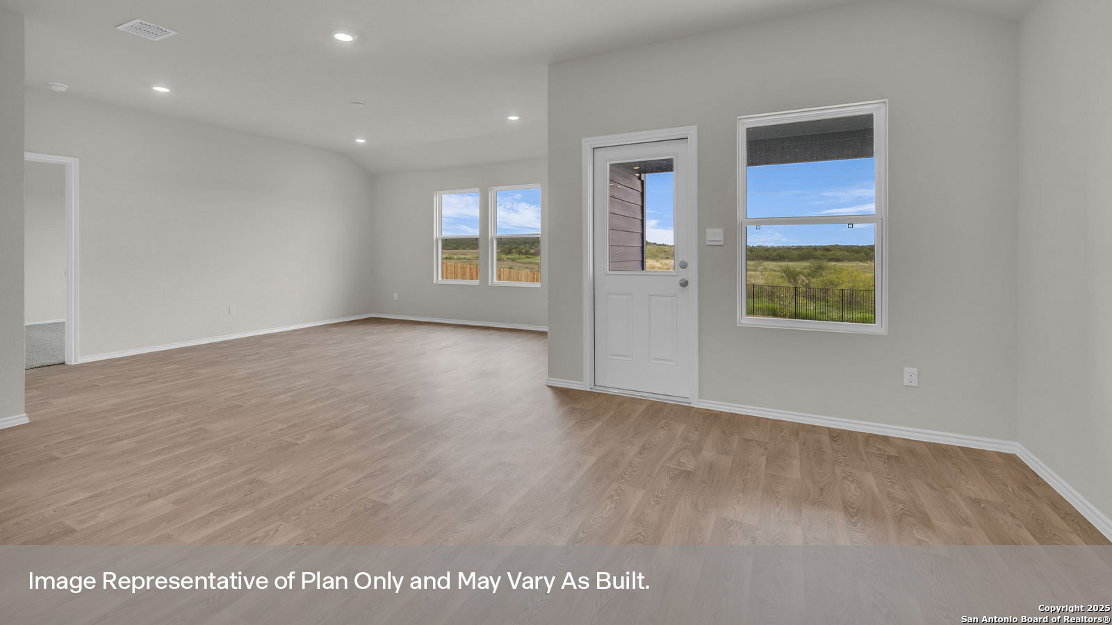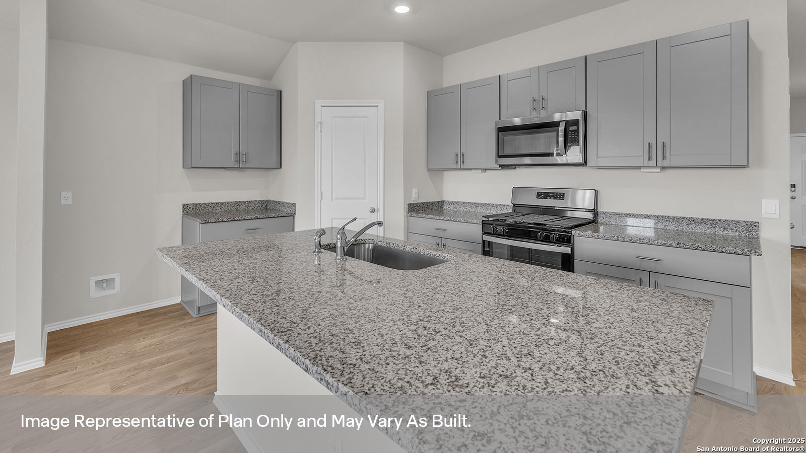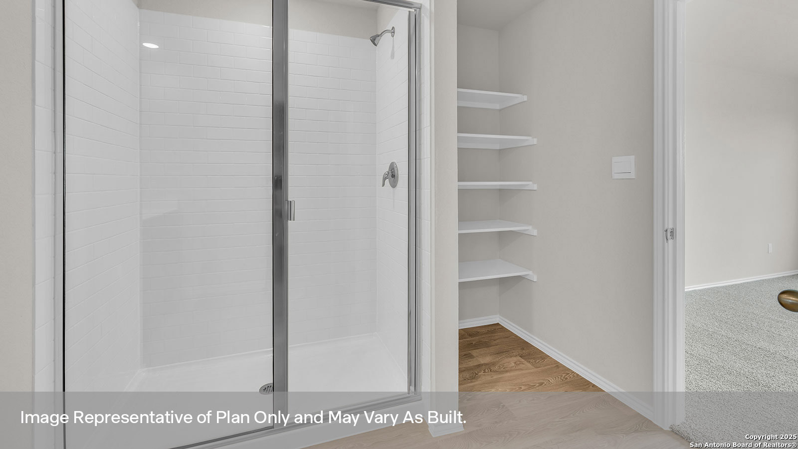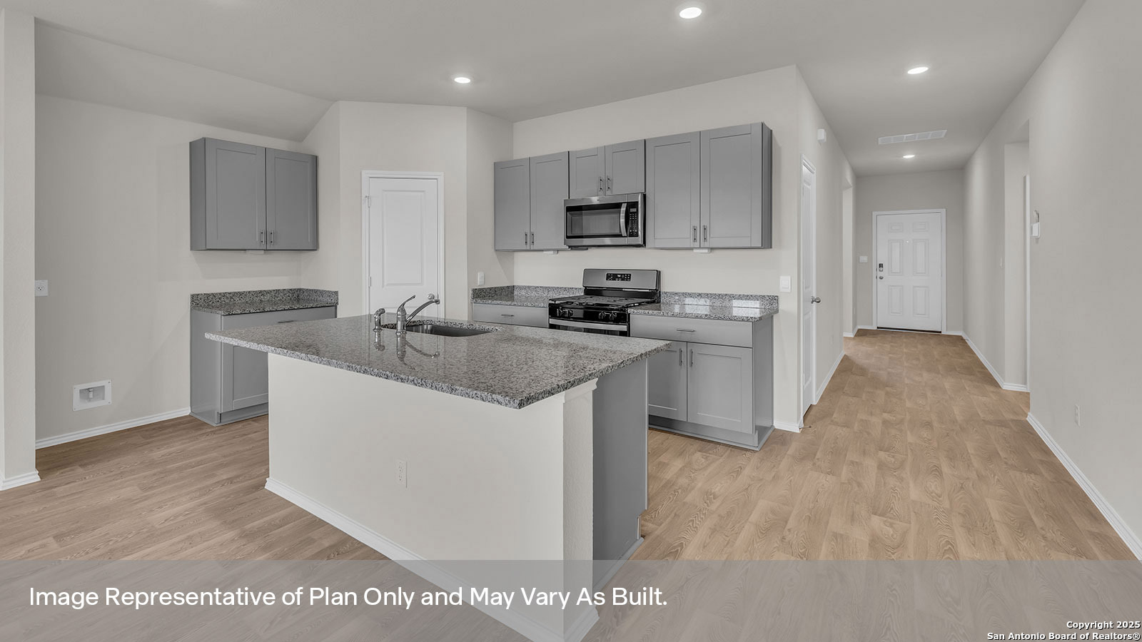 MOVE IN READY! The Irvine is one of our one-story floorplans offered at Bollinger in Maxwell, Texas. This 4-bedroom, 2-bathroom home includes a 2-car garage within its 1,796 square feet of comfortable living space. Our homes in Bollinger feature our modern farmhouse exteriors. Step into this home from the covered entryway and make your way down the hall to the main living space. The open kitchen looks out to your dining area and family room, allowing for conversations to easily flow from all spaces. The L-shaped kitchen features an island with undermount sink, granite countertops, 4" backsplash, a pantry closet, 36" upper cabinets, and stainless-steel appliances, including a gas range. Off the family room is the primary bedroom, with its own private bathroom. This relaxing bathroom space features a walk-in shower, cultured marble vanity with dual sinks, and separate door to the toilet for privacy. A walk-in closet with generous shelving is connected to the bathroom. At the front of the house, you will find bedroom 2 and 3, with the secondary bathroom conveniently located between the rooms. Bathroom 2 includes a shower/tub combination and open shelving for extra storage or decor. Across the foyer and down a short hall is the utility room and bedroom 4. Whether you use these rooms as an office, child's room or guest room, there is plenty of space for work, sleep and play. The Irvine includes vinyl flooring throughout the common areas of the home, and carpet in the bedrooms. A covered back patio is also included in the Irvine plan. All our new homes feature Bermuda sod, an irrigation system in the front and back yard, and a 6' privacy fence around the back yard. This home comes with our America's Smart Home base package, which includes Front Door Bell Deadbolt Lock, Home Hub, Thermostat, and Deako Smart Switches.