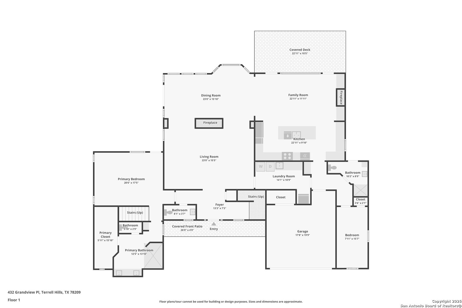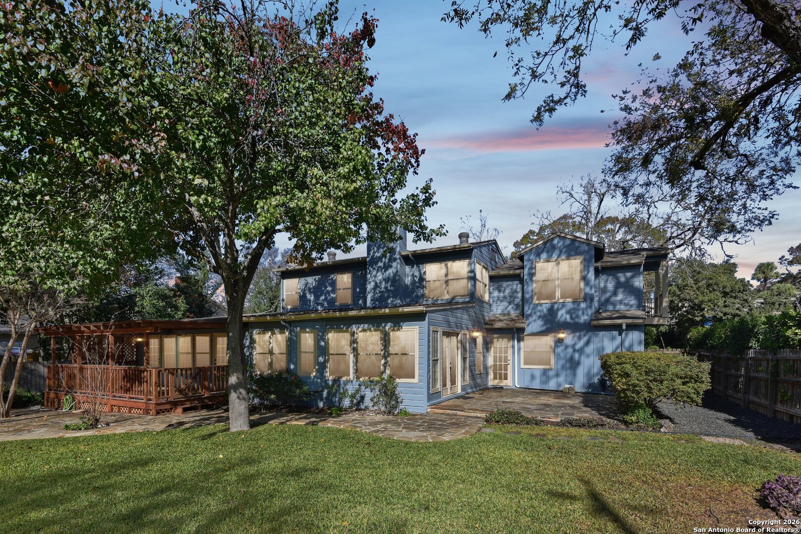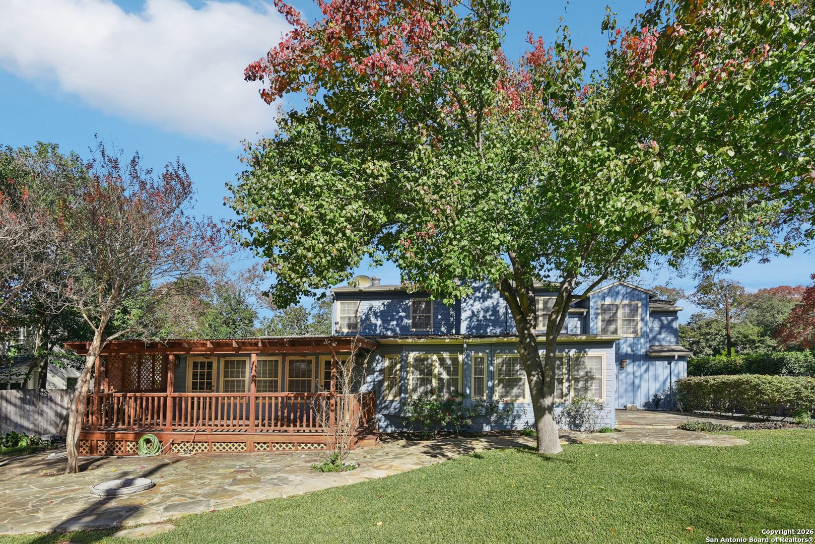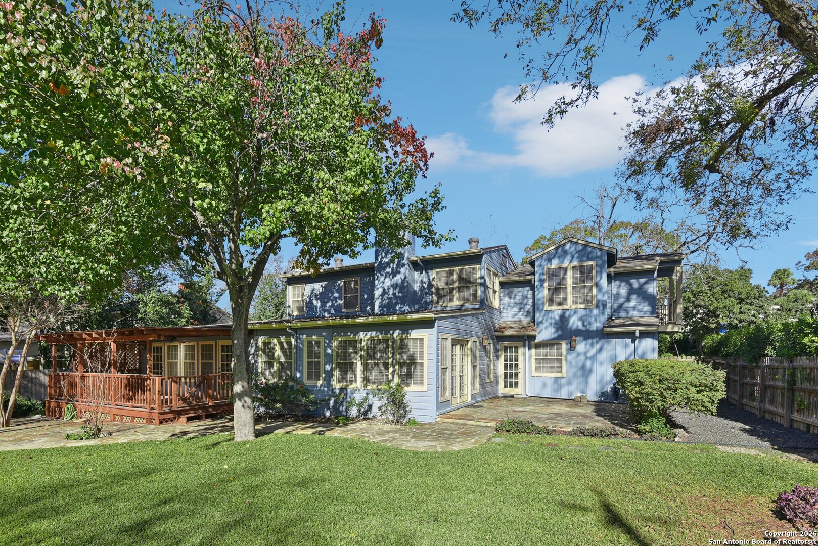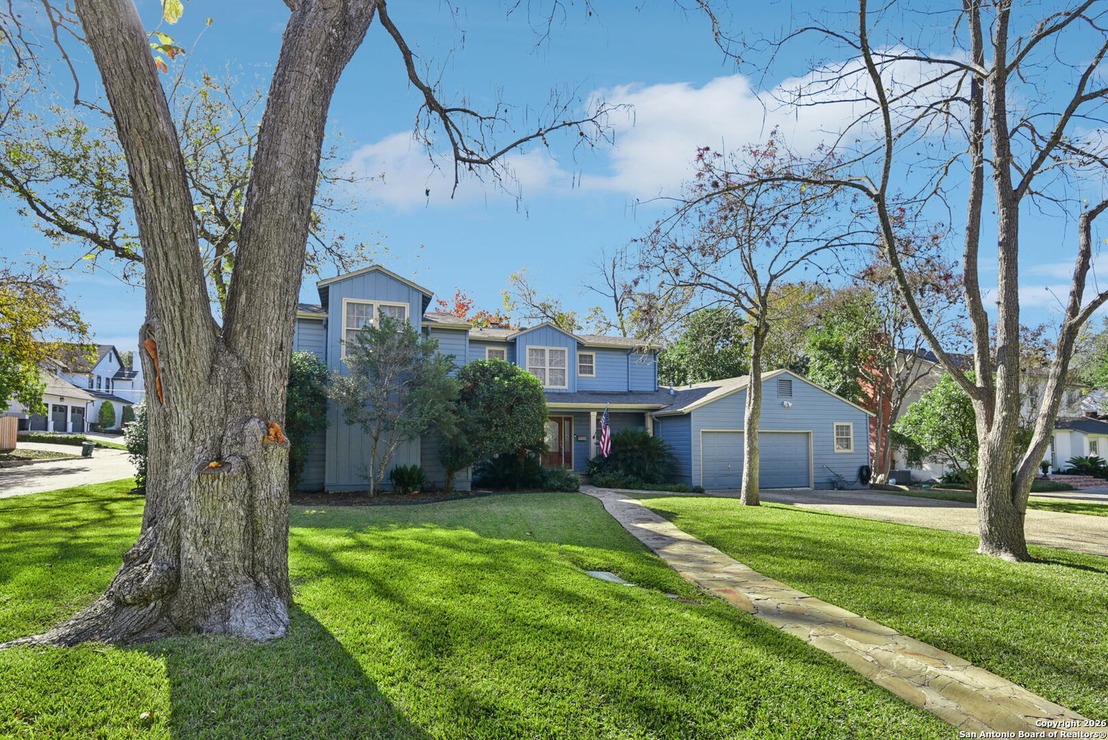 Welcome home to this AMAZING corner lot home with unlimited potential. Nestled in Terrell Hills and zoned in the sought-after Alamo Heights School District, this beautifully appointed 4-bedroom, 3.5-bath home offers timeless style, exceptional function, and room to grow. Situated on a spacious .28-acre corner lot with mature trees and plenty of room for a custom swimming pool, this 3,333 sq ft home is designed for both refined living and everyday comfort. The chef's kitchen features high-end appliances, including a gas cooktop, double ovens, warming drawers, and a Sub-Zero refrigerator. Perfect for culinary enthusiasts and entertainers alike. The primary suite is a true retreat, boasting a private staircase leading to an upstairs library/office and media area, complete with a private balcony making it deal for morning coffee or evening reading. Thoughtful floorplan includes two bedrooms upstairs with a shared full bath, and two bedrooms downstairs, including the primary suite. One of the full baths on the main level offers direct access to the covered patio, making it perfect for future poolside entertaining. Warm up in either of the two spacious living areas, each with its own fireplace-one gas and one electric-providing options for ambiance and comfort. Enjoy outdoor living with two patios: one covered for year-round use, and another open to the sky. A full two-car garage offers convenience and storage (also a large shed in the back), completing this exceptional property. A rare opportunity to own a refined, flexible home in one of San Antonio's most desirable neighborhoods.