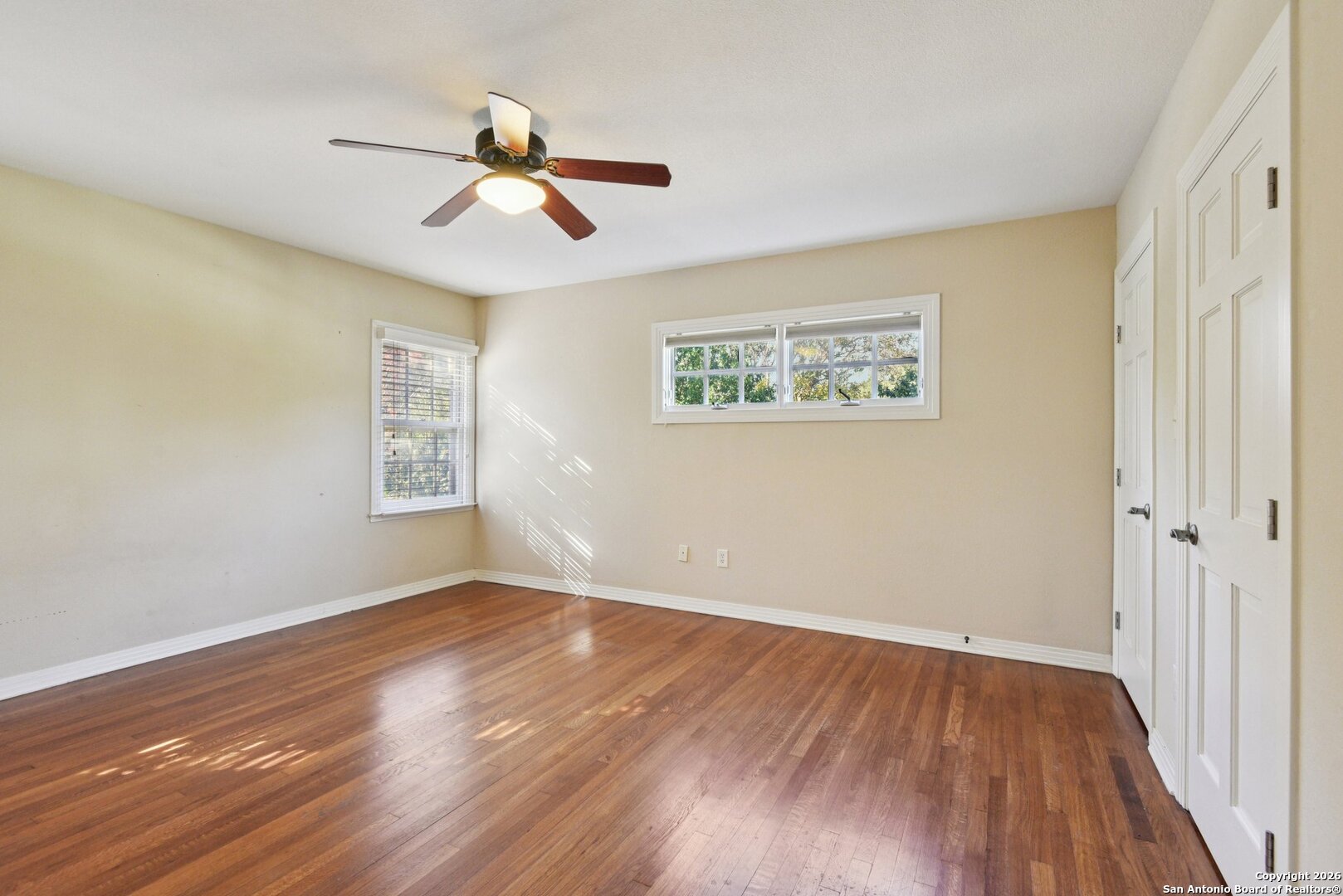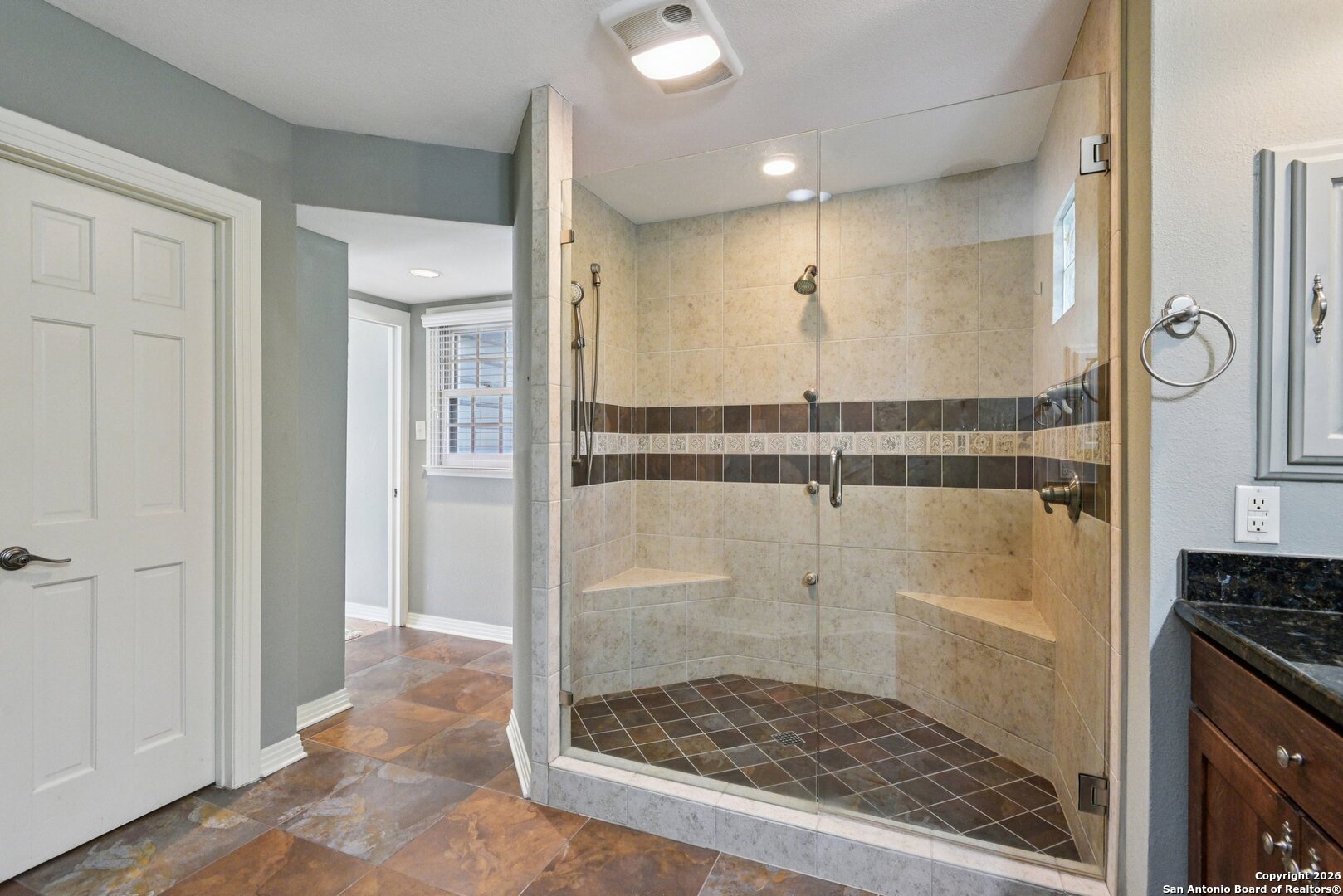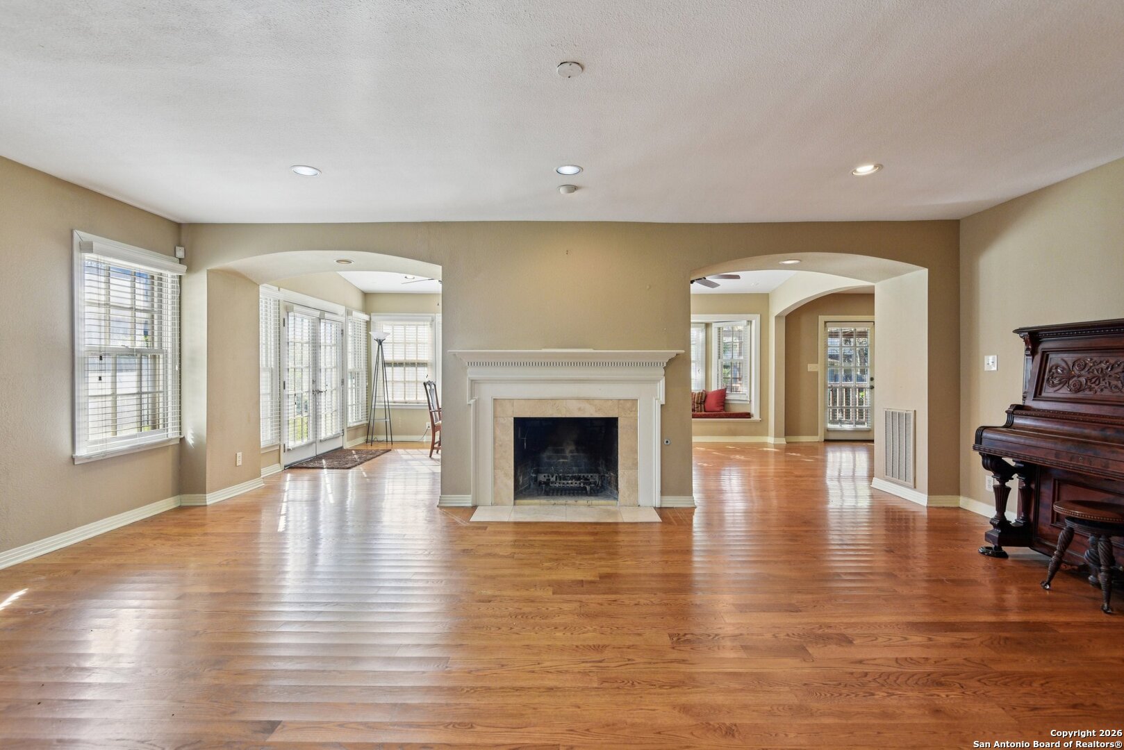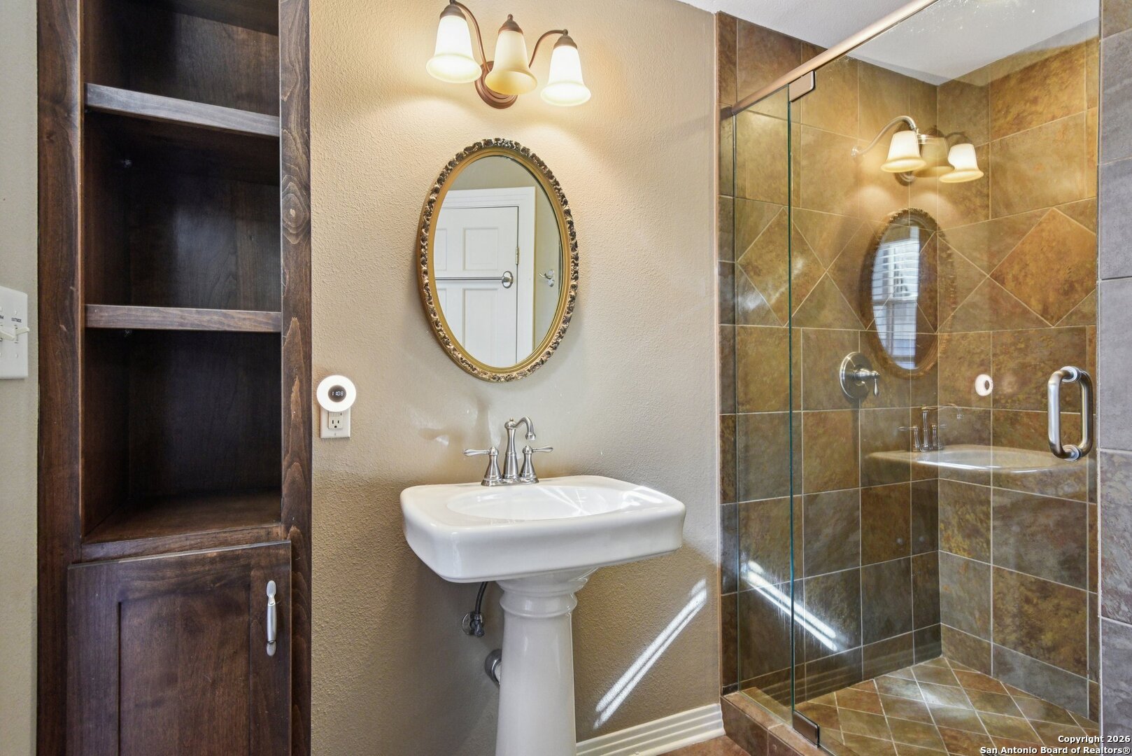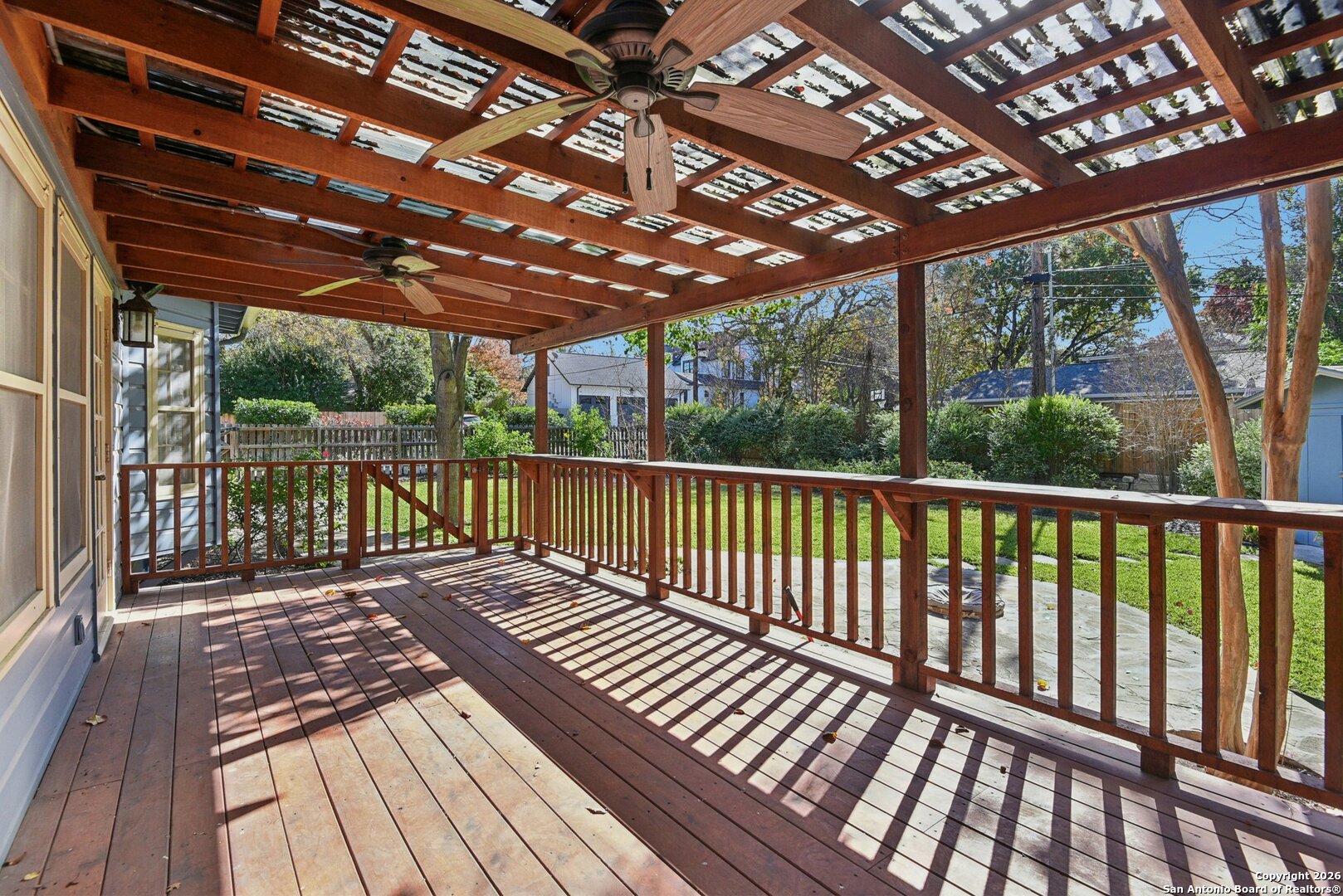 Welcome home to this AMAZING corner lot home with unlimited potential. Nestled in Terrell Hills and zoned in the sought-after Alamo Heights School District, this beautifully appointed 4-bedroom, 3.5-bath home offers timeless style, exceptional function, and room to grow. Situated on a spacious .28-acre corner lot with mature trees and plenty of room for a custom swimming pool, this 3,333 sq ft home is designed for both refined living and everyday comfort. The chef's kitchen features high-end appliances, including a gas cooktop, double ovens, warming drawers, and a Sub-Zero refrigerator. Perfect for culinary enthusiasts and entertainers alike. The primary suite is a true retreat, boasting a private staircase leading to an upstairs library/office and media area, complete with a private balcony making it deal for morning coffee or evening reading. Thoughtful floorplan includes two bedrooms upstairs with a shared full bath, and two bedrooms downstairs, including the primary suite. One of the full baths on the main level offers direct access to the covered patio, making it perfect for future poolside entertaining. Warm up in either of the two spacious living areas, each with its own fireplace-one gas and one electric-providing options for ambiance and comfort. Enjoy outdoor living with two patios: one covered for year-round use, and another open to the sky. A full two-car garage offers convenience and storage (also a large shed in the back), completing this exceptional property. A rare opportunity to own a refined, flexible home in one of San Antonio's most desirable neighborhoods.