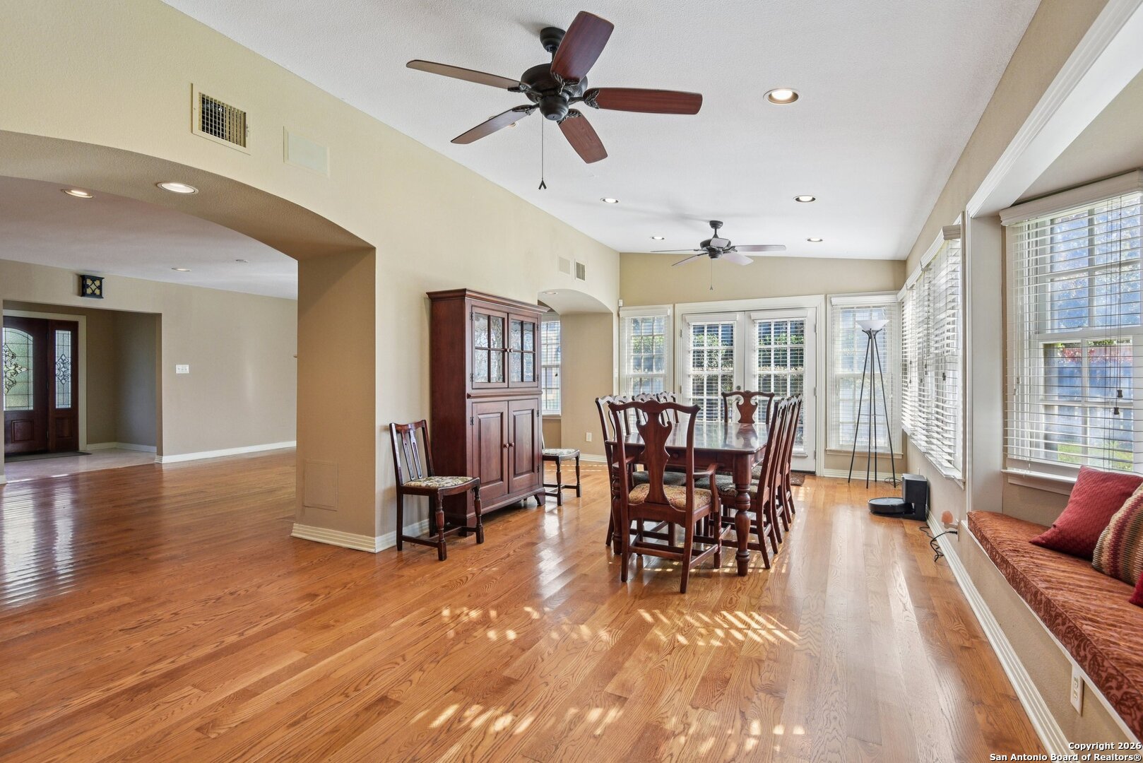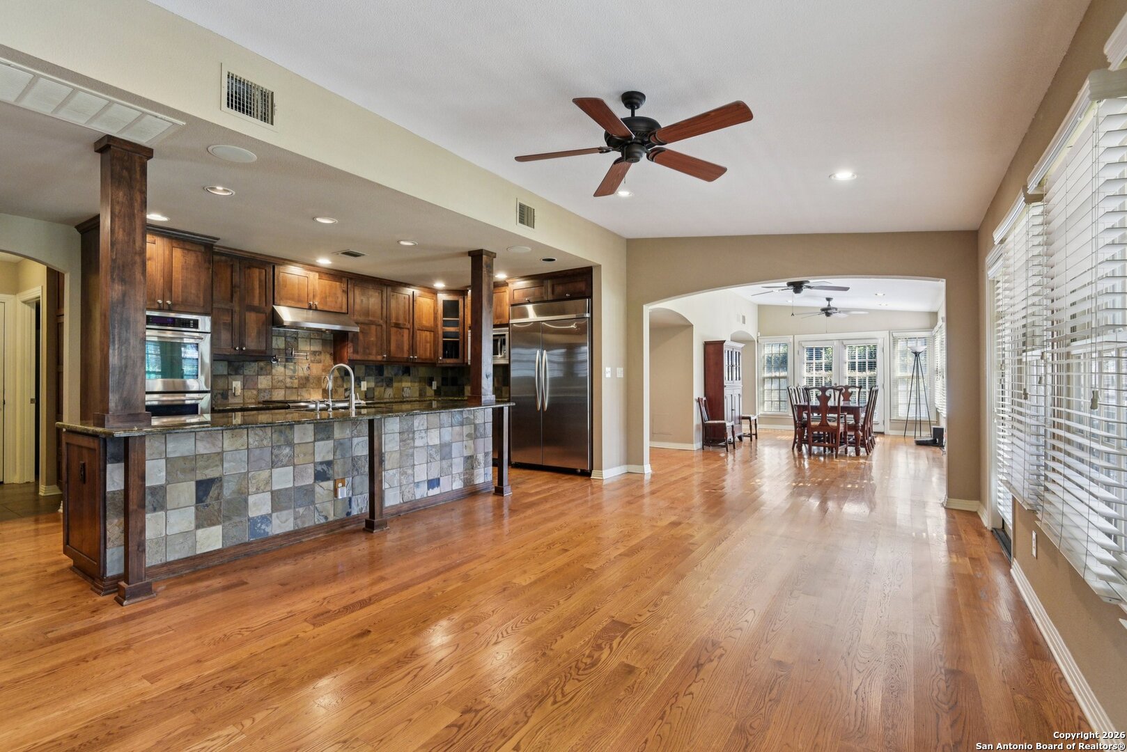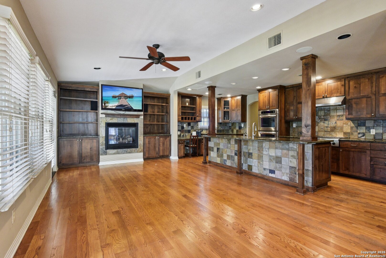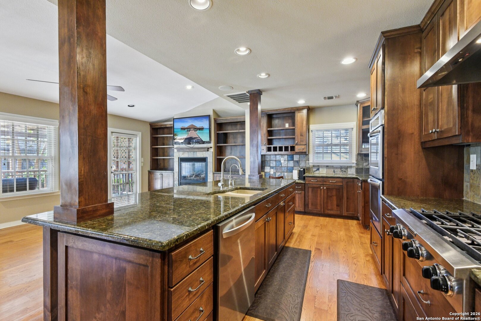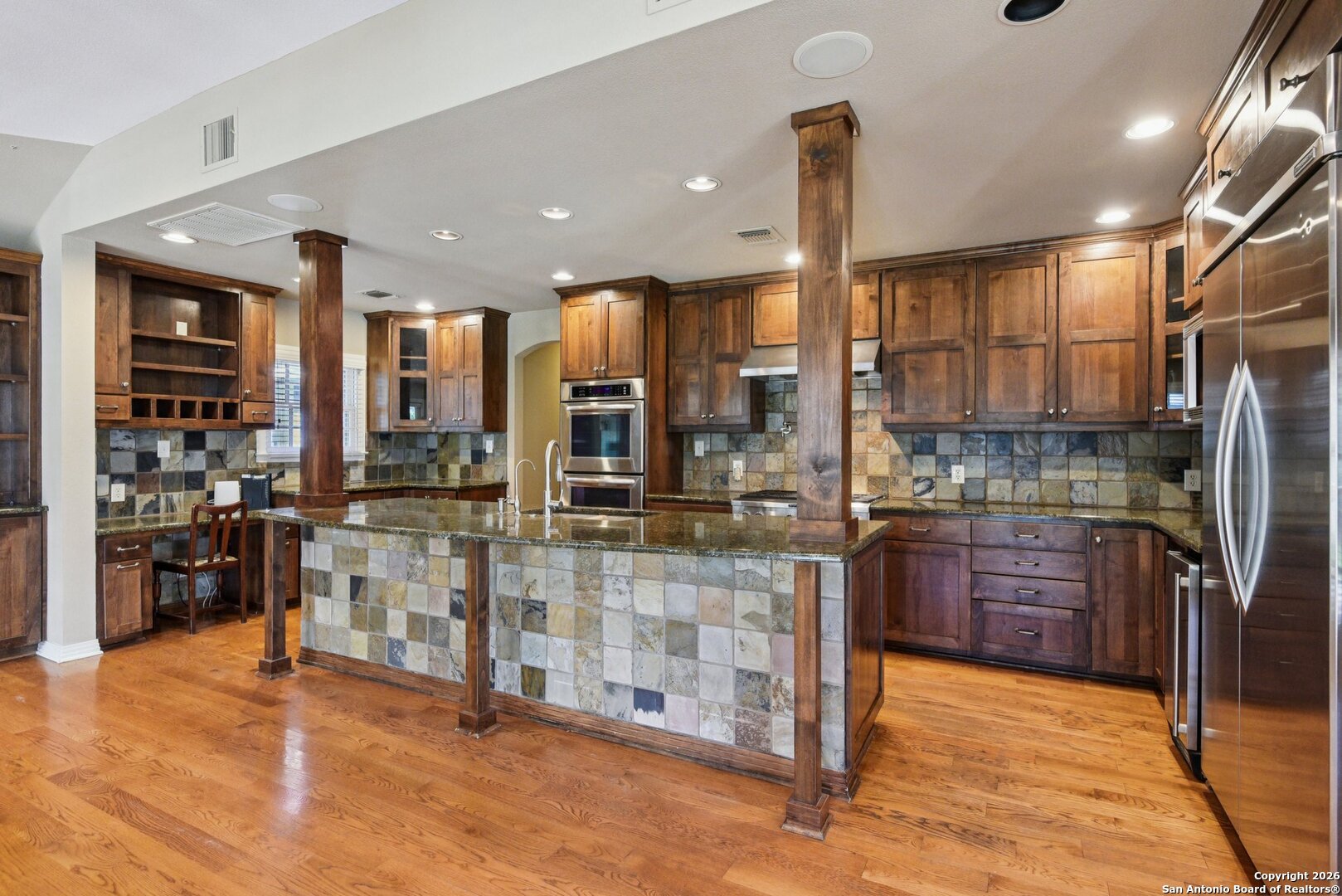 Welcome home to this AMAZING corner lot home with unlimited potential. Nestled in Terrell Hills and zoned in the sought-after Alamo Heights School District, this beautifully appointed 4-bedroom, 3.5-bath home offers timeless style, exceptional function, and room to grow. Situated on a spacious .28-acre corner lot with mature trees and plenty of room for a custom swimming pool, this 3,333 sq ft home is designed for both refined living and everyday comfort. The chef's kitchen features high-end appliances, including a gas cooktop, double ovens, warming drawers, and a Sub-Zero refrigerator. Perfect for culinary enthusiasts and entertainers alike. The primary suite is a true retreat, boasting a private staircase leading to an upstairs library/office and media area, complete with a private balcony making it deal for morning coffee or evening reading. Thoughtful floorplan includes two bedrooms upstairs with a shared full bath, and two bedrooms downstairs, including the primary suite. One of the full baths on the main level offers direct access to the covered patio, making it perfect for future poolside entertaining. Warm up in either of the two spacious living areas, each with its own fireplace-one gas and one electric-providing options for ambiance and comfort. Enjoy outdoor living with two patios: one covered for year-round use, and another open to the sky. A full two-car garage offers convenience and storage (also a large shed in the back), completing this exceptional property. A rare opportunity to own a refined, flexible home in one of San Antonio's most desirable neighborhoods.