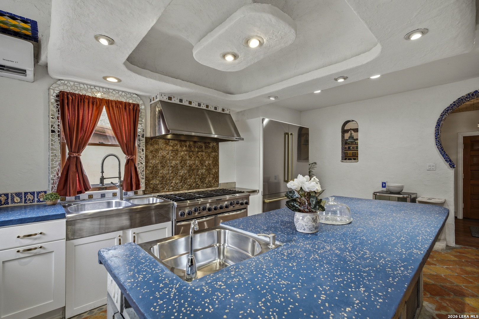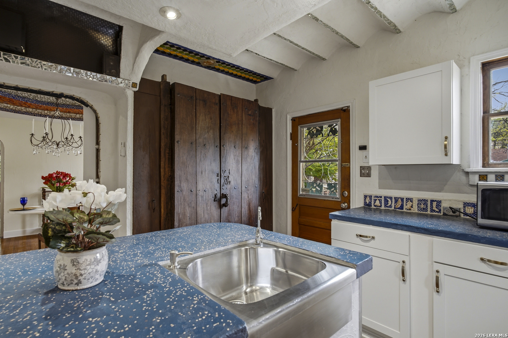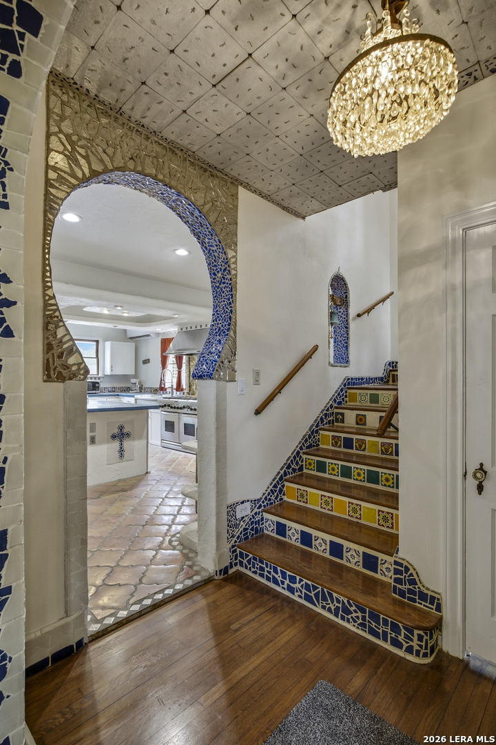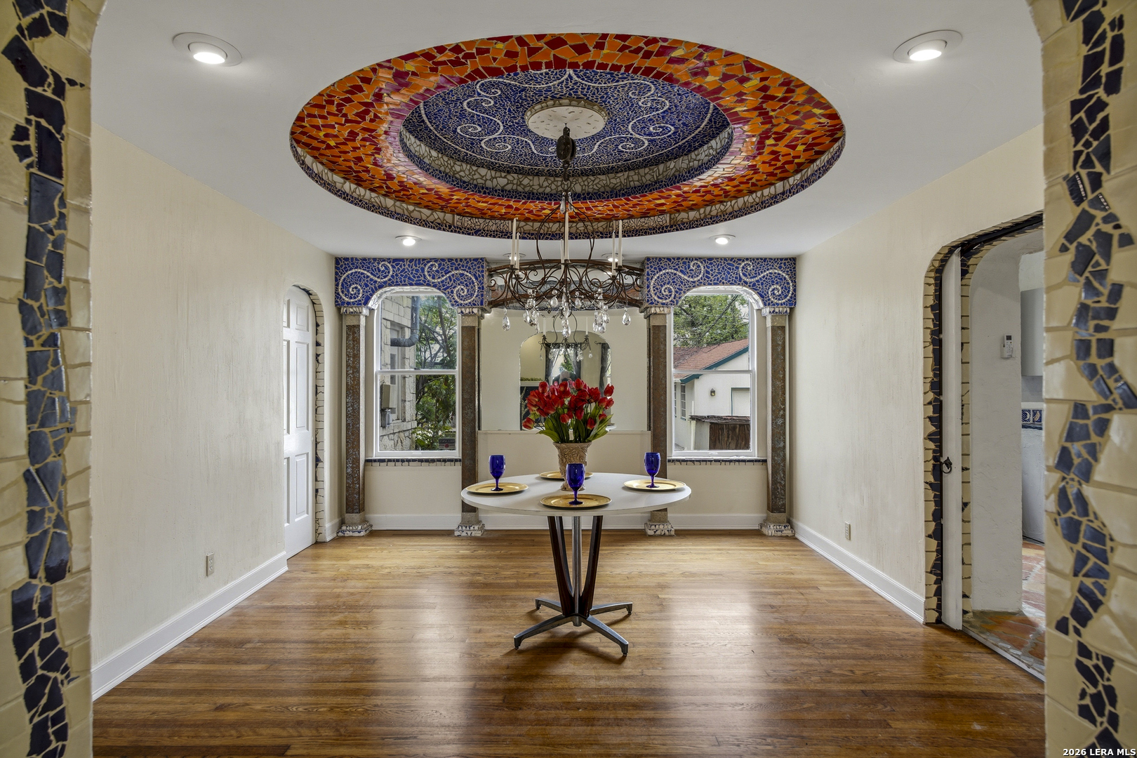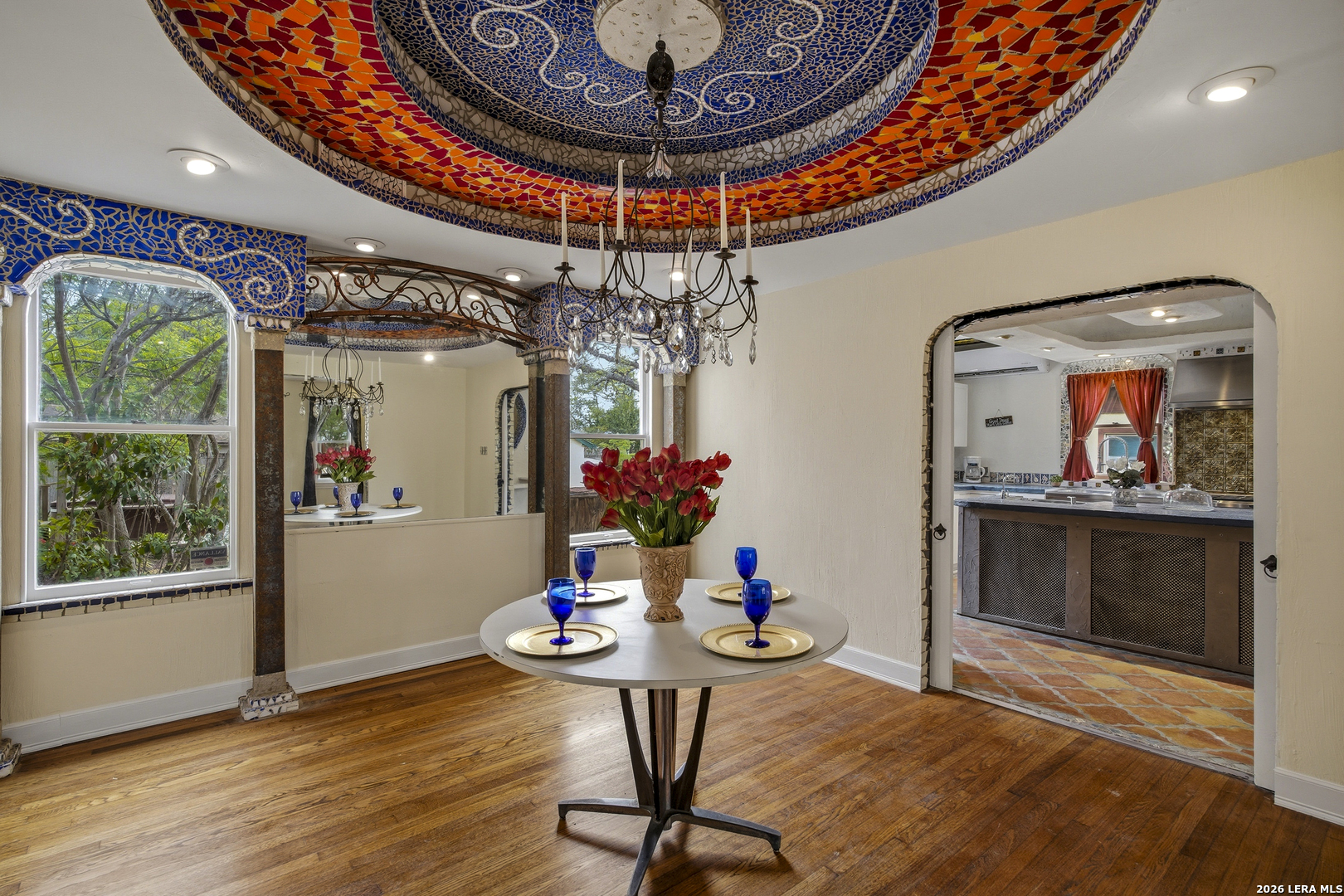 Located in The Monticello Park Historic District built in 1938 by Leo S Karren, HC Thormann and CM Furr, is an enchanting home that combines Spanish style and Tudor with a Modern Art Deco touch. This home invites the creative mind from the classic Chandeliers, the distinct ceilings, the original wood floors, the expansive entertainment room with its unique large wet bar to the top hat etched in the Terrazzo floor as you enter the room, and the formal dining room with its one-of-a-kind ceramic tile ceiling design. The kitchen stove has 8 gas burners, dual oven, 2 sinks, lots of counter space, 200 yr old pantry doors, and a huge luxury refrigerator. Each room has its captivating charm. The room attached to the garage has the potential of becoming a guest house. It has its own style with a vaulted ceiling, a mini full bathroom with vividtiles plus, a stand alone sauna and more. There is much, much more to this beautiful spacious home. The best way to see the details is by clicking the video tour and the 3D tour. Enjoy. All Offers will be considered.