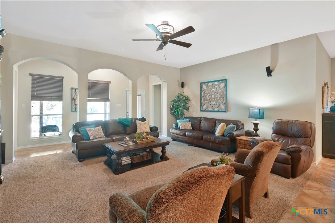 Welcome to 435 Timber Hollow, a beautifully maintained Perry-built home offering 3,265 square feet of comfortable, single-story living on a private 0.55-acre cul-de-sac lot in the desirable Oak Run community. This spacious four-bedroom, three-bath residence sits on a quiet, tree-lined street and backs to a peaceful greenbelt, providing exceptional privacy and a serene setting. Inside, the home features an open layout with multiple living and dining areas, including a large family room, formal dining room and eat in kitchen. The generously sized kitchen offers granite countertops, a smooth cooktop, ample cabinetry, and convenient access to the main living spaces. The primary suite includes a generous size bedroom, walk-in closet, and a large en-suite bath with double vanities and a walk-in shower. Secondary bedrooms are impressively sized—two measuring 25 by 13—offering flexibility for guests, office space, or hobbies. The exterior is equally appealing with a covered patio, and a large backyard that backs up to a greenbelt. Located in the established Oak Run subdivision, the home includes access to community amenities through a low annual HOA fee. Students attend highly rated New Braunfels schools, including Veramendi Elementary, Oak Run Middle School, and New Braunfels High School. This home is walking distance to Oak Run Middle school and a bike ride away to Veramendi Elementary. Located 5 minutes from HEB and several dining options. Combining space, privacy, and a prime New Braunfels location, this home offers the ideal blend of comfort and convenience for everyday living.