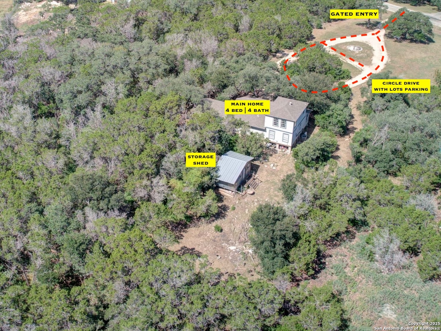 Welcome to The Summit...a hilltop neighborhood (NO HOA) just off scenic River Road that runs parallel to the Guadalupe. This home sits off the road on 1.62 acres where native landscaping and trees have been preserved for added seclusion. Features include 4bed/4bath (1bed/1bath is a studio with kitchenette and separate entrance), eat-in kitchen open to family room, no carpet, window coverings, circle driveway with plenty of parking, storage shed, gated entry with ranch fencing, covered front porch and lots of privacy. This community is located between San Antonio and Austin and close to popular attractions like Canyon Lake, Horseshoe on the Guadalupe, White Water Amphitheatre, FIMFO Historic Gruene, Schlitterbahn and much more. Zoned to Comal ISD with No City Taxes. Here you will find yourself within a stone's throw of everything that makes the hill country great.