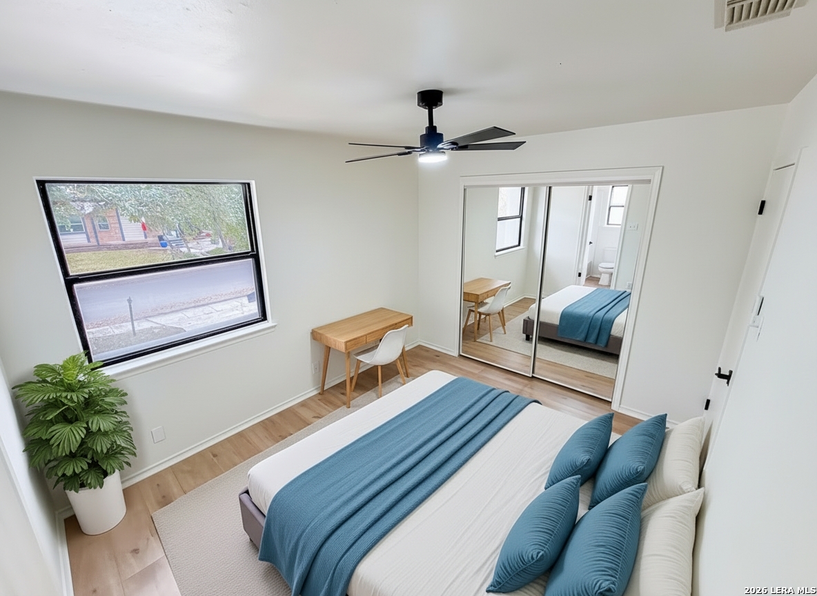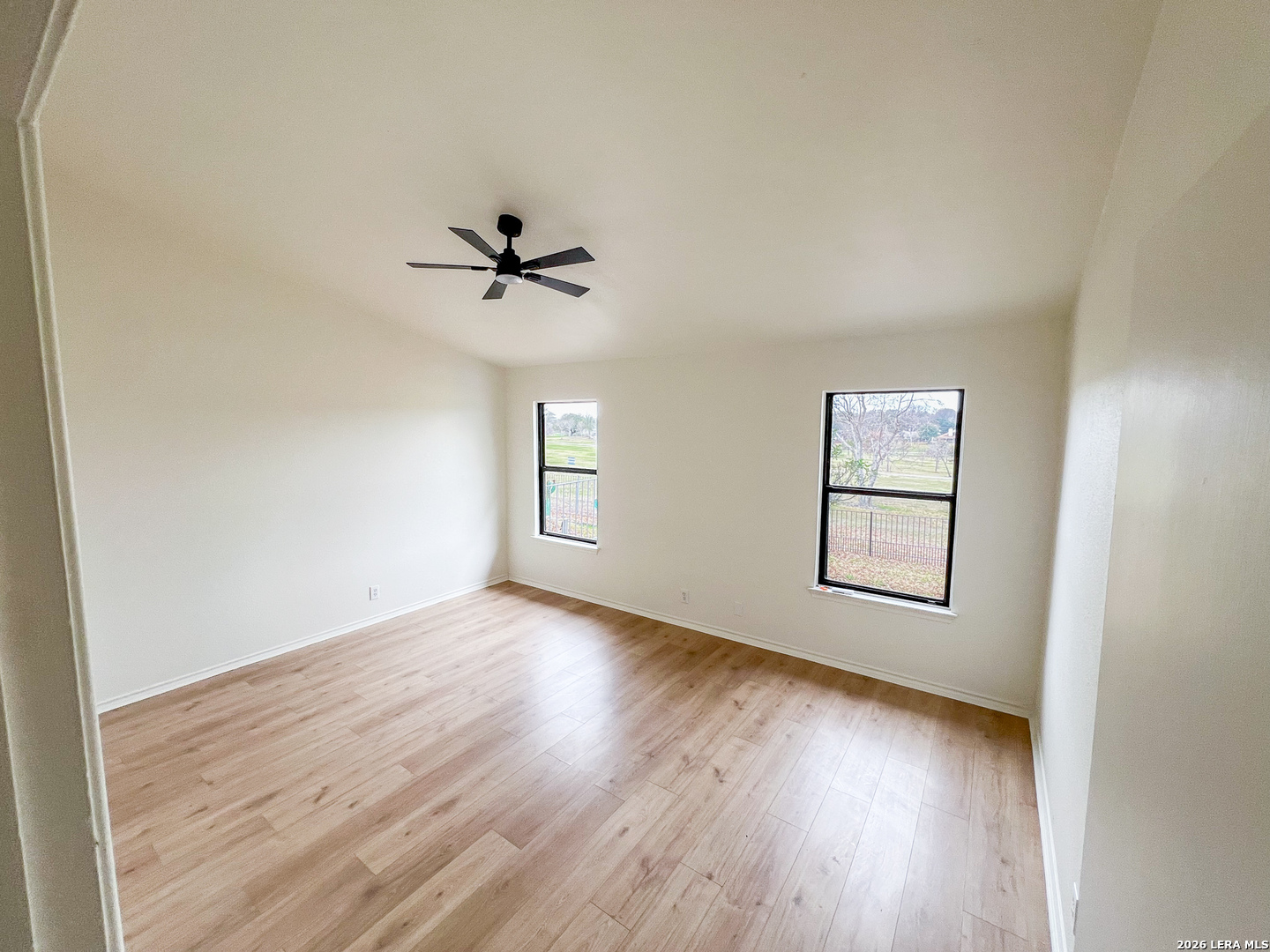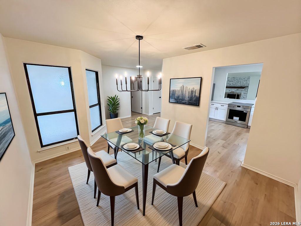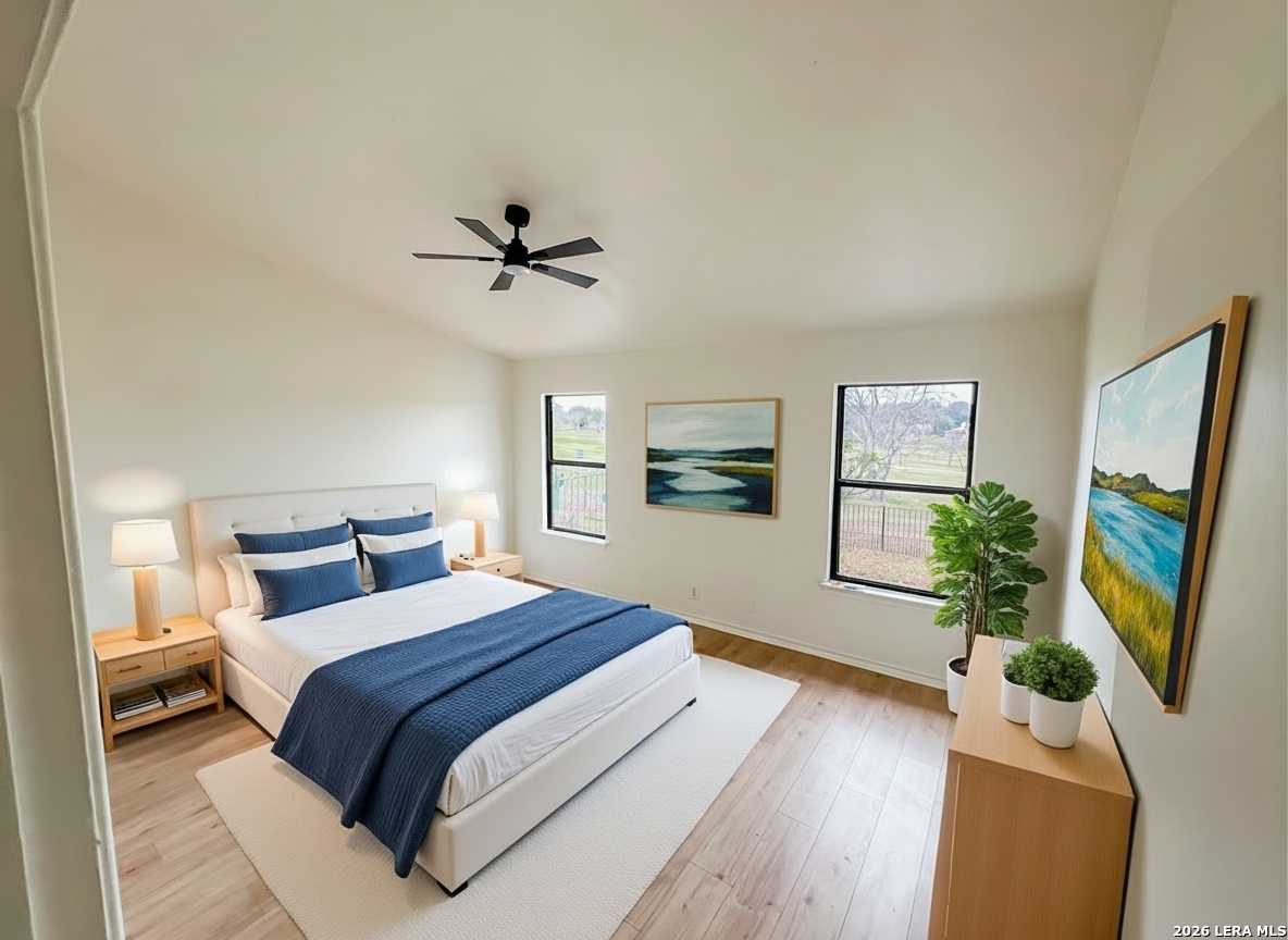 Nestled along the prestigious fairways of the Northern Hill Golf Course, this beautifully designed 3-bedroom, 2.5-bath residence offers 1,860 square feet of thoughtfully curated living space with a modern farmhouse touch. From the moment you arrive, you're welcomed by clean architectural lines, warm wood accents, and inviting curb appeal. Inside, the open-concept floor plan seamlessly blends style and function, featuring spacious living and dining areas filled with natural light. The kitchen serves as the heart of the home, complete with sleek finishes, ample cabinetry, and a layout perfect for entertaining or everyday living. The private primary suite offers a relaxing retreat with a well-appointed en-suite bath and generous closet space. Two additional bedrooms provide flexibility for guests, a home office, or growing households. A convenient half-bath adds extra functionality for visitors. Situated on the scenic Northern Hills Golf Course, this home combines peaceful golf course living with unbeatable accessibility. Centrally located, you'll enjoy quick and easy access to Loop 410, I-10, and Highway 281, making commuting a breeze. Just minutes from premier shopping, dining, and the San Antonio International Airport, convenience is always at your doorstep. Experience the perfect balance of charm, comfort, and location - modern farmhouse elegance in one of the city's most desirable golf course communities.