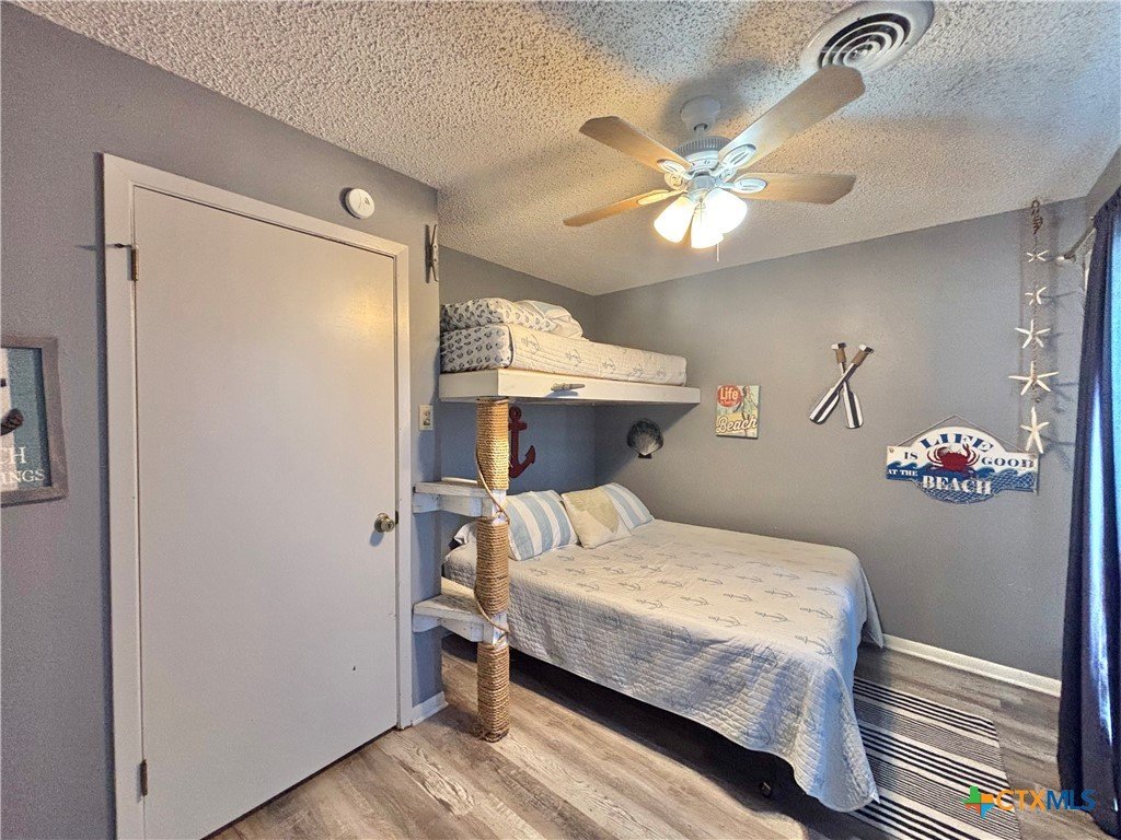 Just what you always wanted! Boat Slip and pool access! Unique wood accents throughout; real wood stairs, 2nd bar with "barn-style wood" accents, in living area. Walk out balcony, off living room, over looks boat slip and pool! Tile flooring throughout entire main floor; living, kitchen, dining, 1/2 guest bath. Foyer with entry closet, central a/c. Master bedroom w/private bath, private balcony and double closets. Second bedroom, also with private balcony, includes built-in bunk bed on 2nd floor! Utility room down and w/owner's closet for fish gear, in case you decide to rent this unit! All you need in POC for great fishing and family fun!