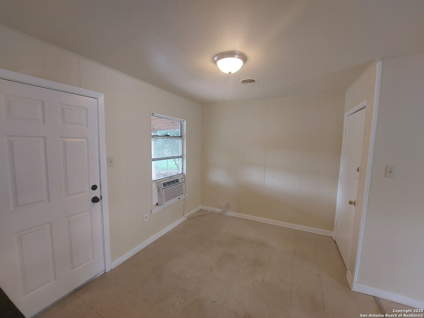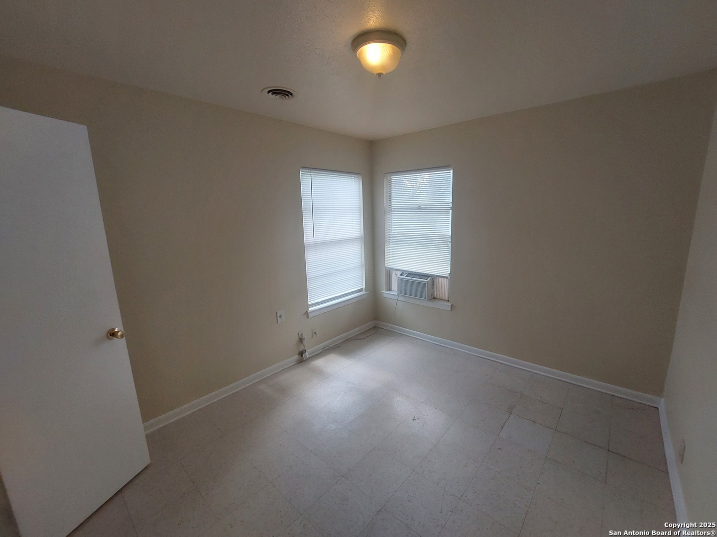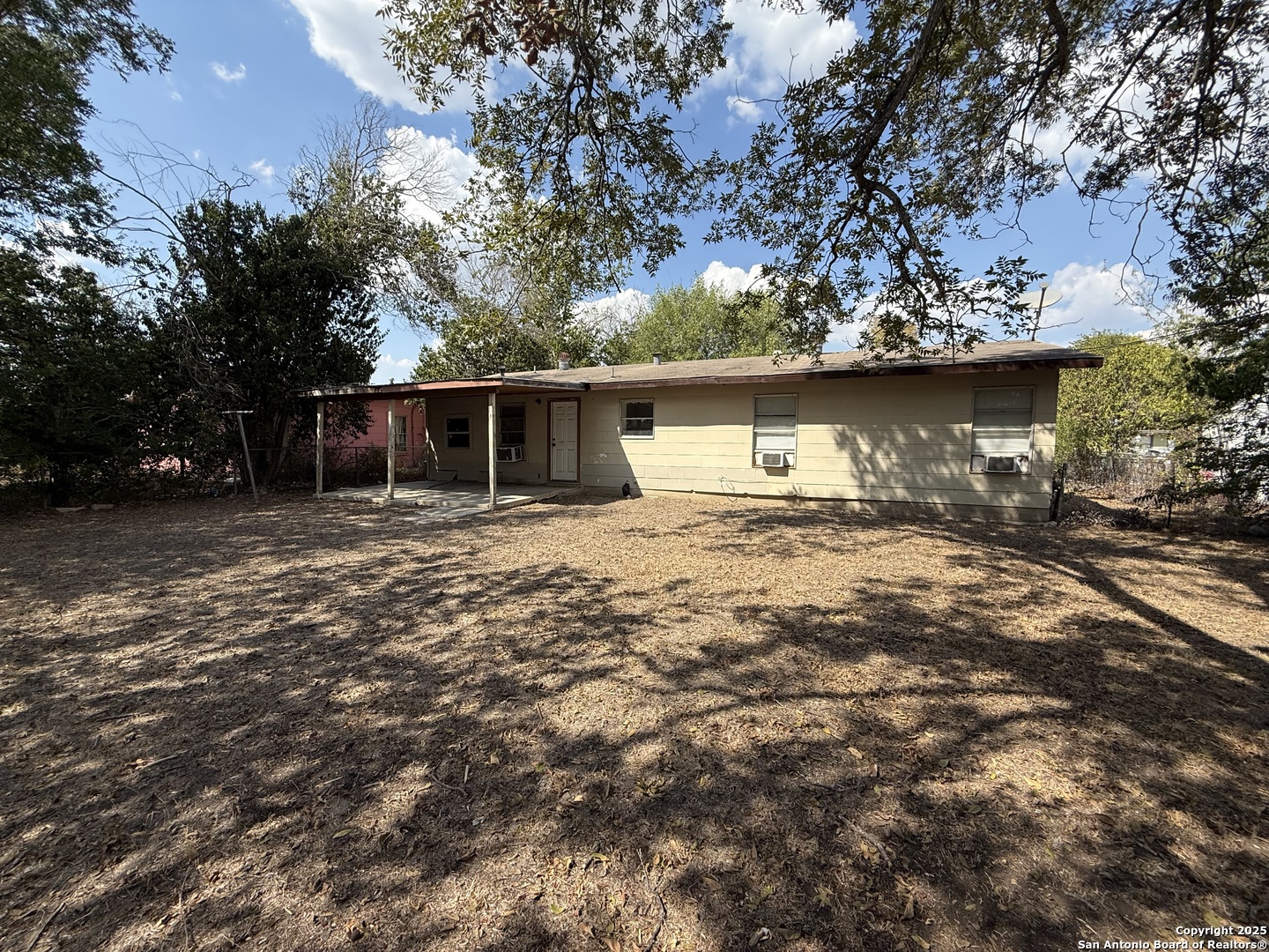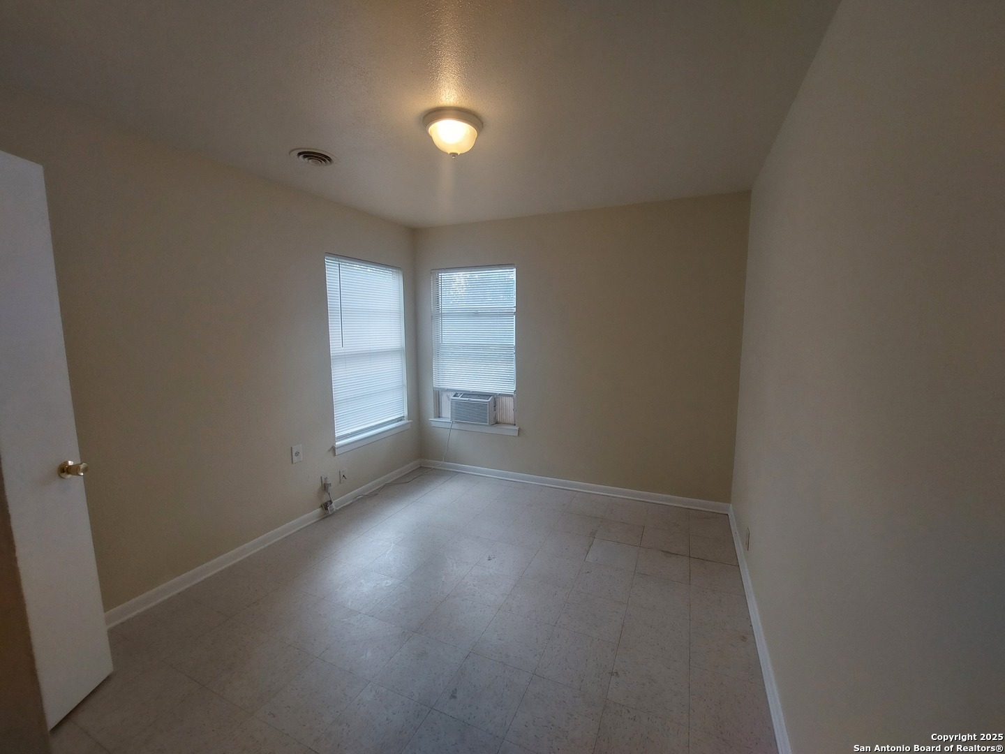 Don't miss out on this opportunity to rent single story 3 bedroom 2 bath with coverted garage as bonus room. Freshly painted interior. Large fenced backyard. Full size washer dryer connections off back utility room. Master bedroom with private master bath provides stand up shower. Window AC units throughout the home provided. Tenant responsible for all utilities. Trash & Recycling provided by the City of San Antonio. Tenant must provide their own fridge.