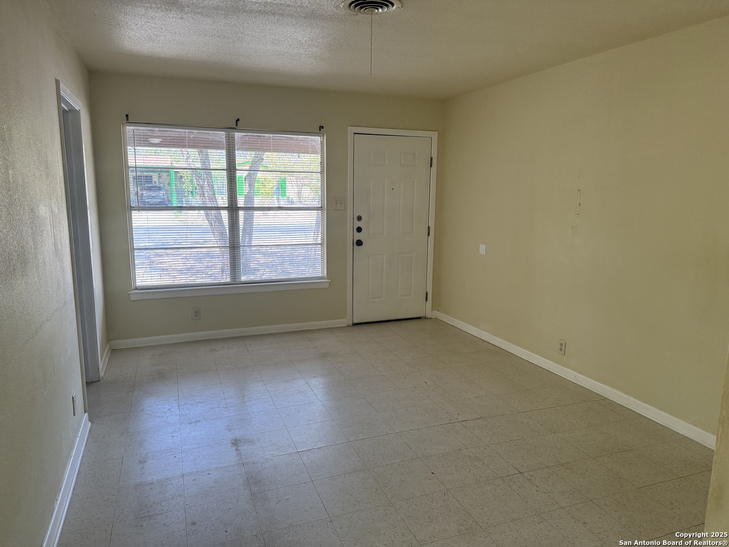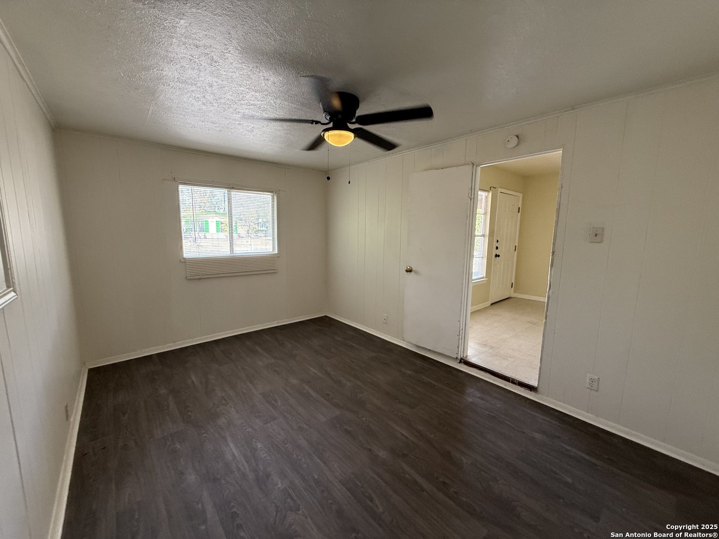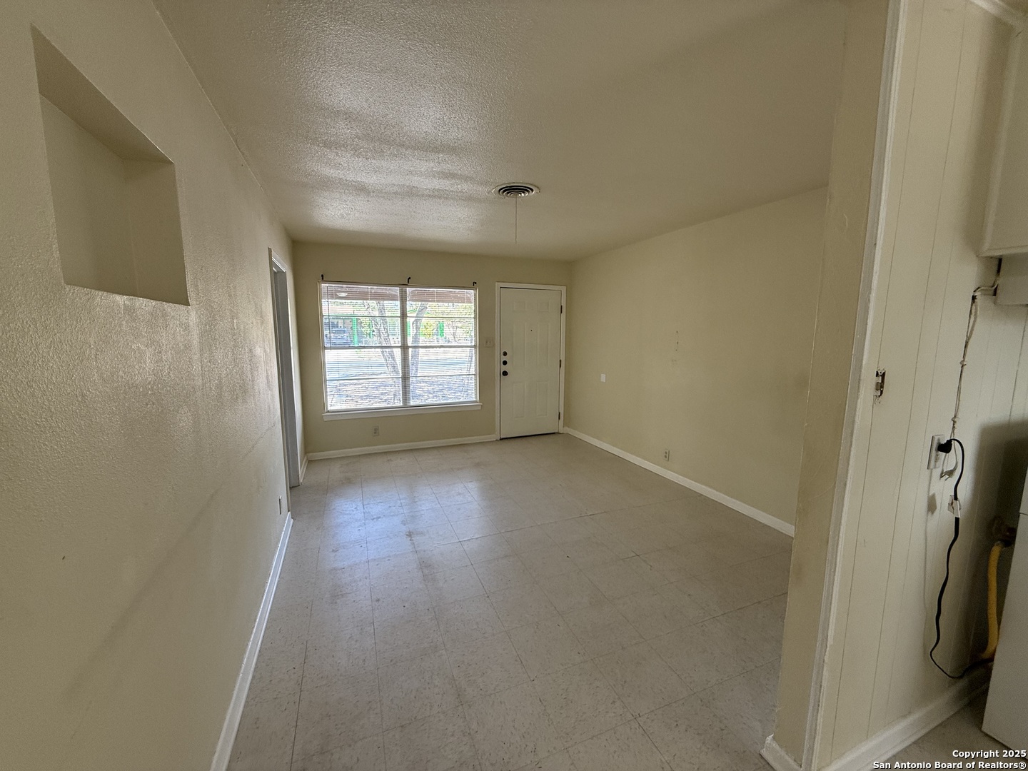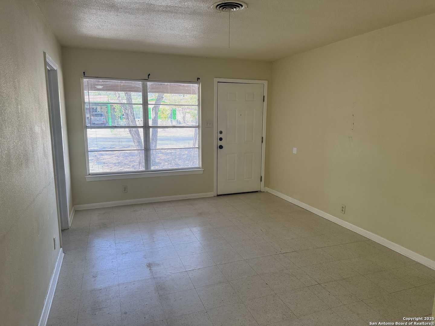 Don't miss out on this opportunity to rent single story 3 bedroom 2 bath with coverted garage as bonus room. Freshly painted interior. Large fenced backyard. Full size washer dryer connections off back utility room. Master bedroom with private master bath provides stand up shower. Window AC units throughout the home provided. Tenant responsible for all utilities. Trash & Recycling provided by the City of San Antonio. Tenant must provide their own fridge.