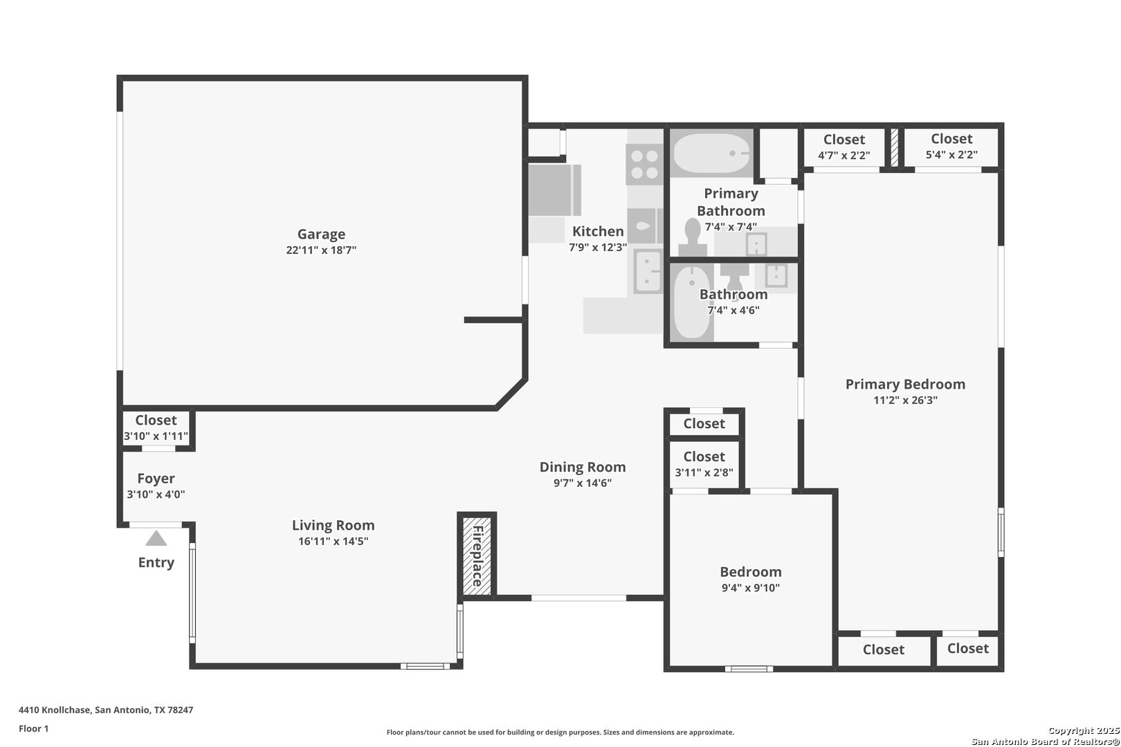 Prime investor opportunity on a cul-de-sac with quick access to Loop 1604, I-35, and US-281-minutes to everyday shopping and dining. This 2-bed, 2-bath single-story features a living room with fireplace and low-maintenance, no-carpet flooring throughout. The private primary suite offers a full bath with an oversized single vanity and a tub/shower combo; the secondary bedroom is served by a second full bath. Outside, a two-car attached garage and a spacious, privacy-fenced backyard provide outstanding potential for future outdoor living. Property is a fixer-upper and priced accordingly-bring your contractor and vision to maximize ARV or add to your rental portfolio. Buyer to verify all measurements, schools, and community details; sold as-is, no repairs.