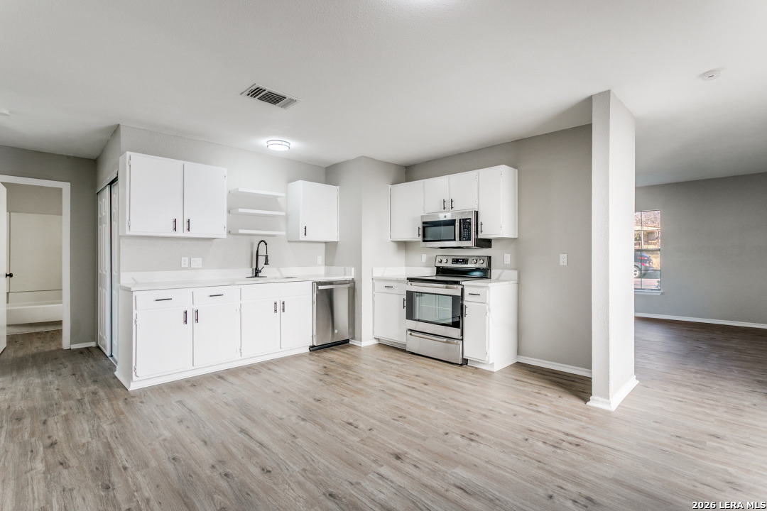 OPEN HOUSE SATURDAY 3/21 9AM-NOON! Updated 4-bedroom, 2-bath home backing to a quite greenbelt with no rear neighbors, offering rare privacy and direct access to a jogging/biking trail. The open living area flows into a bright kitchen with white quartz countertops, modern fixtures, and updated appliances. The primary bathroom and master bath has been refreshed with contemporary finishes. The home features updated HVAC, lighting, fixtures, and new appliances, providing a clean move-in-ready feel. Enjoy the private backyard setting and spacious layout in a home that combines modern updates with everyday comfort. No HOA!