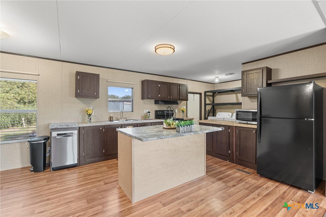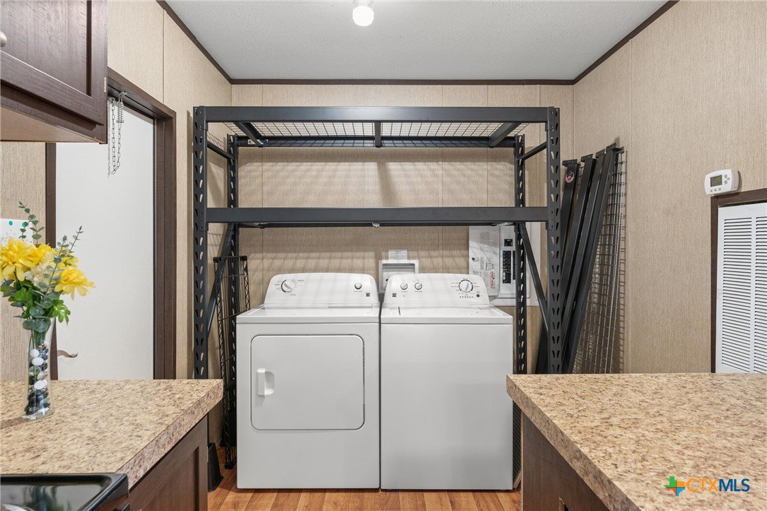 Located just outside of Georgetown, this 3-bedroom, 2-bath manufactured home sits on a full acre with no HOA—offering the flexibility to truly make the property your own. Set well back from the main road, the home enjoys a comfortable sense of space, while still keeping you connected to everything you need. The front of the home faces south/southeast, welcoming those gentle morning rays that warm the porch and living spaces, while the kitchen windows look north—bathing the heart of the home in soft, even daylight all day long. That acre of land is brimming with possibilities. Build a workshop, store work trucks or equipment, or finally launch that home-based business you’ve been dreaming about. With potential for commercial rezoning (buyer to verify), the opportunities are wide open. Contractors, woodworkers, mechanics—this property has the kind of setup that works as hard as you do. Kids and pets will have room to run and explore, and an 18-wheeler trailer on-site serves as a sturdy storage solution for tools, supplies, or projects. Inside, the home is move-in ready with all appliances conveying—including a miniature freezer—so you can start enjoying it right away. Solar panels help take the edge off those summer electric bills, and a brand-new well pump installed in 2024 means peace of mind for years to come. You’re just a short drive from Georgetown’s dining, shopping, and I-35 access, yet here you have the space to spread out and the freedom to decide how to use it. Whether you’re looking for a property that blends home and business, a place for hobbies and projects, or simply an acre to call your own—this one is worth a closer look.