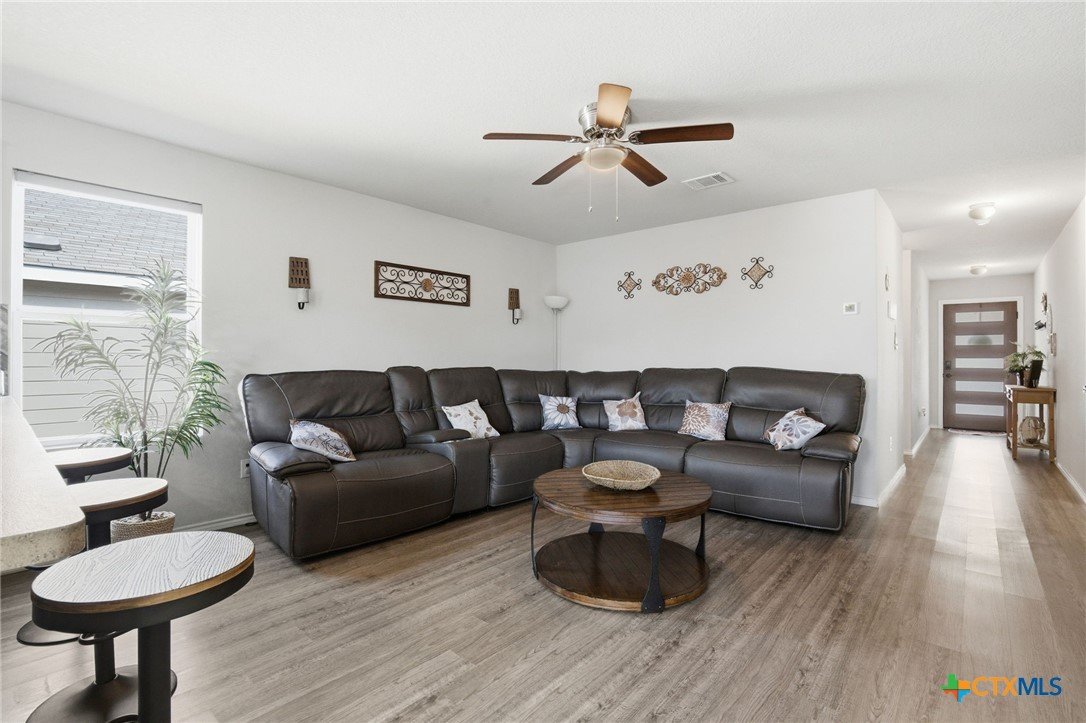 Beautifully maintained 3-bedroom, 2-bath single-story home in Heather Glen, built in 2018 and offering 1,173 sq ft of thoughtfully designed living space. Open-concept layout with abundant natural light and a custom electric fireplace that adds warmth and character to the living area. The backyard features an extended concrete patio and custom firepit — perfect for relaxing evenings outdoors. Move-in ready and conveniently located near schools, shopping, and major highways in growing New Braunfels.