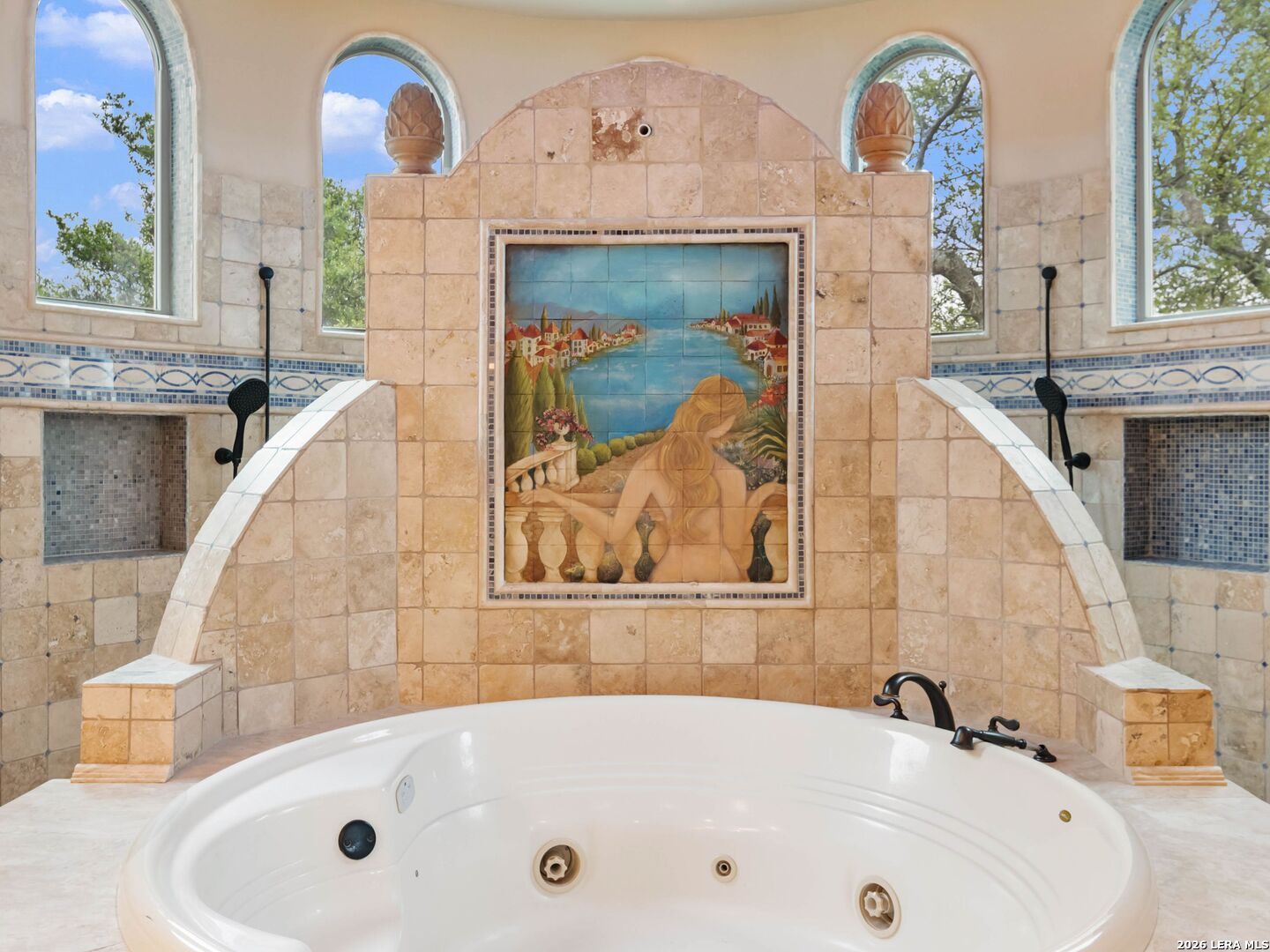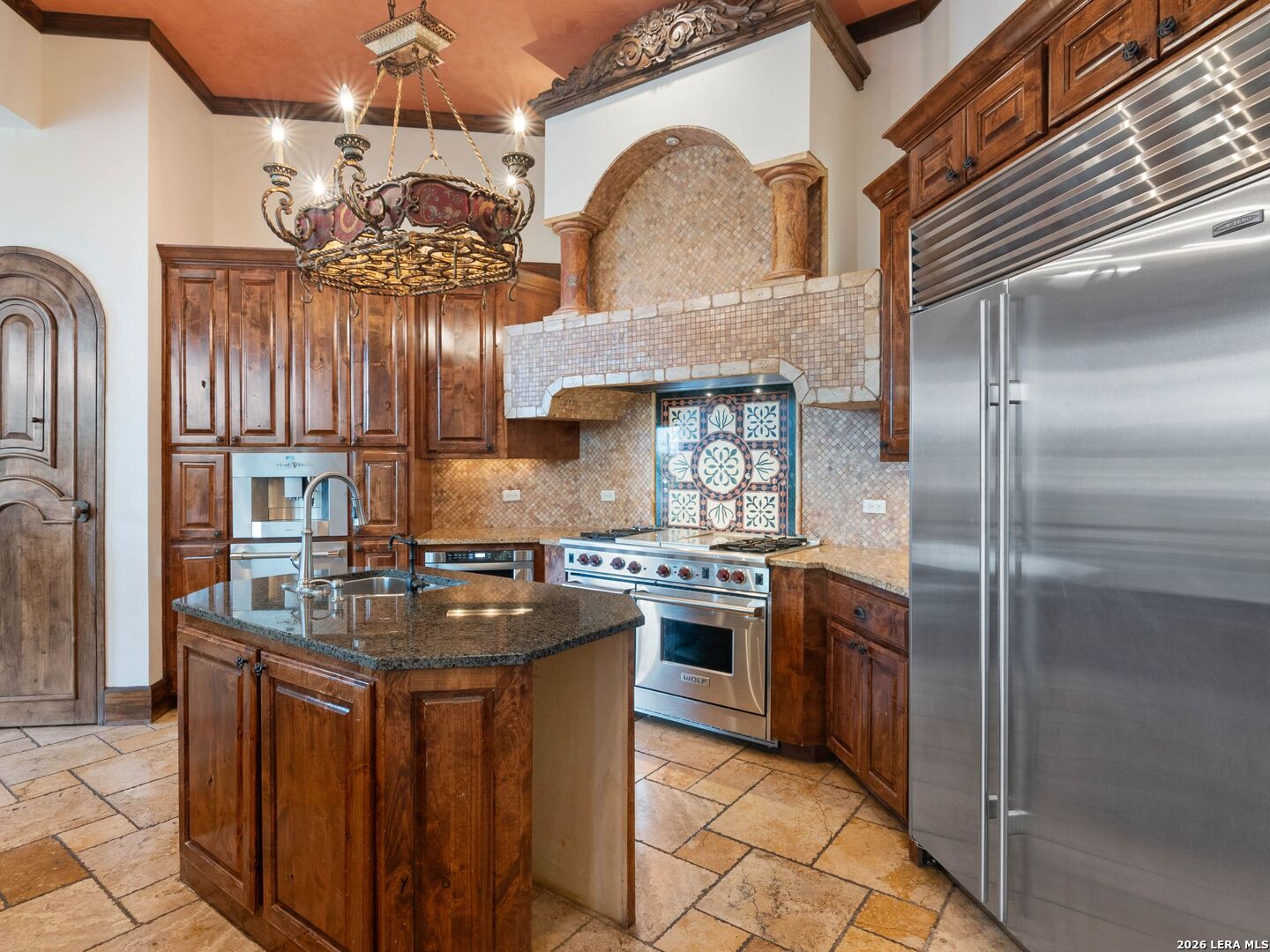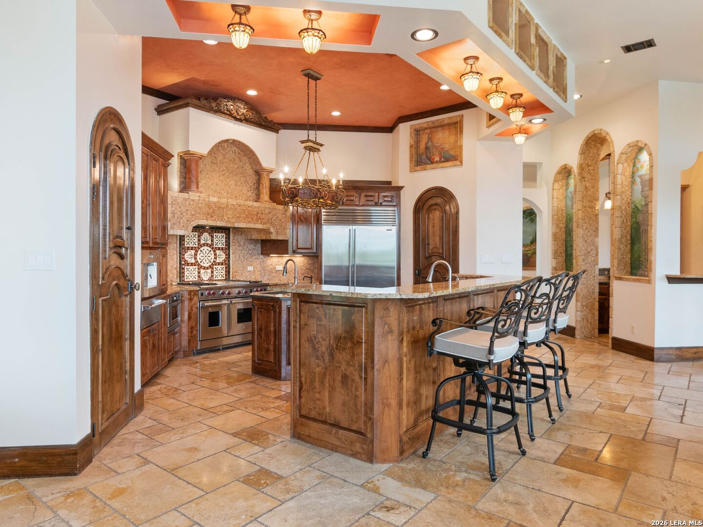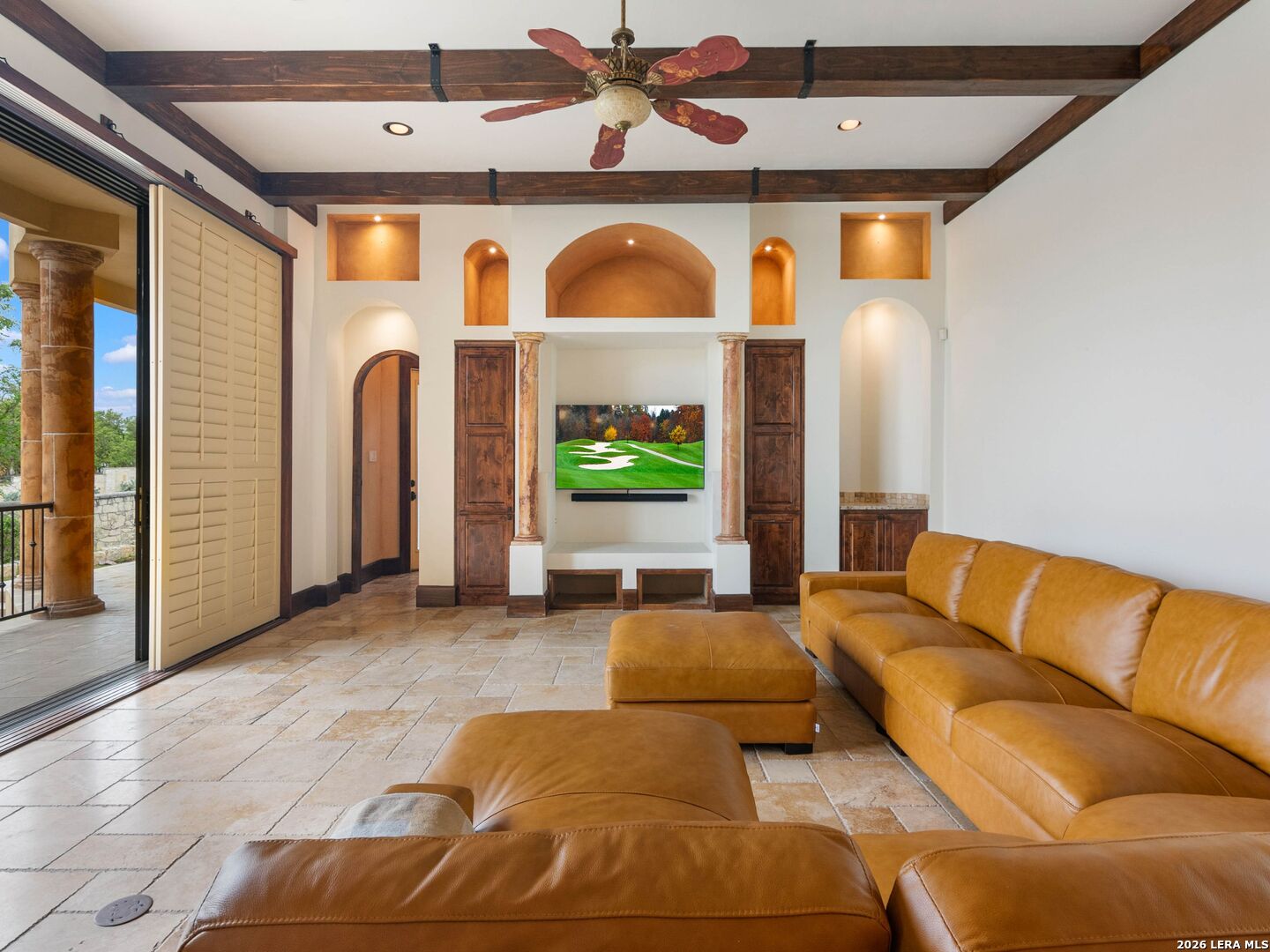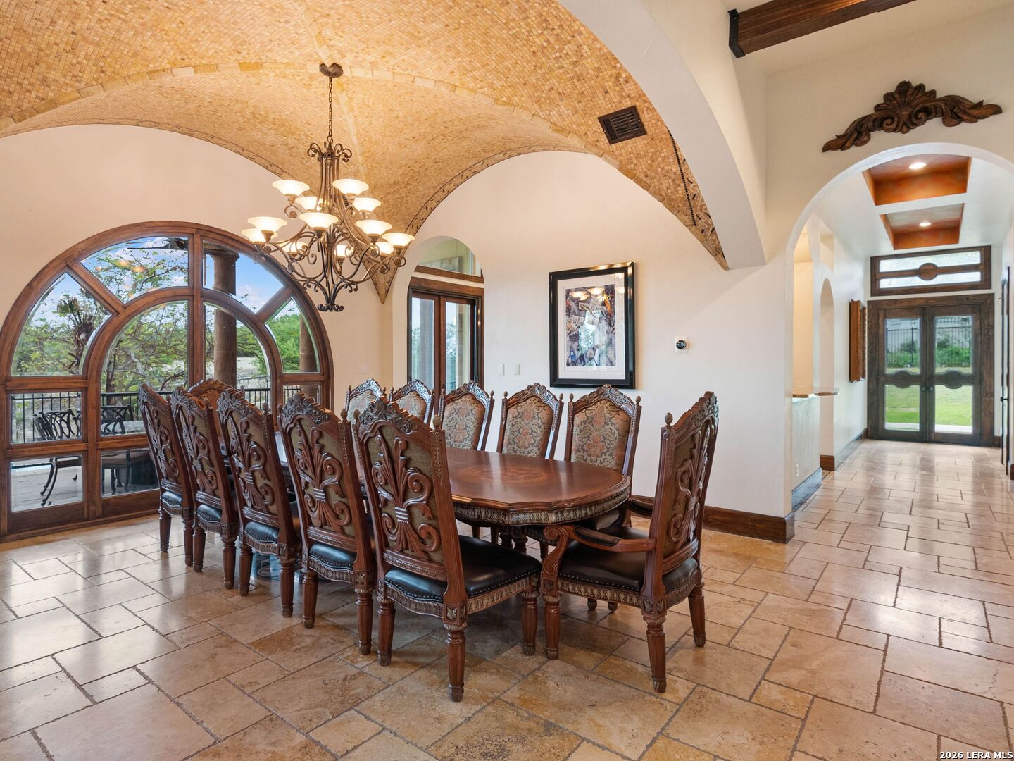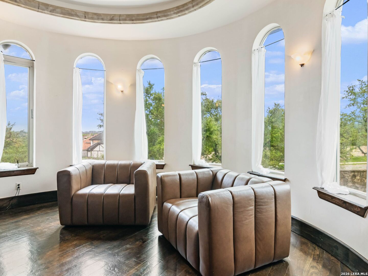 Set behind the gates of one of San Antonio's most exclusive enclaves, this refined Tuscan inspired estate blends European architecture with resort caliber living. Framed by mature oak trees and thoughtfully landscaped grounds, the residence delivers a sense of arrival defined by proportion, craftsmanship, and timeless design. Inside, soaring ceilings, graceful archways, and curated architectural detailing create a seamless flow throughout the home. A private elevator connects all levels, offering both convenience and long term functionality. Natural light fills the interiors, enhancing the scale and warmth of each living space. At the center of the home, the chef's kitchen is designed for both everyday living and elevated entertaining, featuring commercial grade appliances, custom cabinetry, and effortless connection to multiple terraces and Juliet balconies. Interior spaces transition naturally outdoors, creating an ideal setting for dining, hosting, or quiet retreat. Designed for entertainment and comfort, the home includes a private theater, observatory style library, and well appointed bedroom suites offering privacy and flexibility. Discreet solar integration and advanced home systems support modern living while preserving the integrity of the architecture. Outdoors, over 2,000 square feet of terrace and entertaining space surrounds a Keith Zars heated pool and spa complete with waterslide and multiple gathering areas anchored by dual outdoor fireplaces. The result is a private retreat that feels both expansive and intimate. A stately three car garage completes the property, delivering functionality without compromising design. This is a residence defined by craftsmanship, setting, and thoughtful execution, offering a rare opportunity to experience elevated living within a truly distinguished estate environment.