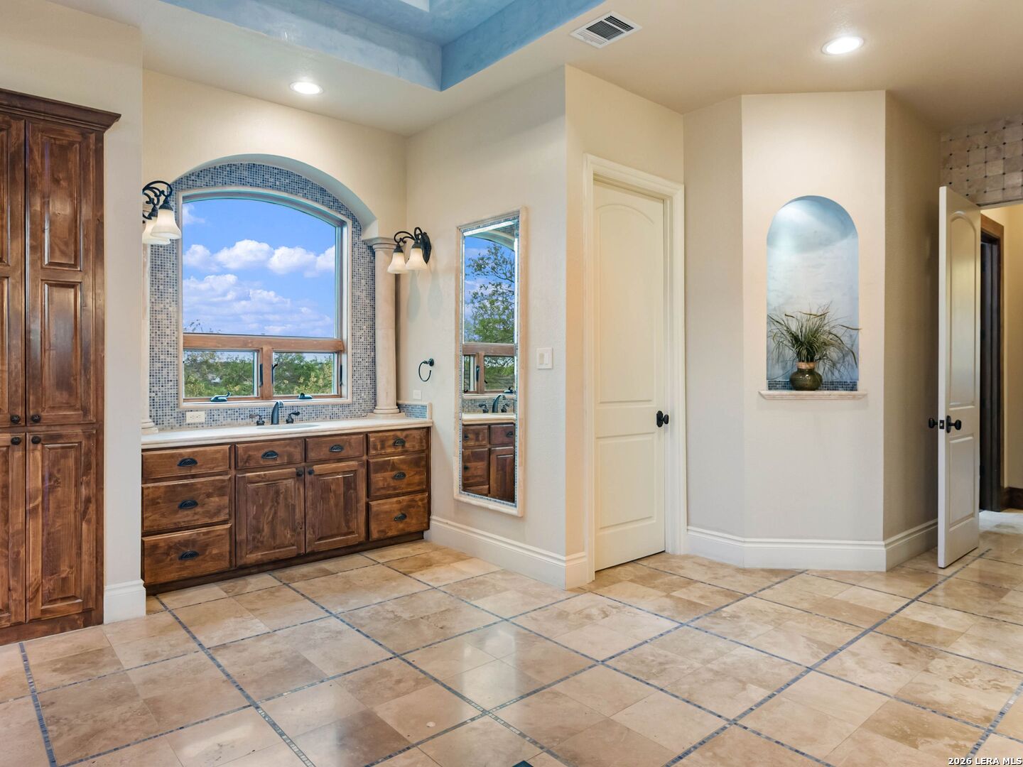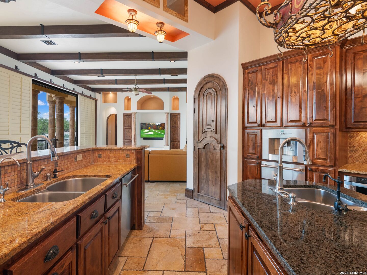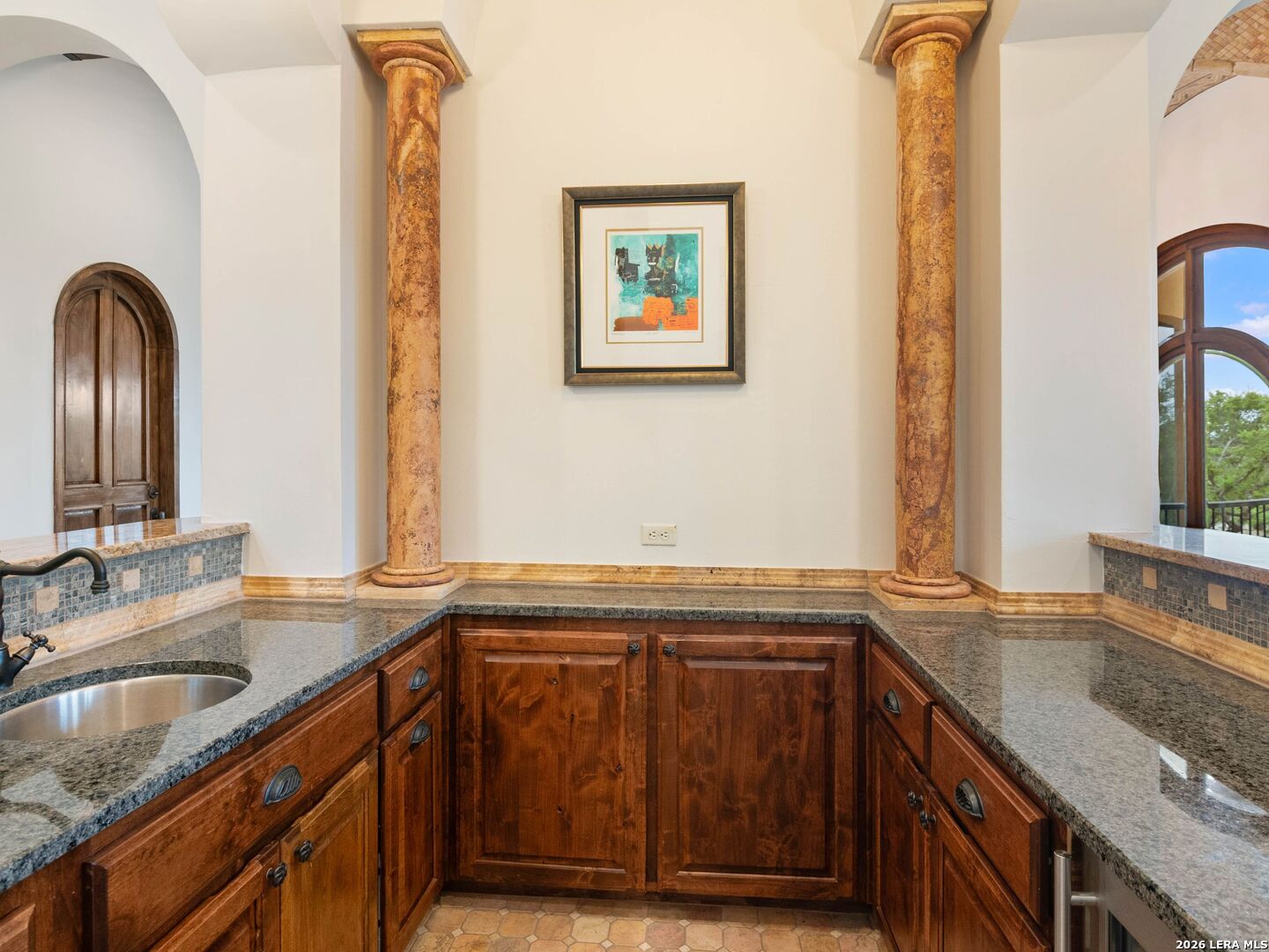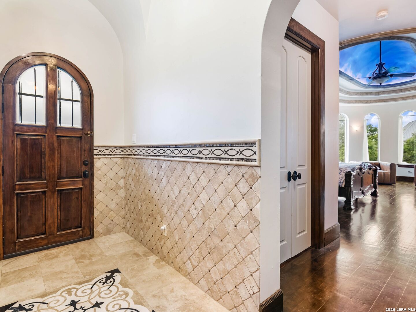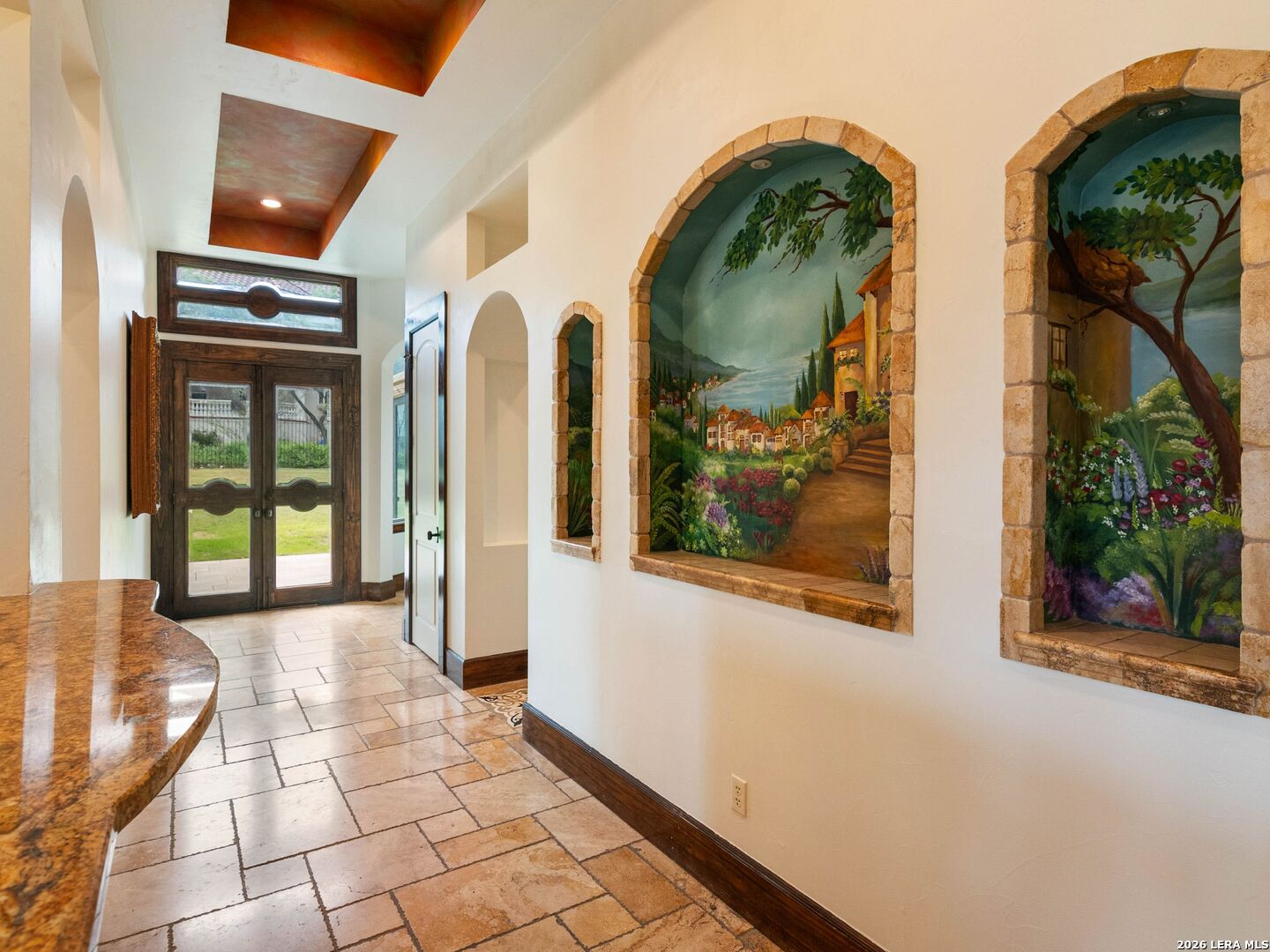 Set behind the gates of one of San Antonio's most exclusive enclaves, this refined Tuscan inspired estate blends European architecture with resort caliber living. Framed by mature oak trees and thoughtfully landscaped grounds, the residence delivers a sense of arrival defined by proportion, craftsmanship, and timeless design. Inside, soaring ceilings, graceful archways, and curated architectural detailing create a seamless flow throughout the home. A private elevator connects all levels, offering both convenience and long term functionality. Natural light fills the interiors, enhancing the scale and warmth of each living space. At the center of the home, the chef's kitchen is designed for both everyday living and elevated entertaining, featuring commercial grade appliances, custom cabinetry, and effortless connection to multiple terraces and Juliet balconies. Interior spaces transition naturally outdoors, creating an ideal setting for dining, hosting, or quiet retreat. Designed for entertainment and comfort, the home includes a private theater, observatory style library, and well appointed bedroom suites offering privacy and flexibility. Discreet solar integration and advanced home systems support modern living while preserving the integrity of the architecture. Outdoors, over 2,000 square feet of terrace and entertaining space surrounds a Keith Zars heated pool and spa complete with waterslide and multiple gathering areas anchored by dual outdoor fireplaces. The result is a private retreat that feels both expansive and intimate. A stately three car garage completes the property, delivering functionality without compromising design. This is a residence defined by craftsmanship, setting, and thoughtful execution, offering a rare opportunity to experience elevated living within a truly distinguished estate environment.