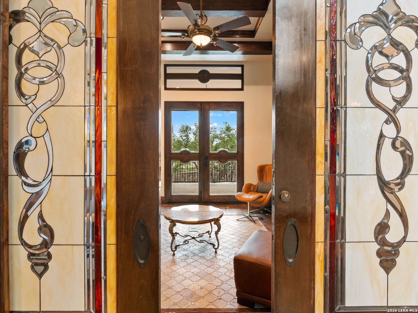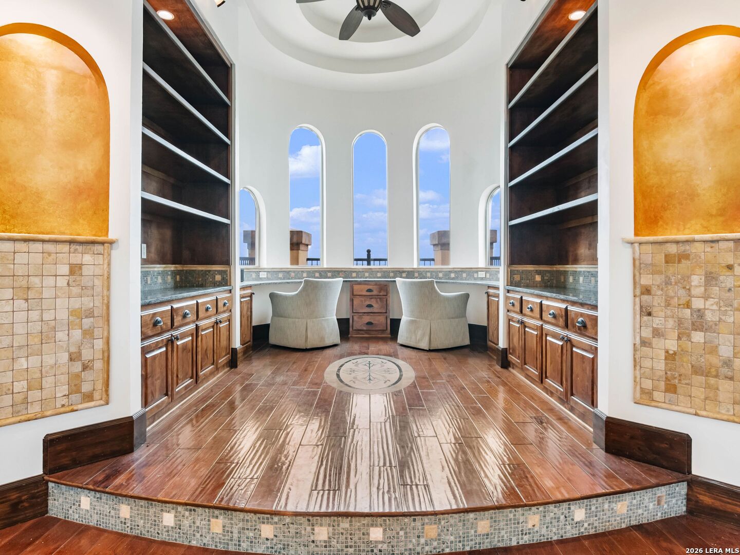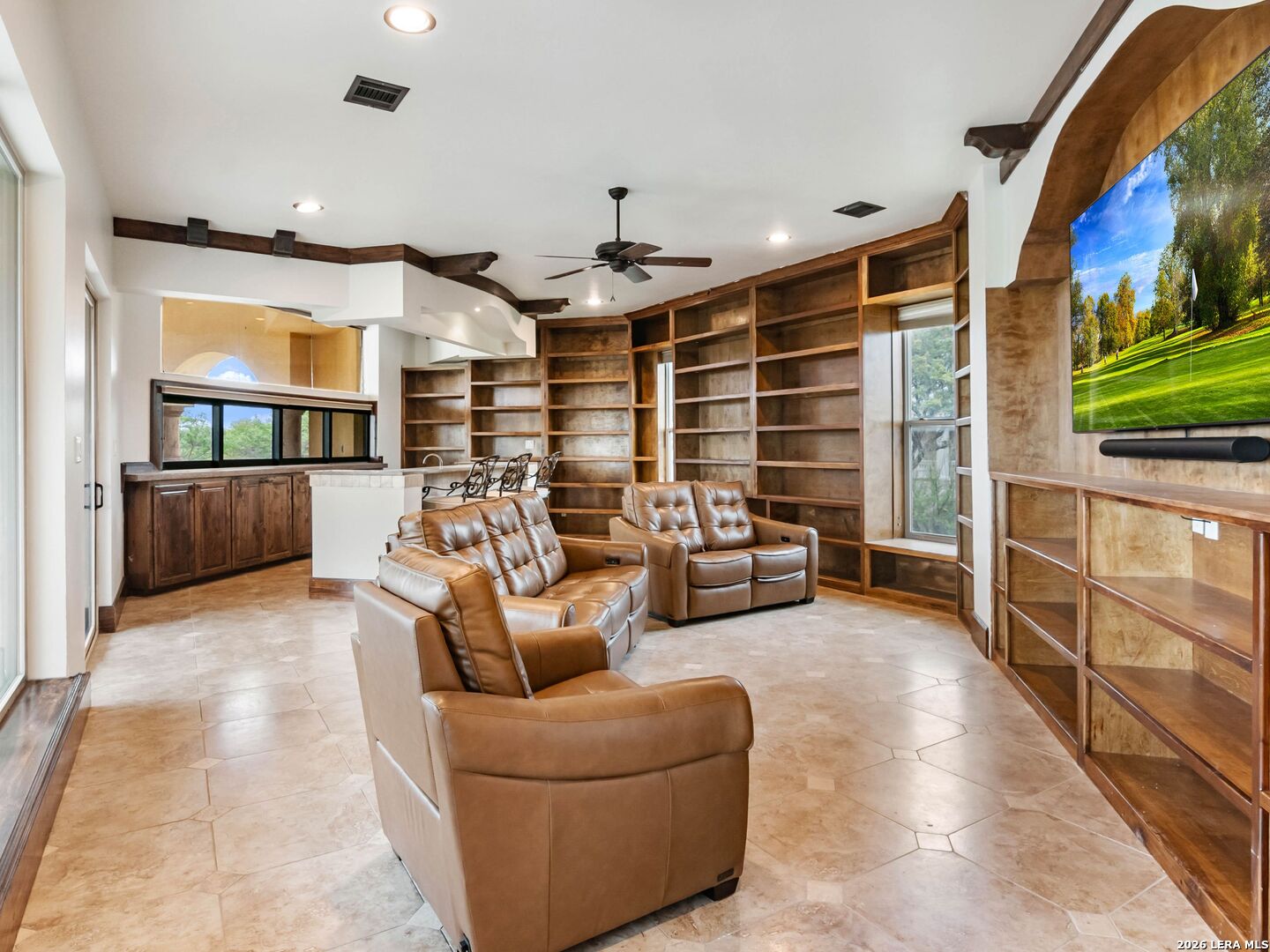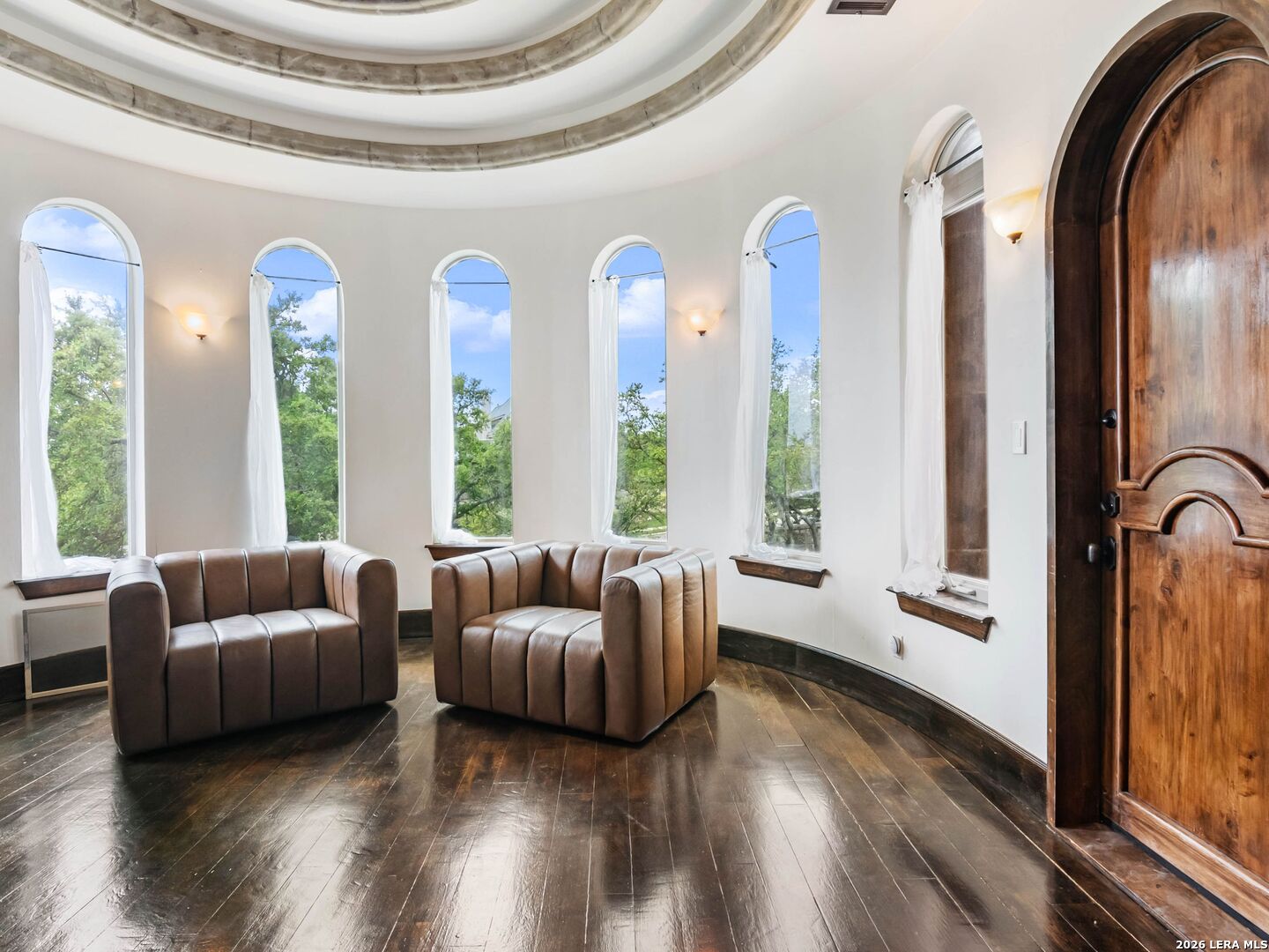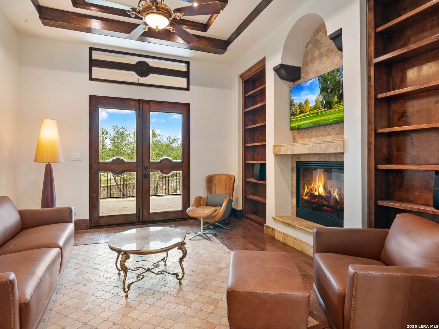 Set behind the gates of one of San Antonio's most exclusive enclaves, this refined Tuscan inspired estate blends European architecture with resort caliber living. Framed by mature oak trees and thoughtfully landscaped grounds, the residence delivers a sense of arrival defined by proportion, craftsmanship, and timeless design. Inside, soaring ceilings, graceful archways, and curated architectural detailing create a seamless flow throughout the home. A private elevator connects all levels, offering both convenience and long term functionality. Natural light fills the interiors, enhancing the scale and warmth of each living space. At the center of the home, the chef's kitchen is designed for both everyday living and elevated entertaining, featuring commercial grade appliances, custom cabinetry, and effortless connection to multiple terraces and Juliet balconies. Interior spaces transition naturally outdoors, creating an ideal setting for dining, hosting, or quiet retreat. Designed for entertainment and comfort, the home includes a private theater, observatory style library, and well appointed bedroom suites offering privacy and flexibility. Discreet solar integration and advanced home systems support modern living while preserving the integrity of the architecture. Outdoors, over 2,000 square feet of terrace and entertaining space surrounds a Keith Zars heated pool and spa complete with waterslide and multiple gathering areas anchored by dual outdoor fireplaces. The result is a private retreat that feels both expansive and intimate. A stately three car garage completes the property, delivering functionality without compromising design. This is a residence defined by craftsmanship, setting, and thoughtful execution, offering a rare opportunity to experience elevated living within a truly distinguished estate environment.