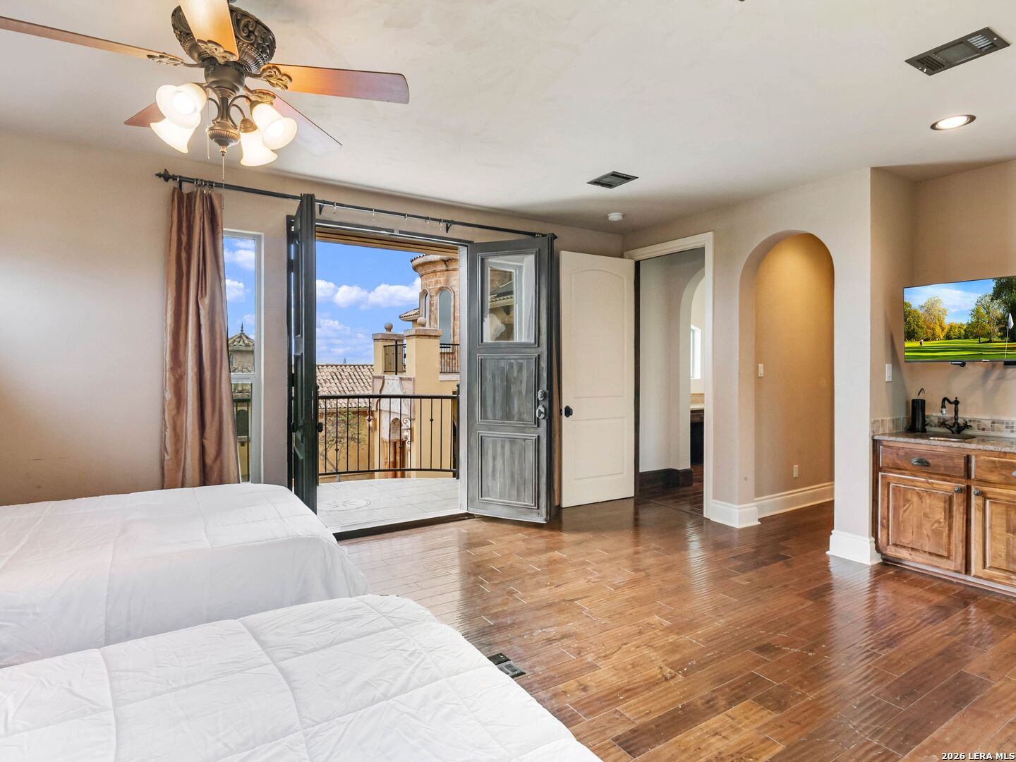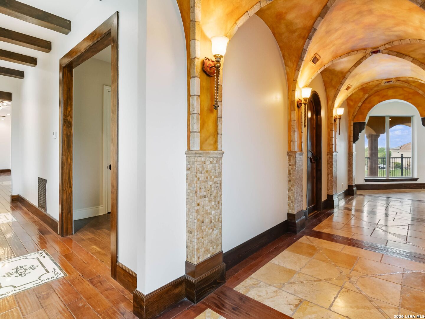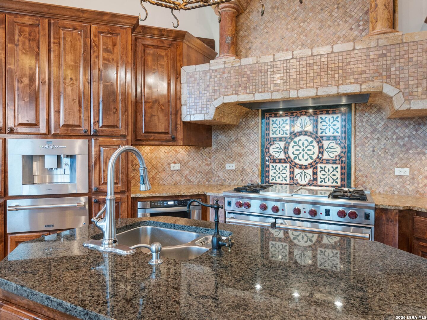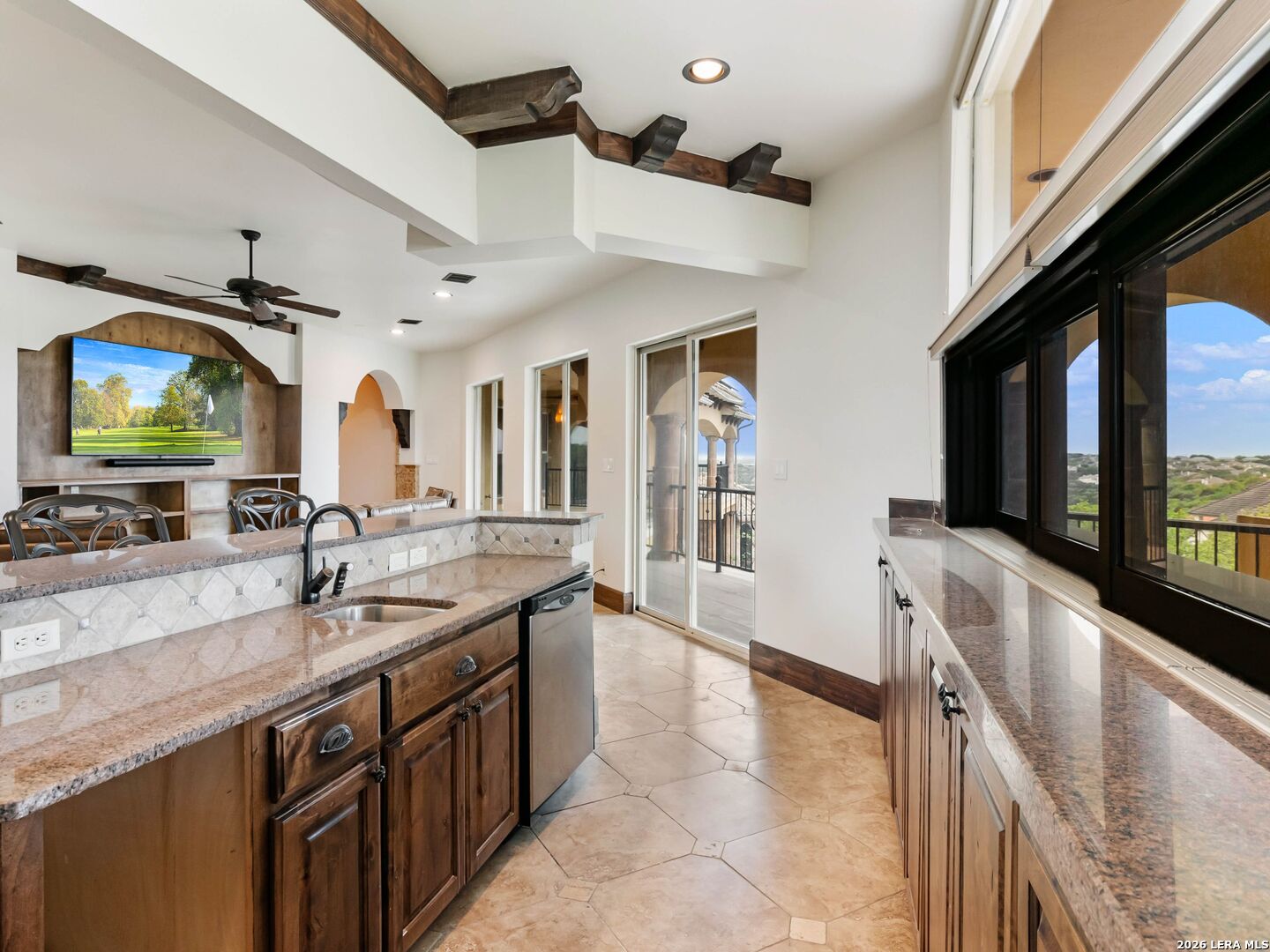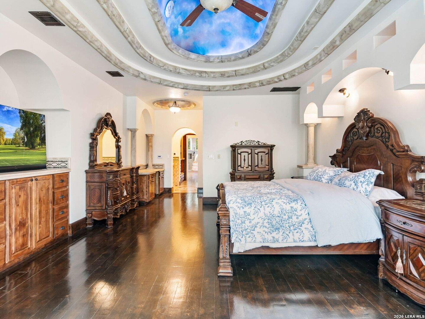Set behind the gates of one of San Antonio's most exclusive enclaves, this refined Tuscan inspired estate blends European architecture with resort caliber living. Framed by mature oak trees and thoughtfully landscaped grounds, the residence delivers a sense of arrival defined by proportion, craftsmanship, and timeless design. Inside, soaring ceilings, graceful archways, and curated architectural detailing create a seamless flow throughout the home. A private elevator connects all levels, offering both convenience and long term functionality. Natural light fills the interiors, enhancing the scale and warmth of each living space. At the center of the home, the chef's kitchen is designed for both everyday living and elevated entertaining, featuring commercial grade appliances, custom cabinetry, and effortless connection to multiple terraces and Juliet balconies. Interior spaces transition naturally outdoors, creating an ideal setting for dining, hosting, or quiet retreat. Designed for entertainment and comfort, the home includes a private theater, observatory style library, and well appointed bedroom suites offering privacy and flexibility. Discreet solar integration and advanced home systems support modern living while preserving the integrity of the architecture. Outdoors, over 2,000 square feet of terrace and entertaining space surrounds a Keith Zars heated pool and spa complete with waterslide and multiple gathering areas anchored by dual outdoor fireplaces. The result is a private retreat that feels both expansive and intimate. A stately three car garage completes the property, delivering functionality without compromising design. This is a residence defined by craftsmanship, setting, and thoughtful execution, offering a rare opportunity to experience elevated living within a truly distinguished estate environment.