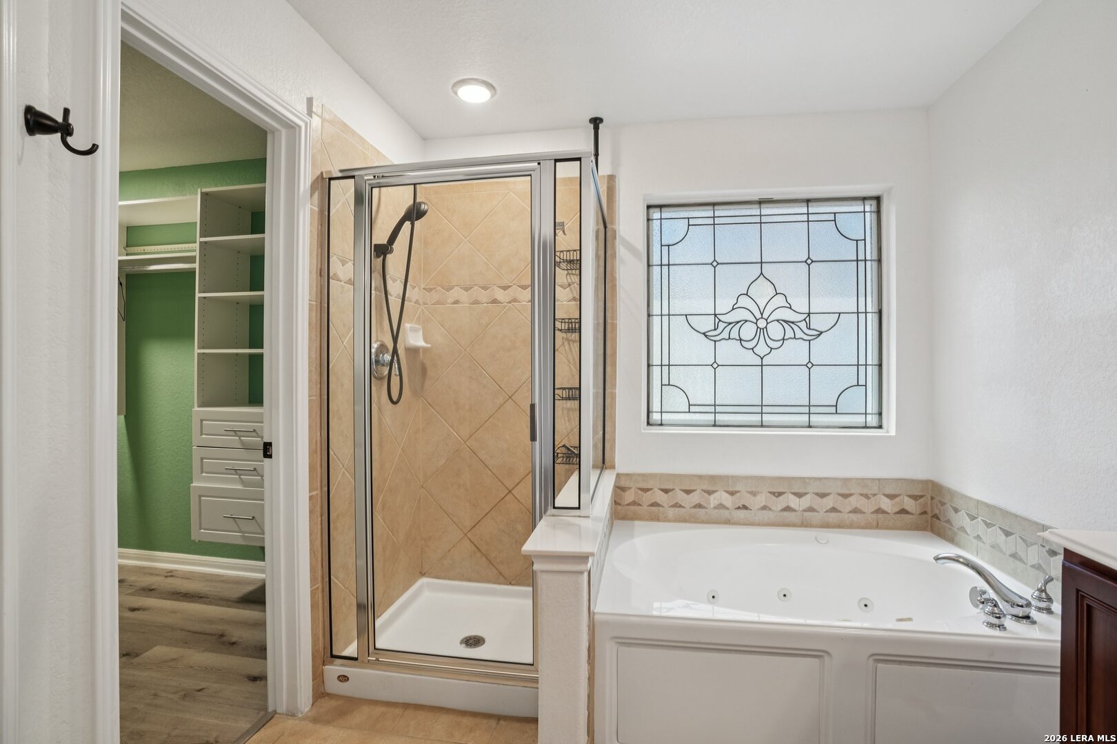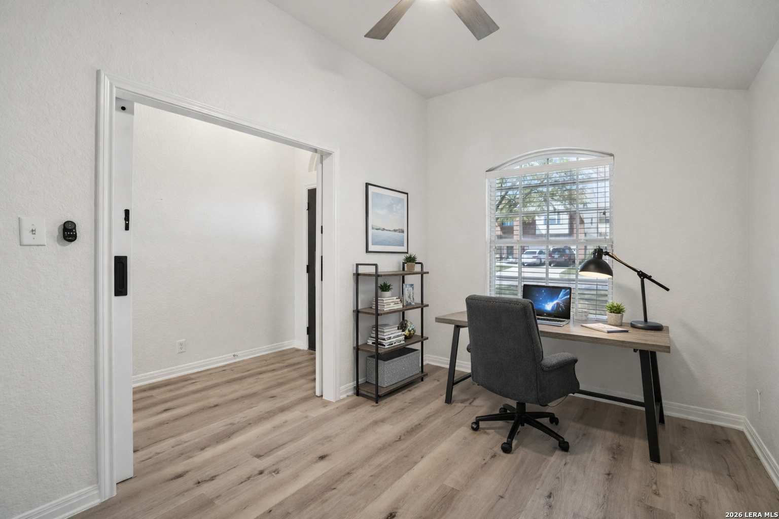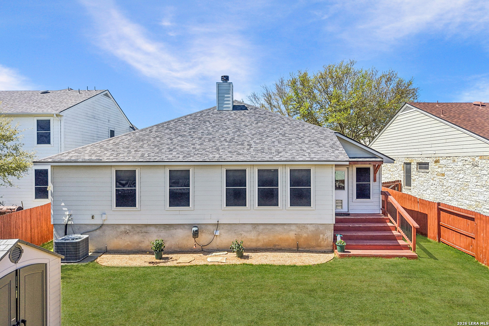 Welcome to this beautifully updated home in Cibolo's sought-after Bentwood Ranch neighborhood and offers the space, flexibility, and upgrades today's buyers are looking for. Featuring 3 bedrooms, 2 bathrooms, a private office, and a fully enclosed flex room that lives like a 4th bedroom, this layout is perfect for growing families, remote work, or multi-purpose living. Step inside to find new flooring, updated countertops, fixtures, lighting, and a newer HVAC system, making this home truly move-in ready. The versatile front room with barn doors can easily function as a guest bedroom, second office, playroom, or formal dining space, giving you options that adapt to your lifestyle. The kitchen is designed for both everyday living and entertaining with ample counter space, a large island, and an open flow into the living room, where a cozy fireplace creates the perfect gathering space. The spacious primary suite offers a relaxing retreat featuring a garden tub, separate shower, dual vanities, and a large walk-in closet. Additional features include a reverse osmosis system, water softener, sound-reducing wall in living area and updated finishes throughout. Enjoy the outdoors in a well-maintained backyard complete with a storage shed, ideal for tools, hobbies, or extra storage. Located just minutes from shopping, dining, and Randolph AFB, this home is a fantastic option for military relocation buyers, commuters, and anyone looking for space without sacrificing convenience.