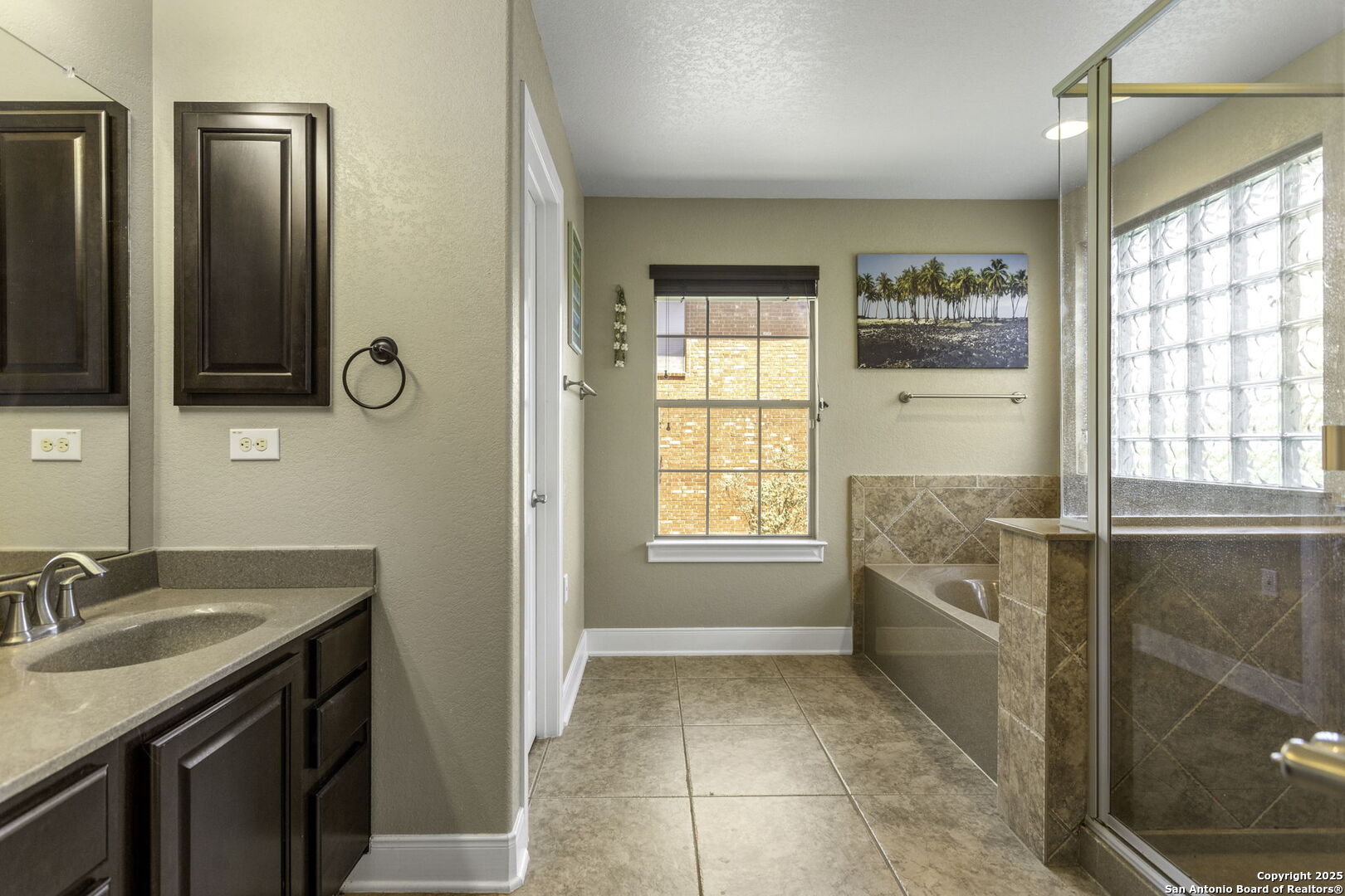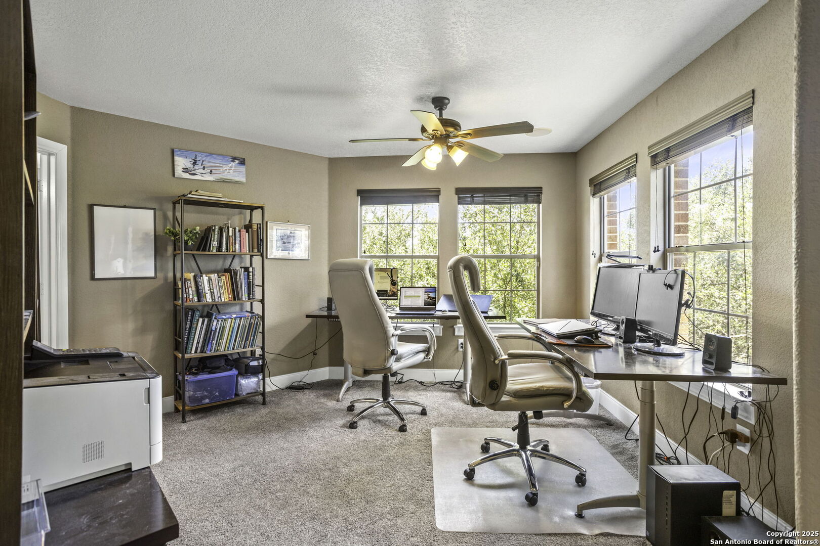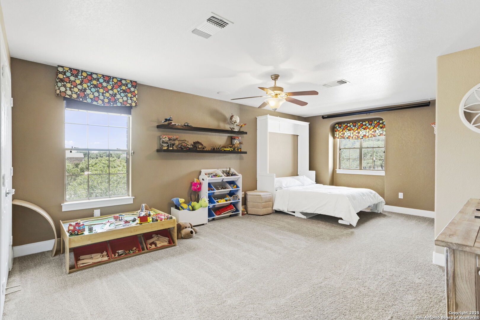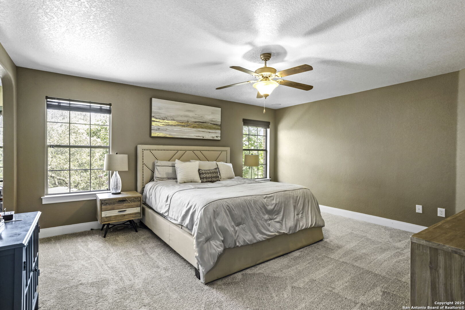PRICE DROP OF $20,000!!! Welcome to 4502 Manitou Bay-a former Fox Grove model home that pairs designer touches with rare outdoor space and unbeatable efficiency. Inside, 3,178 sq ft of thoughtfully planned living unfolds across two generous living areas, a bright upstairs loft, and an open kitchen to family room that's perfect for entertaining. The primary retreat is a true sanctuary: a kingsized bedroom plus a private flex space ideal for a home office, nursery, or reading lounge. Two secondary bedrooms share a well appointed full bath, while a convenient guest powder room downstairs keeps daytoday living seamless. Step outside and discover the crown jewel: an oversized 0.8 acre lot-among the largest in this subdivision or any subdivision of its kind in the area and at this price! The fully fenced backyard offers an expanse of lush lawn for play and pets, while mature trees create a wooded backdrop that feels like your own private park. A detached workshop/shed on a concrete slab with full electricity stands ready for whatever you can imagine. Energy savings come built in thanks to owned, paid off solar panels that slash electric bills, paired with a premium John Wayne installed HVAC system featuring transferable warranties for worry free comfort in addition to a whole house water filtration system with reverse osmosis. All of this is nestled in sought after North East ISD, feeding to top rated Johnson High School, and just minutes from 281, 1604, and the best shopping and dining on San Antonio's north side. If you've been searching for turnkey style, room to breathe, and hard to find efficiency-welcome home.