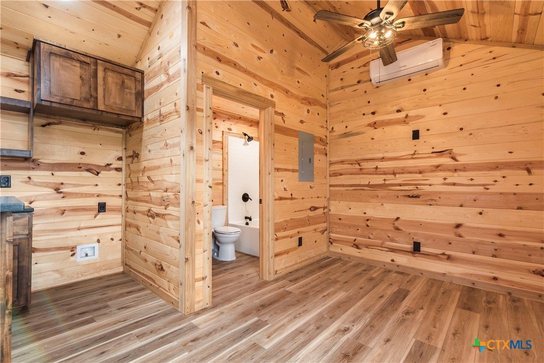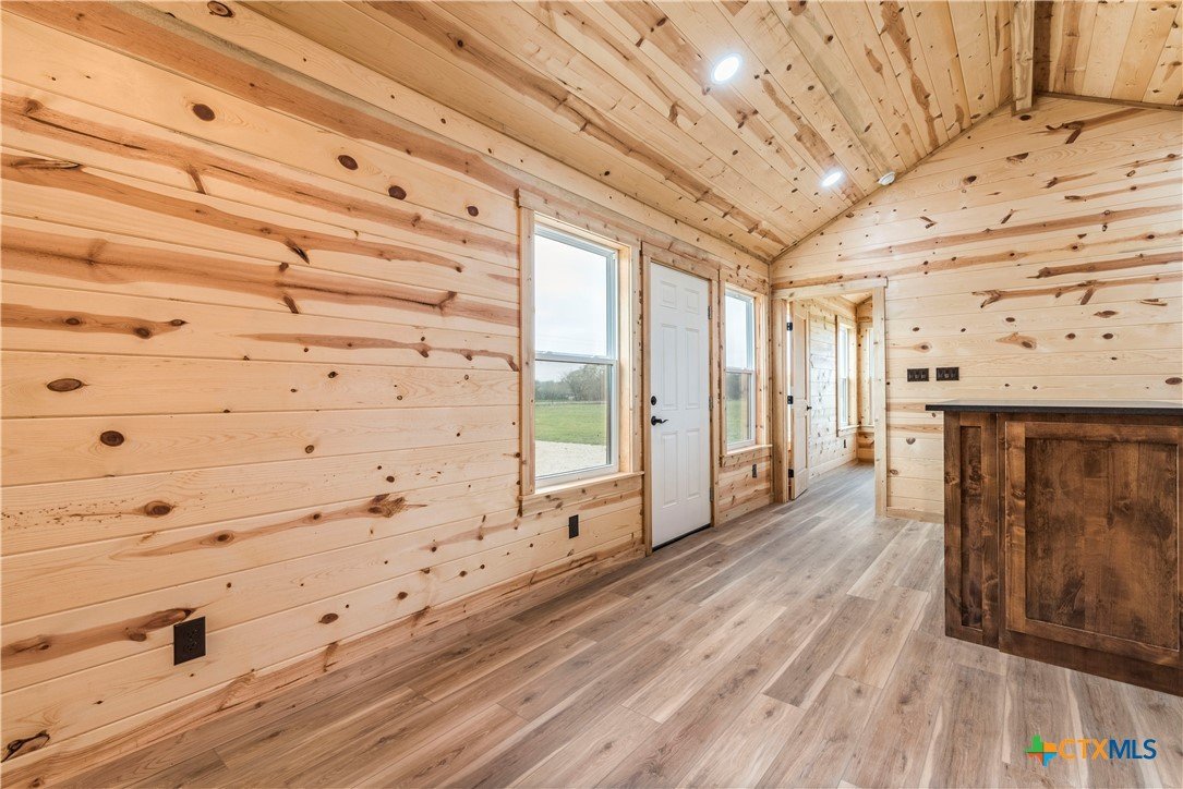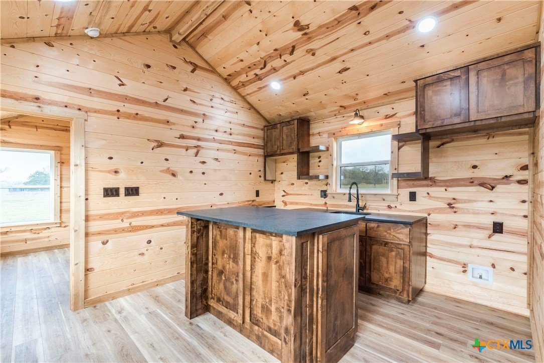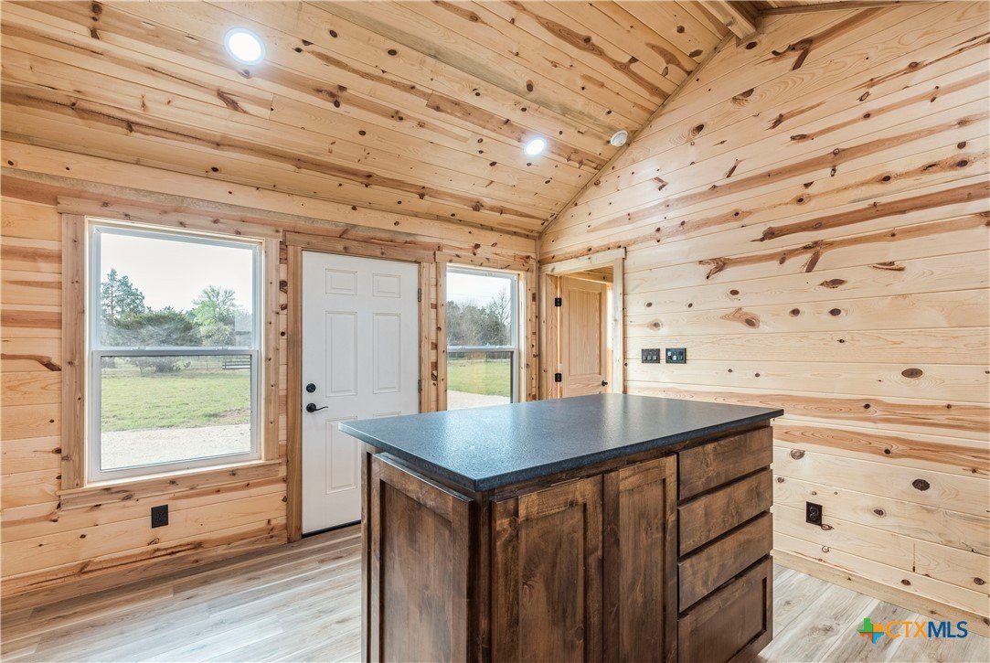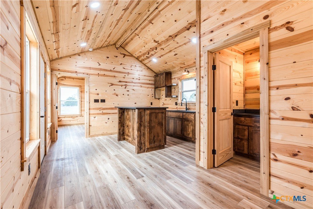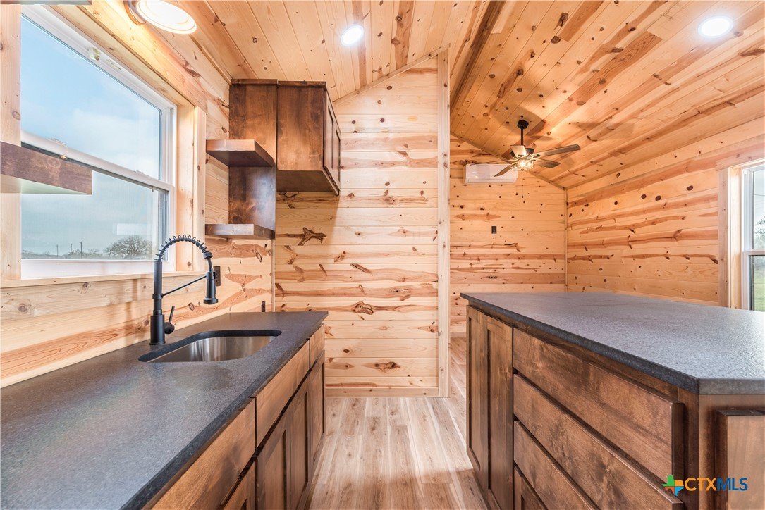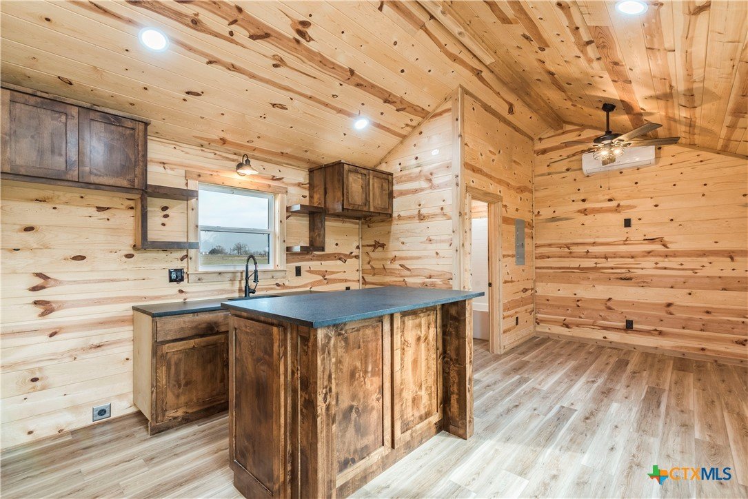 Nestled at 4502 Woodrow Center RD, Kingsbury, TX 78638 in the heart of Guadalupe County, this "tiny home" offers a unique opportunity to embrace the tranquility of rural living in great condition. The kitchen is a masterpiece, anchored by a nice sized kitchen island perfect for food preparation or casual dining, complemented by stylish shaker cabinets that provide ample storage, while the wood ceiling and wood wall infuse the space with natural warmth and character. Beyond the home itself, discover the simple pleasures of the outdoors with a spacious front deck, perfect for enjoying the peace of the surrounding area, all accessible through a gated driveway that ensures privacy and security in this rural setting. This Kingsbury property offers a blend of modern comfort and country charm, ready for you to create lasting memories.