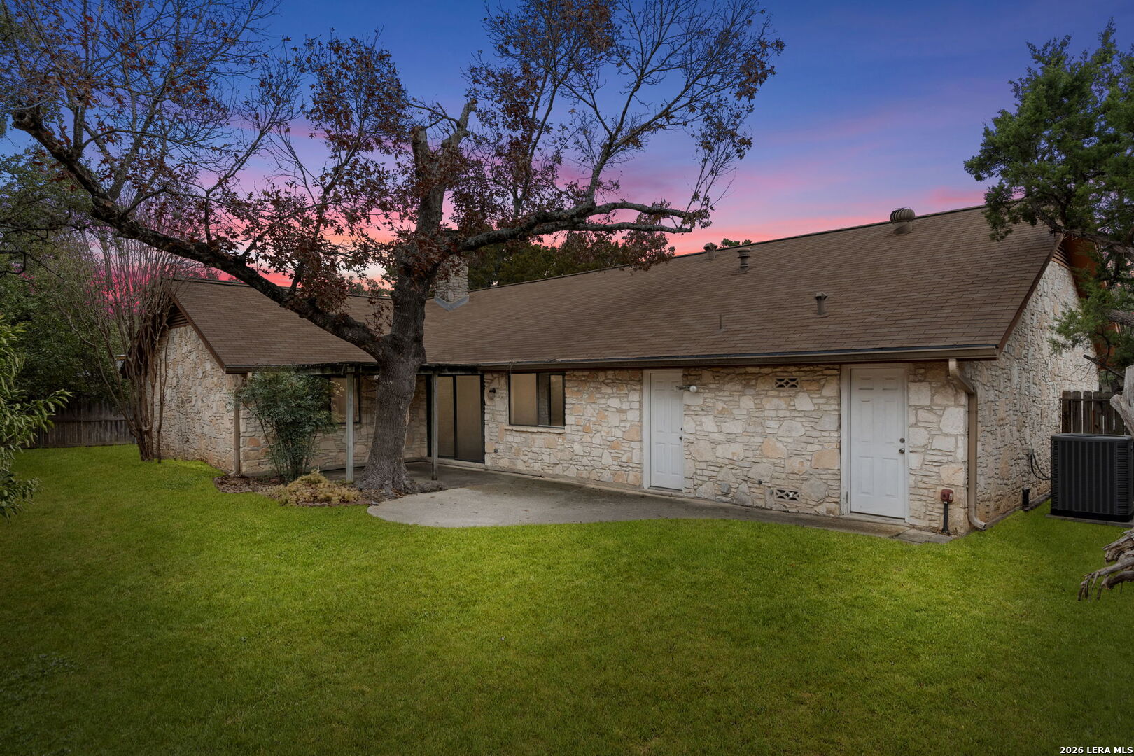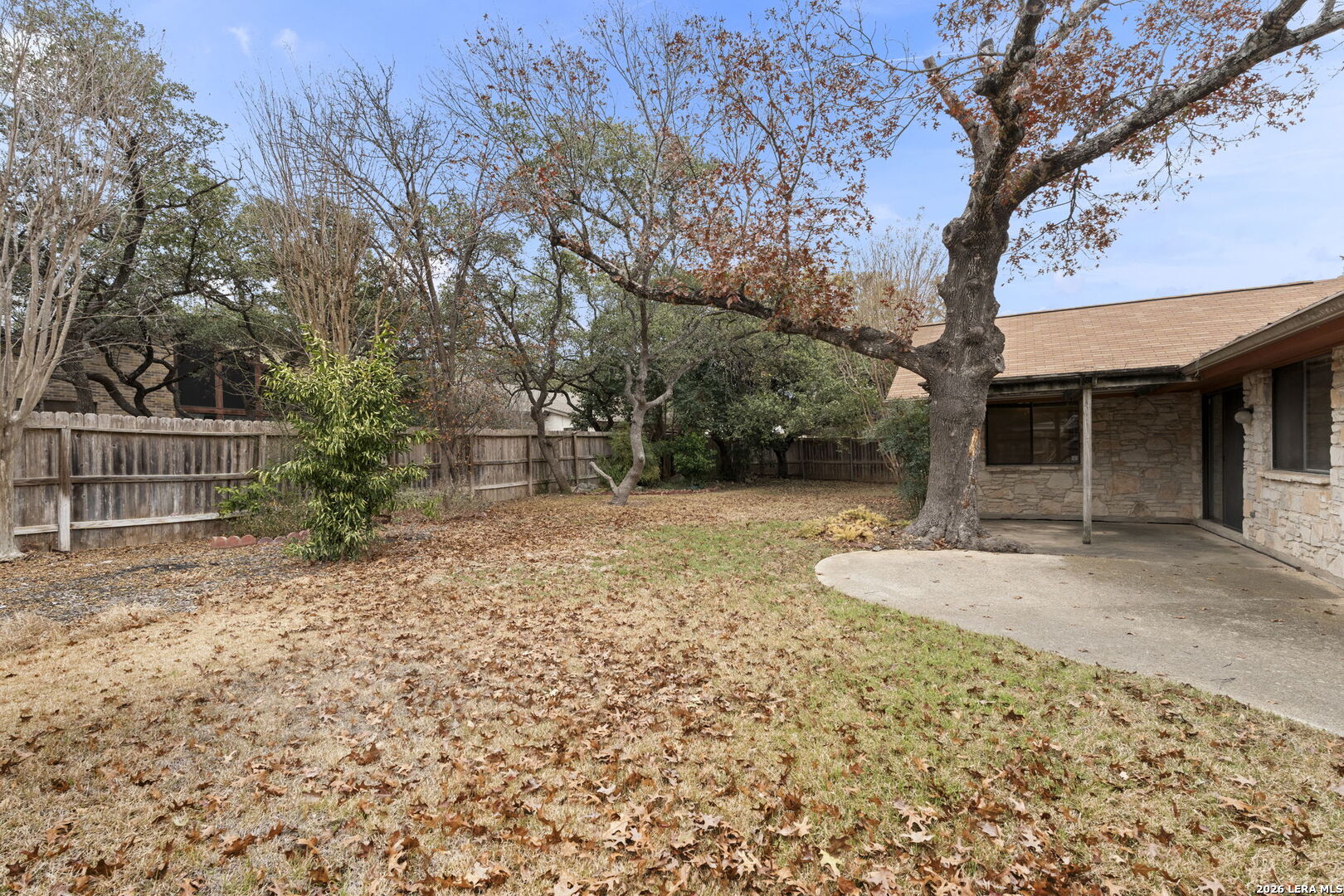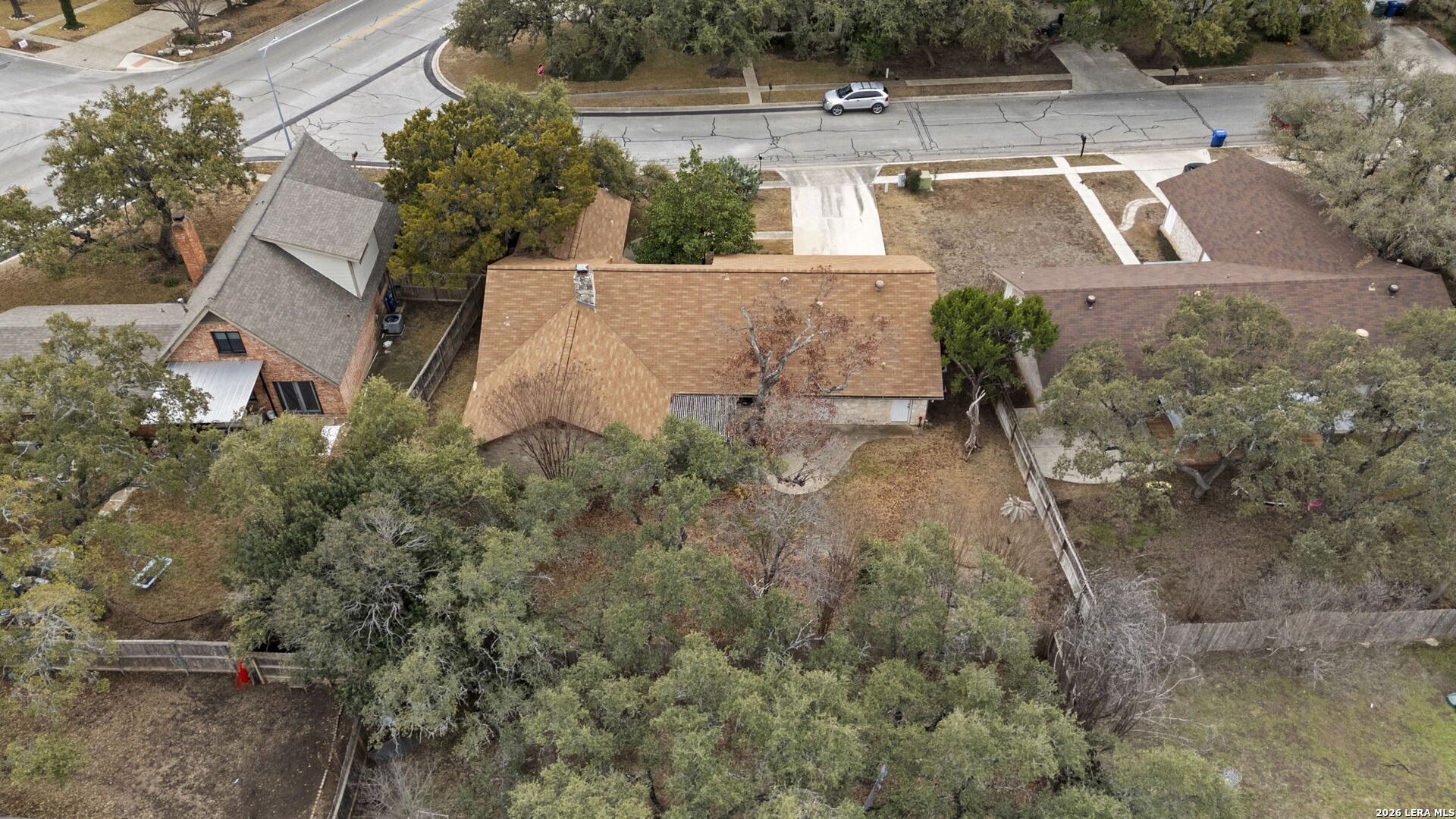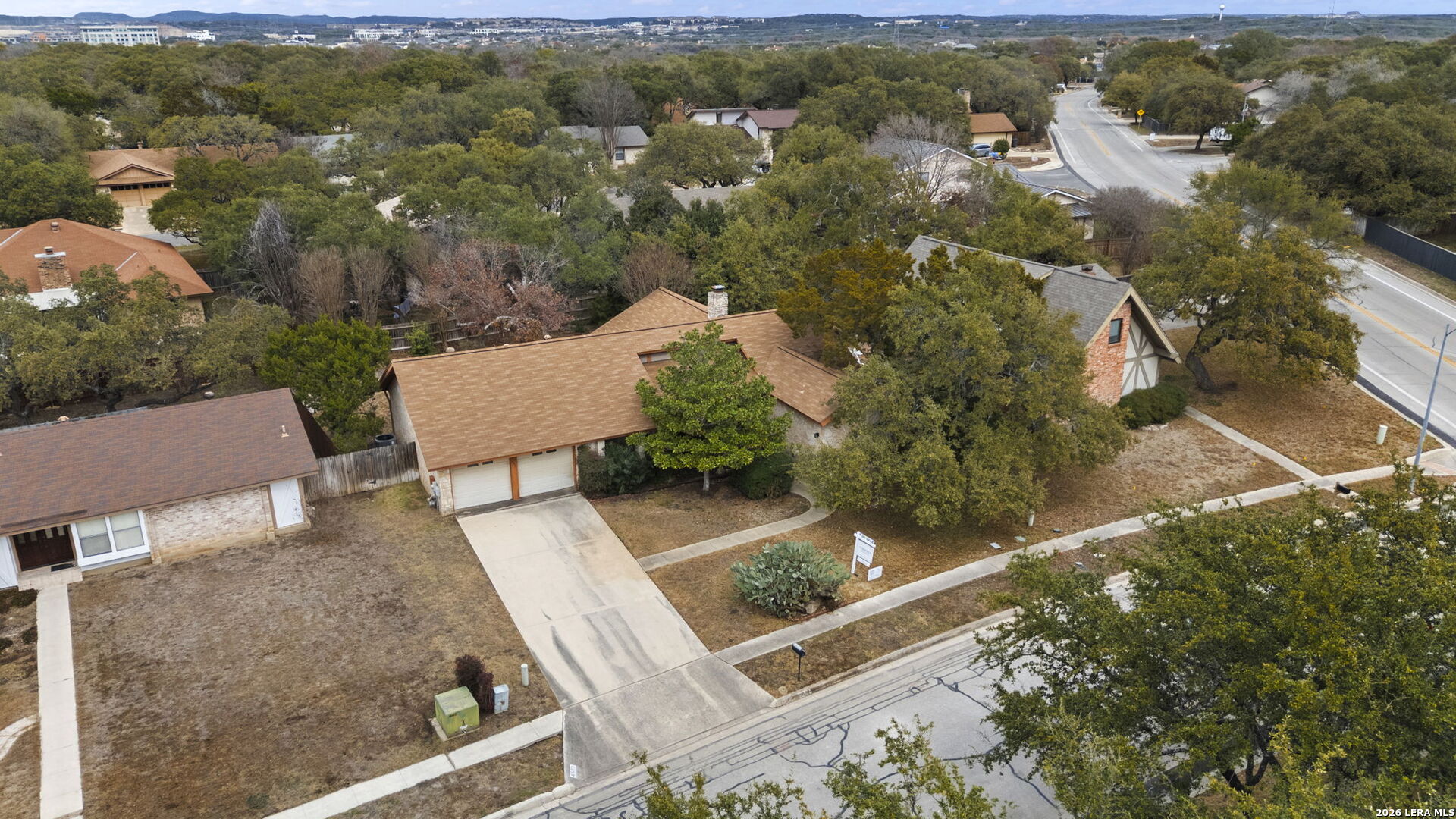 Tucked into the established Woods of Shavano neighborhood, this spacious one-story home offers 2,173 square feet of living space on a .22-acre lot, with a thoughtful and versatile floor plan designed for everyday living. With 3 bedrooms, 2 full bathrooms, and a dedicated office, the layout provides flexibility for work-from-home, guests, or creative space. Distinct architectural elements and generous room sizes give the home a warm, inviting feel and set the stage for a truly special transformation. The main living area features vaulted ceilings, exposed beams, and a central stone fireplace, creating strong architectural character and a sense of scale that is rarely found. Natural light fills the home, and the flow between living, dining, and kitchen spaces offers excellent functionality and long-term livability. The home reflects its original era and offers a fantastic canvas for thoughtful updates and personalization. With a solid layout, great bones, and architectural features already in place, this is an outstanding opportunity for a buyer to reimagine the space and create a spectacular home tailored to their vision. The property is being sold as-is, making it ideal for those looking to add value in a well-established neighborhood. Major systems provide additional peace of mind, with HVAC approximately 6 years old, roof approximately 10 years old, and the water heater was replaced in 2016. Conveniently located just minutes from Loop 1604 and I-10, with easy access to UTSA, La Cantera, The Rim, shopping, dining, and major employers, the home combines quiet residential living with everyday convenience. Mature trees and an established setting complete the offering. Buyer to independently verify room sizes, schools, taxes, and all other information. Some photos are virtually enhanced to show what a future update could look like.
