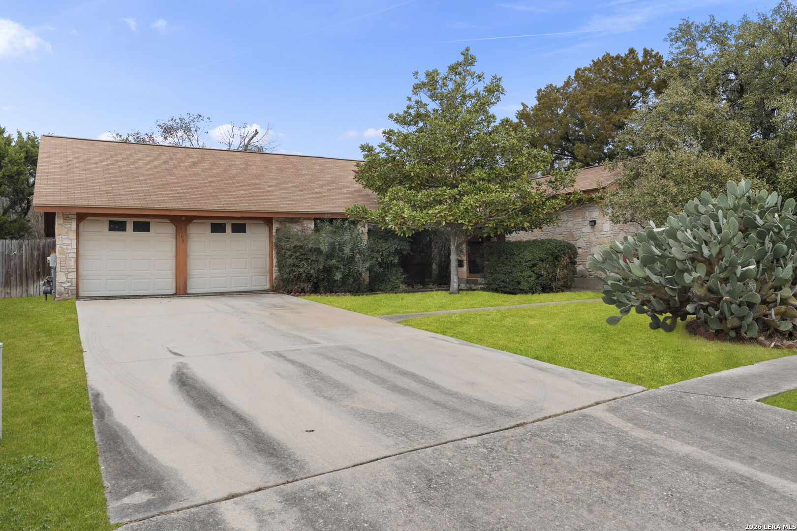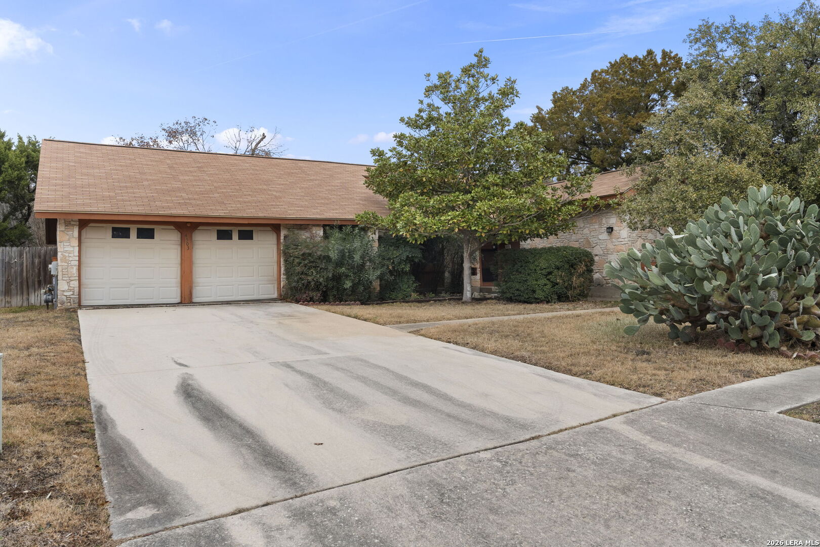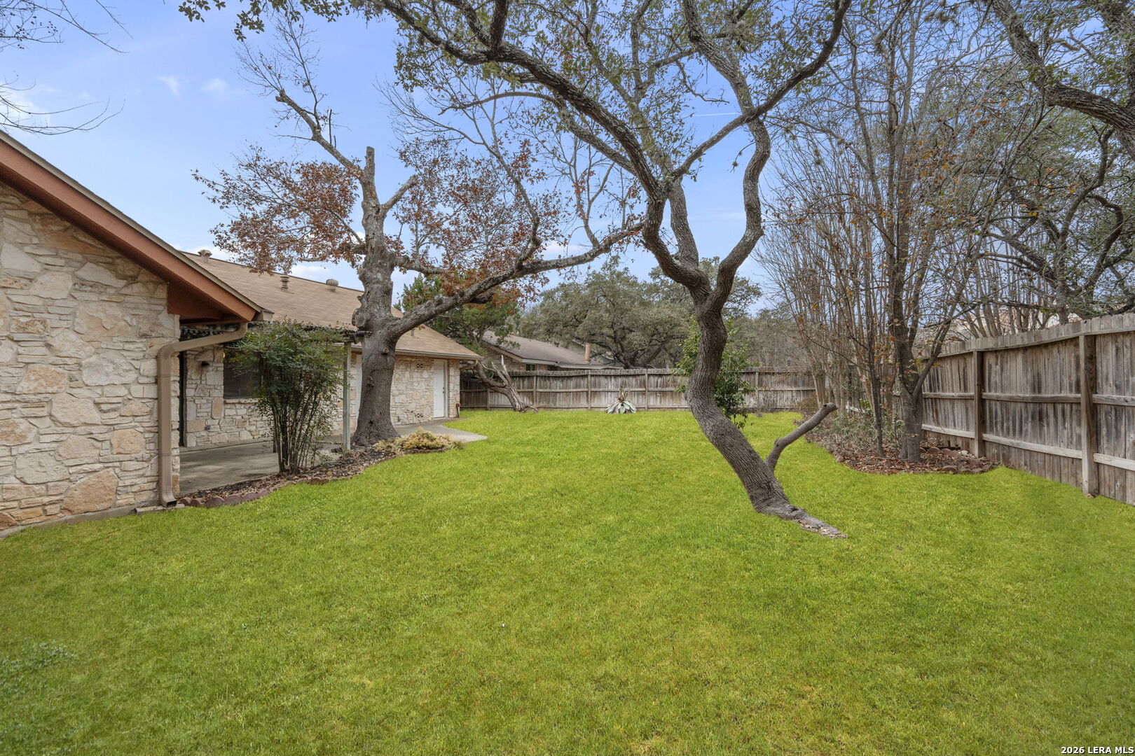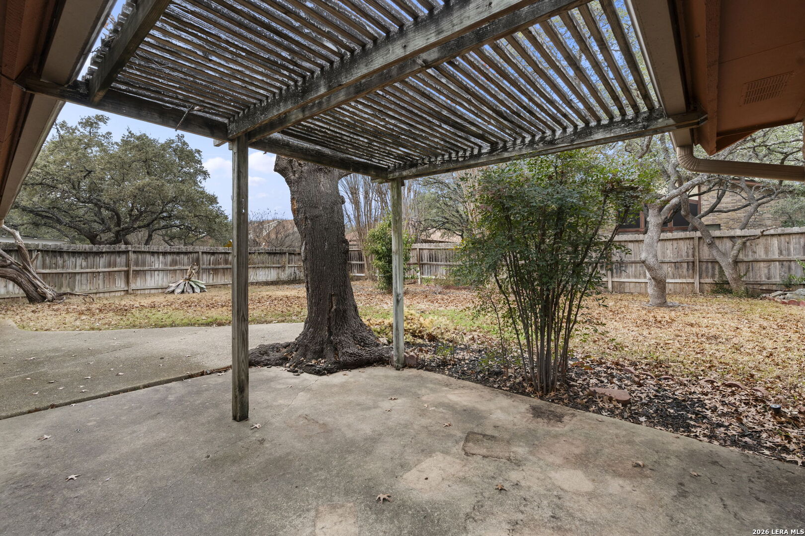 Tucked into the established Woods of Shavano neighborhood, this spacious one-story home offers 2,173 square feet of living space on a .22-acre lot, with a thoughtful and versatile floor plan designed for everyday living. With 3 bedrooms, 2 full bathrooms, and a dedicated office, the layout provides flexibility for work-from-home, guests, or creative space. Distinct architectural elements and generous room sizes give the home a warm, inviting feel and set the stage for a truly special transformation. The main living area features vaulted ceilings, exposed beams, and a central stone fireplace, creating strong architectural character and a sense of scale that is rarely found. Natural light fills the home, and the flow between living, dining, and kitchen spaces offers excellent functionality and long-term livability. The home reflects its original era and offers a fantastic canvas for thoughtful updates and personalization. With a solid layout, great bones, and architectural features already in place, this is an outstanding opportunity for a buyer to reimagine the space and create a spectacular home tailored to their vision. The property is being sold as-is, making it ideal for those looking to add value in a well-established neighborhood. Major systems provide additional peace of mind, with HVAC approximately 6 years old, roof approximately 10 years old, and the water heater was replaced in 2016. Conveniently located just minutes from Loop 1604 and I-10, with easy access to UTSA, La Cantera, The Rim, shopping, dining, and major employers, the home combines quiet residential living with everyday convenience. Mature trees and an established setting complete the offering. Buyer to independently verify room sizes, schools, taxes, and all other information. Some photos are virtually enhanced to show what a future update could look like.