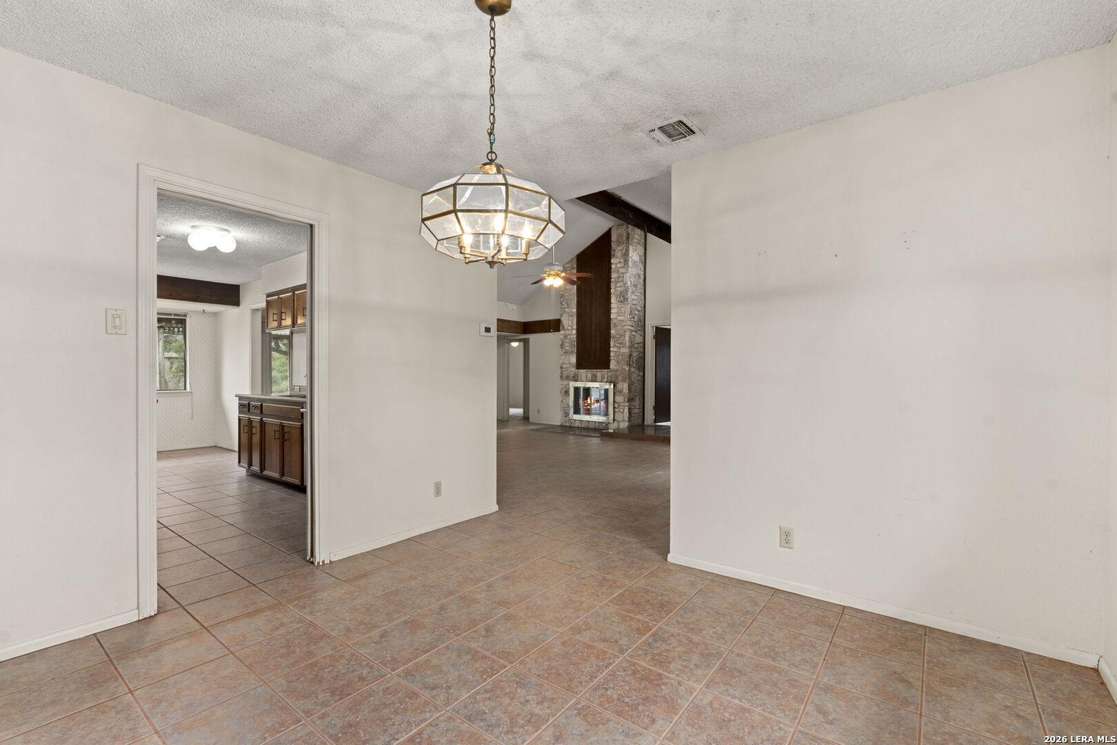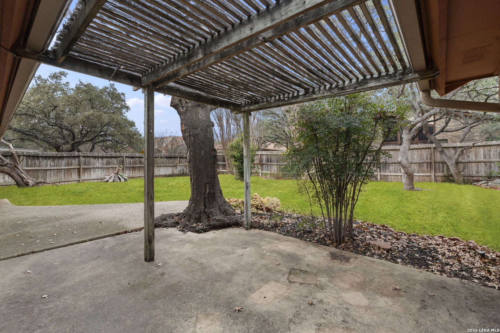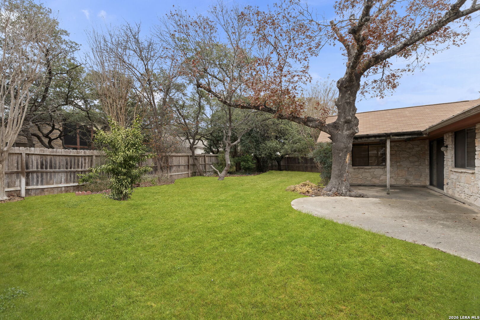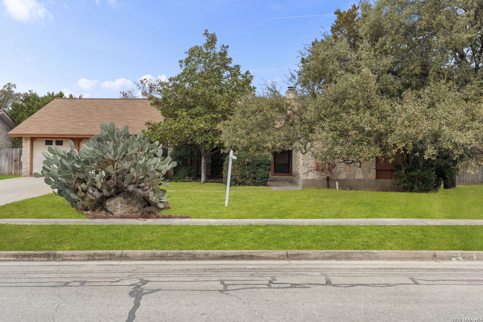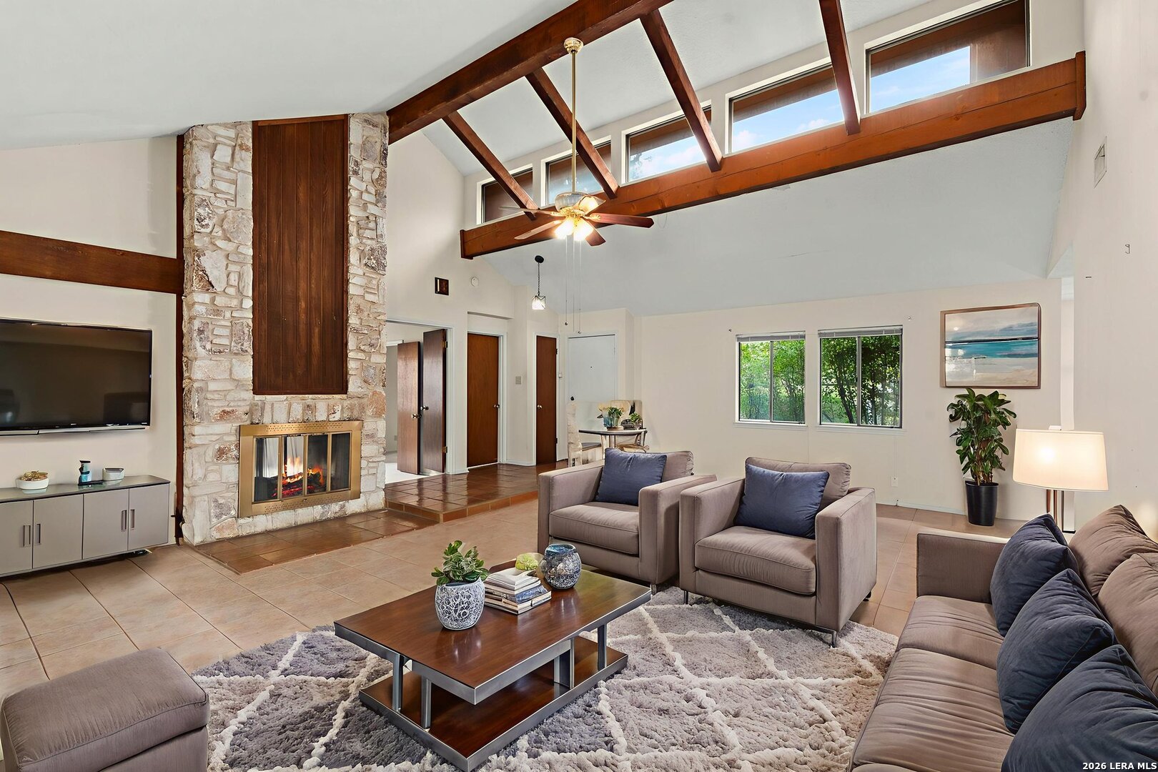 Tucked into the established Woods of Shavano neighborhood, this spacious one-story home offers 2,173 square feet of living space on a .22-acre lot, with a thoughtful and versatile floor plan designed for everyday living. With 3 bedrooms, 2 full bathrooms, and a dedicated office, the layout provides flexibility for work-from-home, guests, or creative space. Distinct architectural elements and generous room sizes give the home a warm, inviting feel and set the stage for a truly special transformation. The main living area features vaulted ceilings, exposed beams, and a central stone fireplace, creating strong architectural character and a sense of scale that is rarely found. Natural light fills the home, and the flow between living, dining, and kitchen spaces offers excellent functionality and long-term livability. The home reflects its original era and offers a fantastic canvas for thoughtful updates and personalization. With a solid layout, great bones, and architectural features already in place, this is an outstanding opportunity for a buyer to reimagine the space and create a spectacular home tailored to their vision. The property is being sold as-is, making it ideal for those looking to add value in a well-established neighborhood. Major systems provide additional peace of mind, with HVAC approximately 6 years old, roof approximately 10 years old, and the water heater was replaced in 2016. Conveniently located just minutes from Loop 1604 and I-10, with easy access to UTSA, La Cantera, The Rim, shopping, dining, and major employers, the home combines quiet residential living with everyday convenience. Mature trees and an established setting complete the offering. Buyer to independently verify room sizes, schools, taxes, and all other information. Some photos are virtually enhanced to show what a future update could look like.