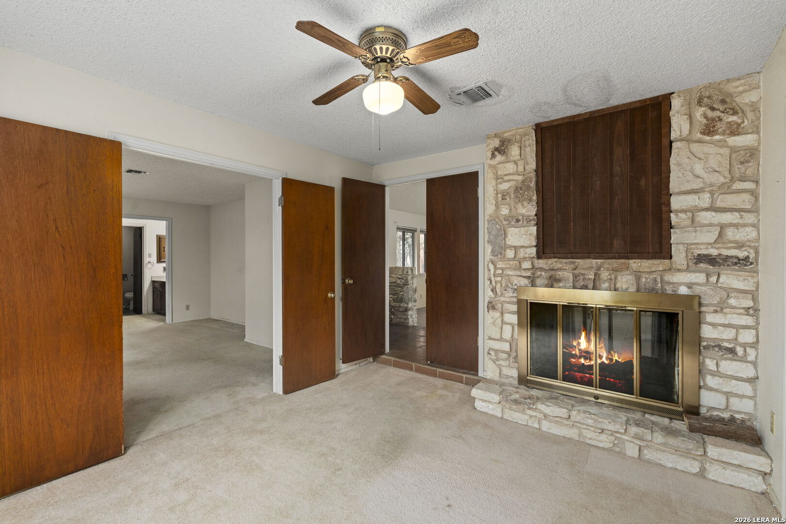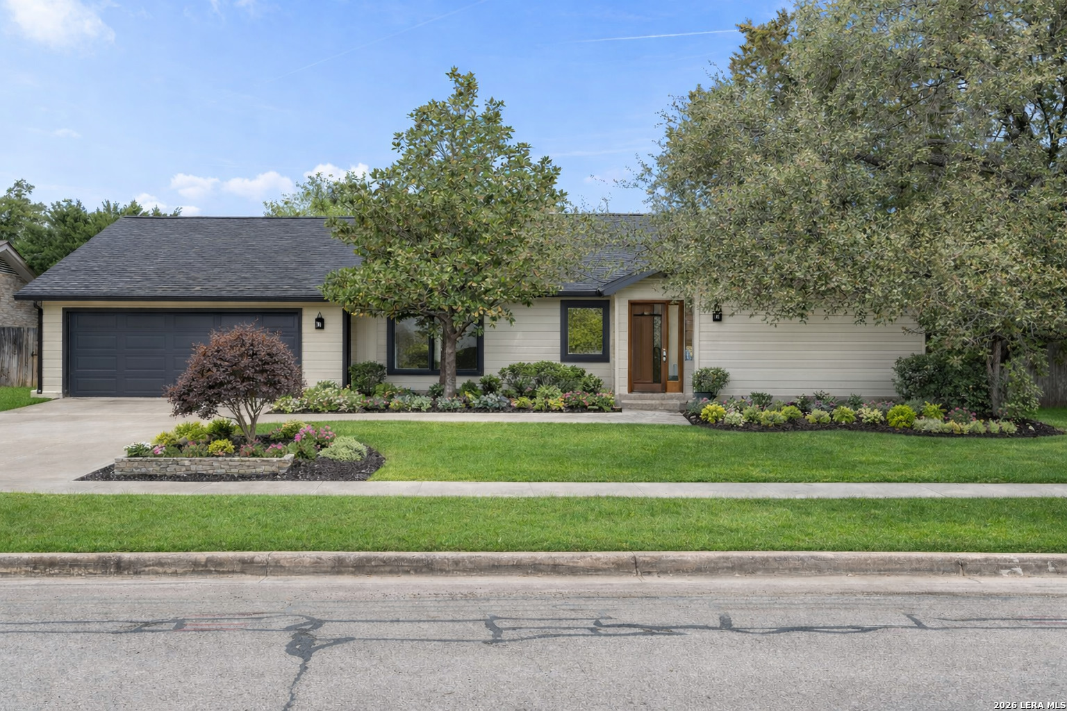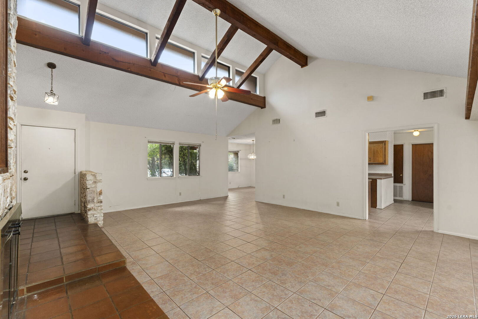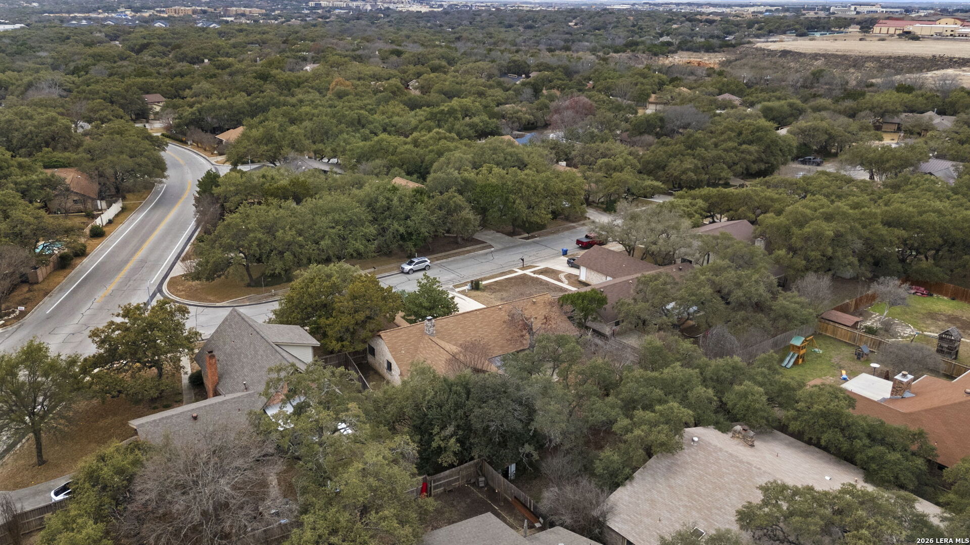 Tucked into the established Woods of Shavano neighborhood, this spacious one-story home offers 2,173 square feet of living space on a .22-acre lot, with a thoughtful and versatile floor plan designed for everyday living. With 3 bedrooms, 2 full bathrooms, and a dedicated office, the layout provides flexibility for work-from-home, guests, or creative space. Distinct architectural elements and generous room sizes give the home a warm, inviting feel and set the stage for a truly special transformation. The main living area features vaulted ceilings, exposed beams, and a central stone fireplace, creating strong architectural character and a sense of scale that is rarely found. Natural light fills the home, and the flow between living, dining, and kitchen spaces offers excellent functionality and long-term livability. The home reflects its original era and offers a fantastic canvas for thoughtful updates and personalization. With a solid layout, great bones, and architectural features already in place, this is an outstanding opportunity for a buyer to reimagine the space and create a spectacular home tailored to their vision. The property is being sold as-is, making it ideal for those looking to add value in a well-established neighborhood. Major systems provide additional peace of mind, with HVAC approximately 6 years old, roof approximately 10 years old, and the water heater was replaced in 2016. Conveniently located just minutes from Loop 1604 and I-10, with easy access to UTSA, La Cantera, The Rim, shopping, dining, and major employers, the home combines quiet residential living with everyday convenience. Mature trees and an established setting complete the offering. Buyer to independently verify room sizes, schools, taxes, and all other information. Some photos are virtually enhanced to show what a future update could look like.