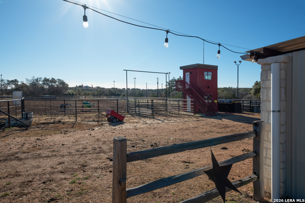 Here's your opportunity to own 20 acres of Texas Hill Country! This property is rodeo ready and well equipped with arena, announcer's box, stalls, corral, bathrooms, shooting range. Completely fenced with automatic gates and cattle guards so bring your horses and cattle! But wait! There's also a beautiful home just up the hill complete with 3 bedrooms, 2 1/2 baths, open floor plan with tall ceilings, chef's kitchen with gorgeous counter tops, custom cabinets and almost new stainless appliances. Sit a spell on the covered deck enjoying the view of the professionally landscaped yard. Park your RV in a covered spot with full hookups. This property comes with a private well, septic system, Generac and Agricultural Exemption in place for low property taxes! * Adjacent property is available for purchase MLS#1941539