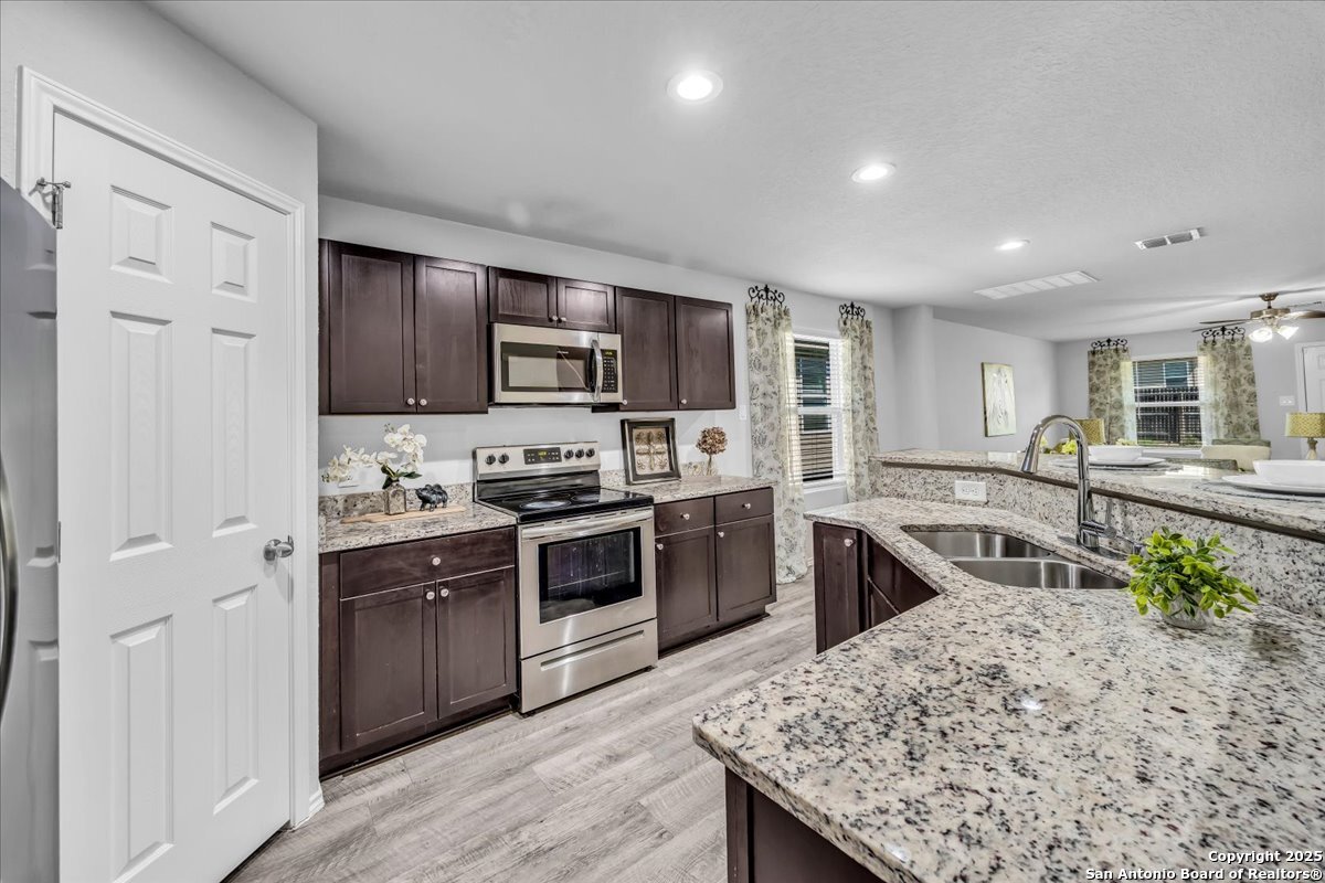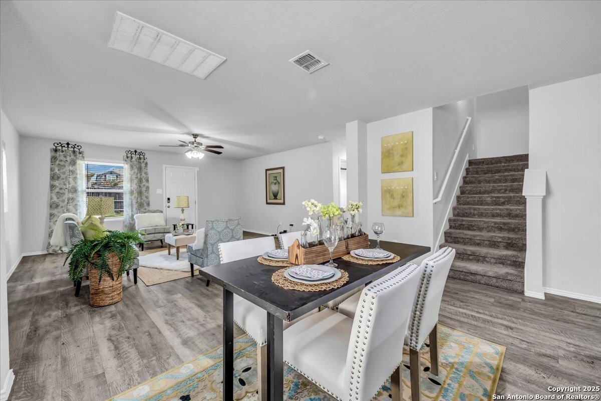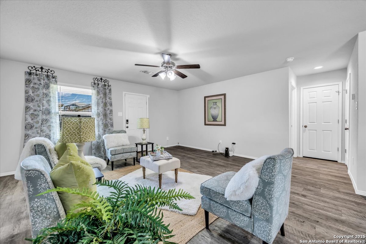 **2.75 VA Assumable Loan, please request information** Welcome to this beautiful 4 bedroom and 2.5 bathroom home that offers a thoughtfully designed layout and plenty of space for everyone! Vivint security cameras included! You'll love the inviting curb appeal of the home and inside you'll enjoy the open concept kitchen and living area that makes daily life and entertaining a breeze. The kitchen boasts granite countertops, ample storage and a functional design. A versatile front room offers endless possibilities, as a formal dining area, playroom, additional living space or home office. Upstairs you'll find a flex space that anchors the spacious secondary bedrooms. Outside, you'll enjoy a spacious backyard with a nice covered patio, perfect for outdoor entertainment, morning coffee or a relaxing evening. Located just 15 minutes from Randolph Air Force Base and 25 minutes to Fort Sam, this home is perfect for those seeking convenience and accessibility. Plus you're close to major highways, making daily commutes and errands a breeze. Don't miss your chance to see this incredible home in person- schedule your showing today!