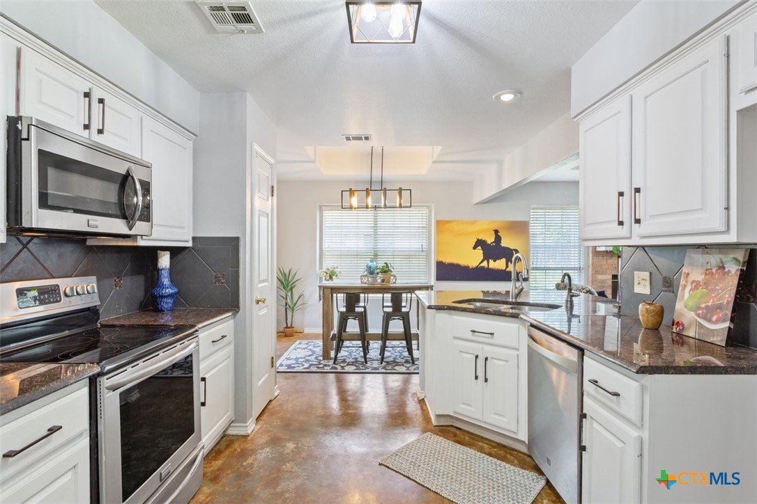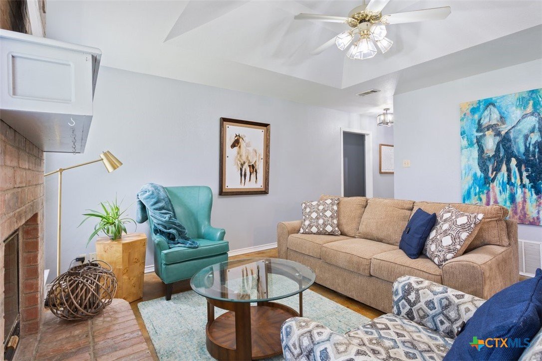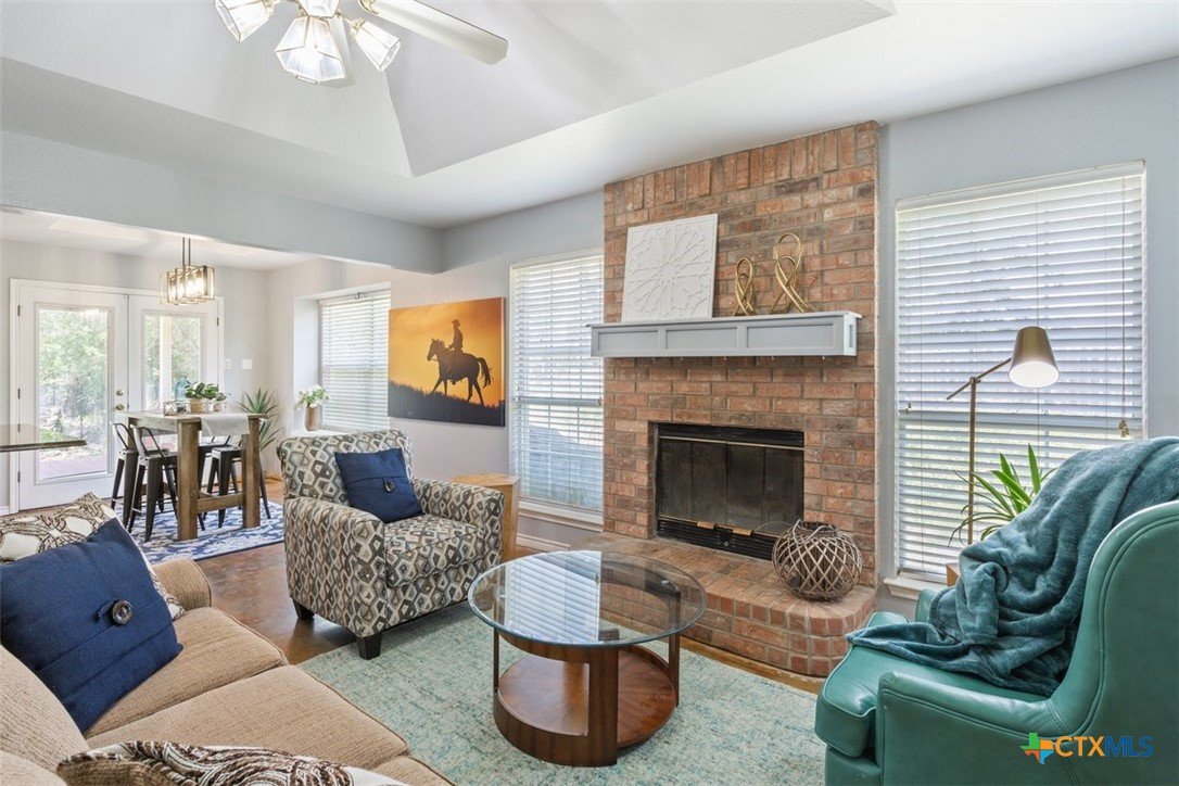 Super cute home in desirable Belton ISD. 3 bedrooms plus office and 2 car garage. Open floor plan with high ceilings and beautiful brick wood burning fireplace for cozy evenings at home. Nice white kitchen with dining area. Primary bedroom has shower and soaking tub with dual vanity and large walk-in closet. Home is 4 sides brick, has new shingles and new HVAC. Awesome covered deck with ceiling fan and beautiful fenced yard. 12 x 24 Storage building on large lot. Excellent neighborhood, take walks along the lake, neighborhood park. Great place to call home.