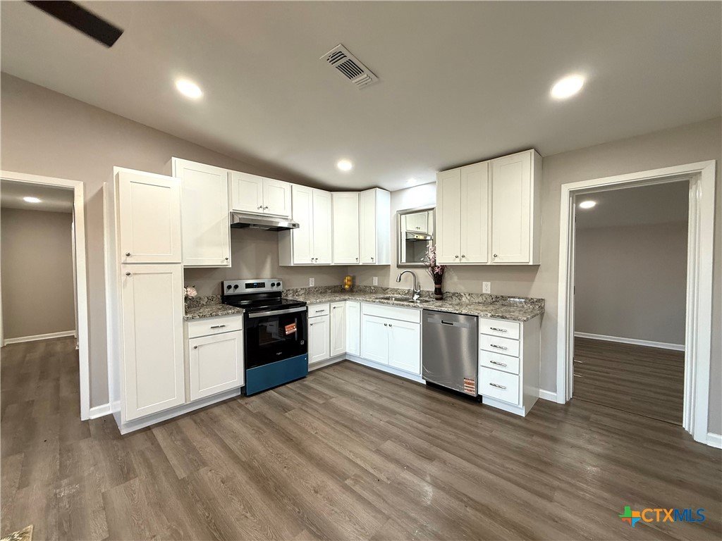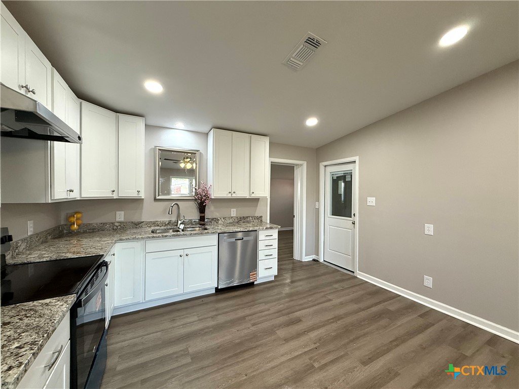 Adorable newly remodeled home! Step inside this cozy 3 bedroom 1.5 bath home and enjoy all the updates. New carpet and vinyl plank flooring throughout. Clean neutral paint colors inside and out. New electrical wiring, fixtures and switches. New HVAC with duct work. New 30 yr. roof. Granite counters in kitchen with new dishwasher and electric range. Solid countertops in bathrooms, with updated tile surround in shower tub combo, and new plumbing fixtures. Nice storage garage in backyard. Move in ready and perfect for a first time home buyer. Must come see!